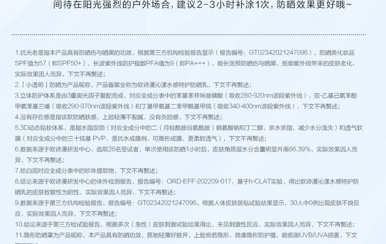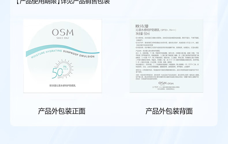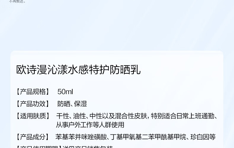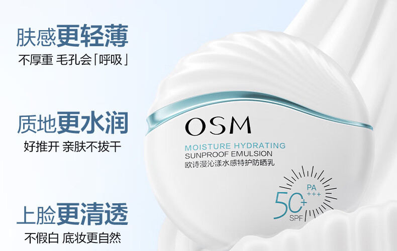 欧诗漫(OSM)防晒霜沁漾水感特护防晒乳50ml士护肤SPF50+户外持久耐晒生日礼物