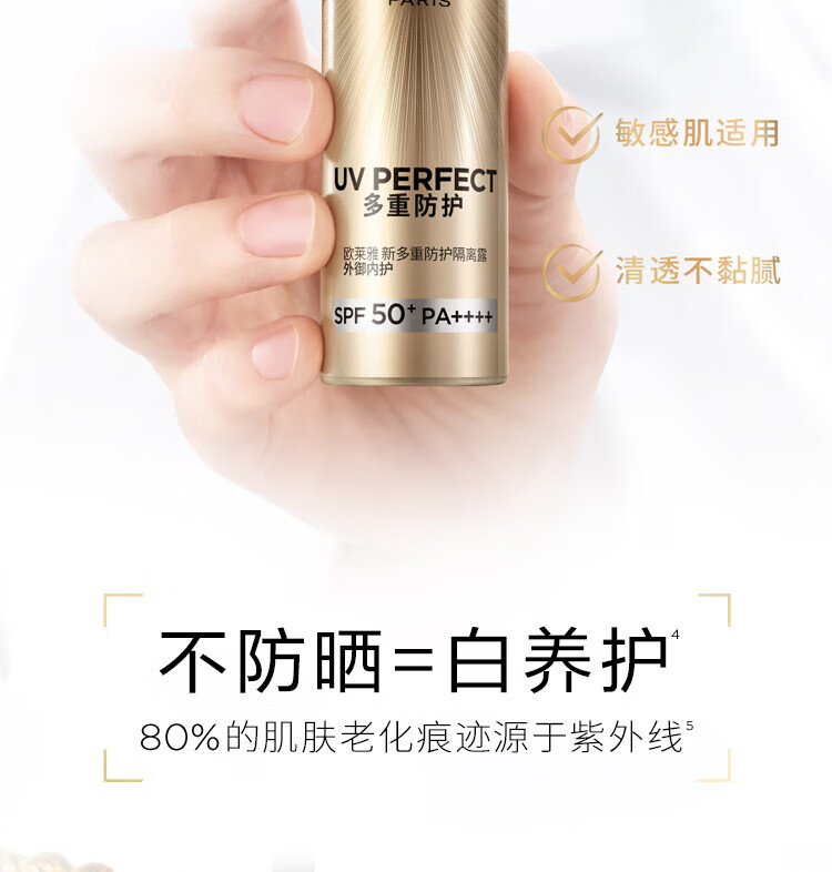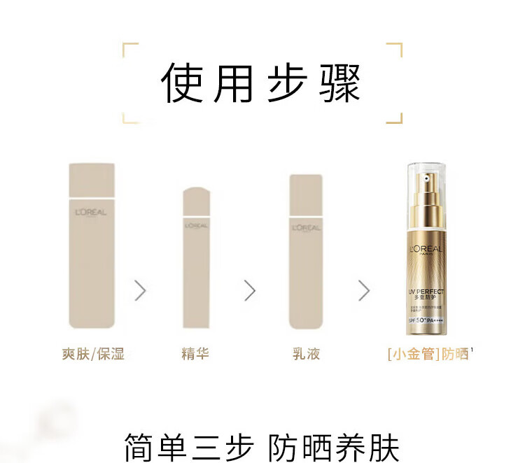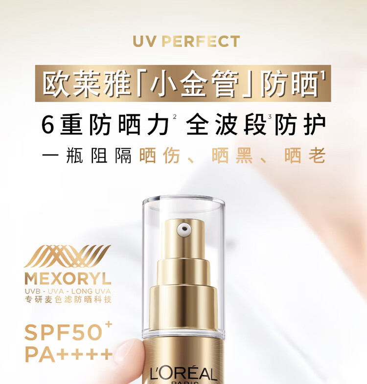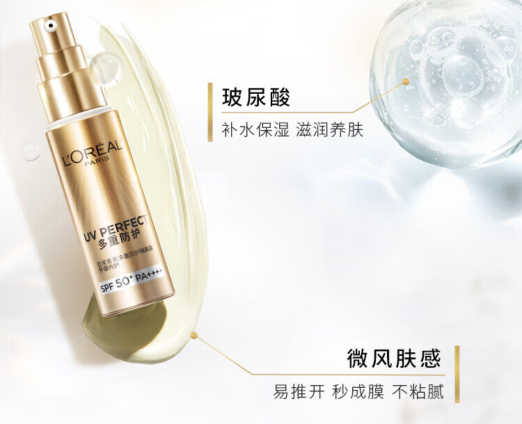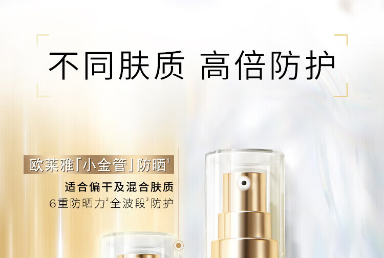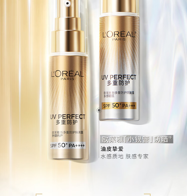 欧莱雅(LOREAL)新多重防护隔离露30ml+15ml*2 小金管防晒霜清爽面部高倍隔离户外