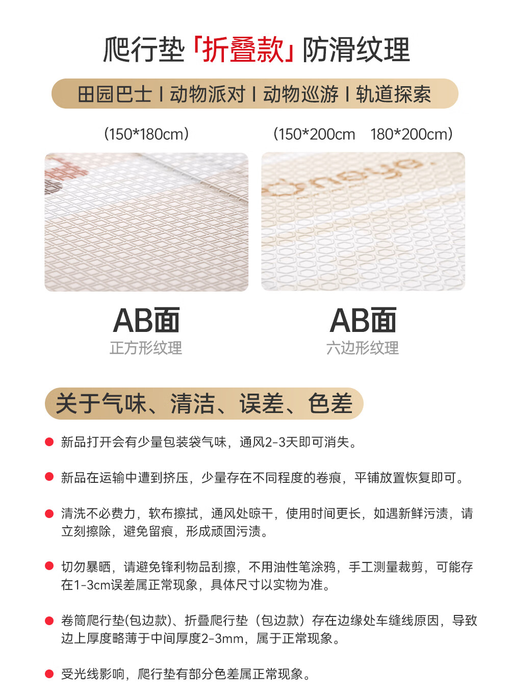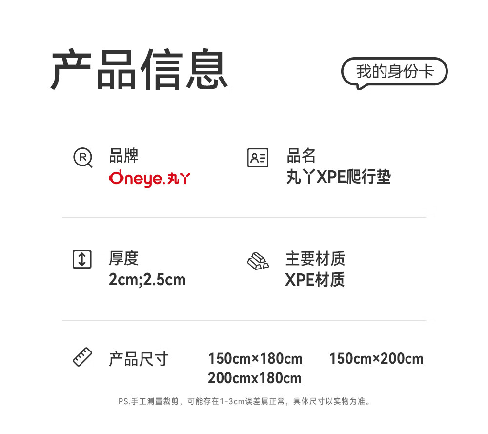 丸丫宝宝爬爬垫婴儿爬行垫加厚XPE折叠垫地垫1.5*1.8米*2CM派对