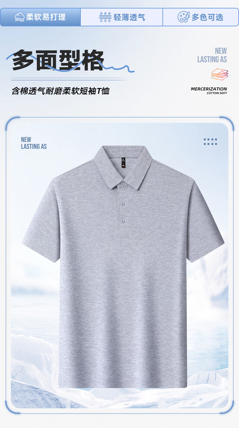 SHANSHAN杉杉【含棉无痕翻领】短袖t恤男纯色POLO衫休闲打底夏季新款 米杏色 M /170