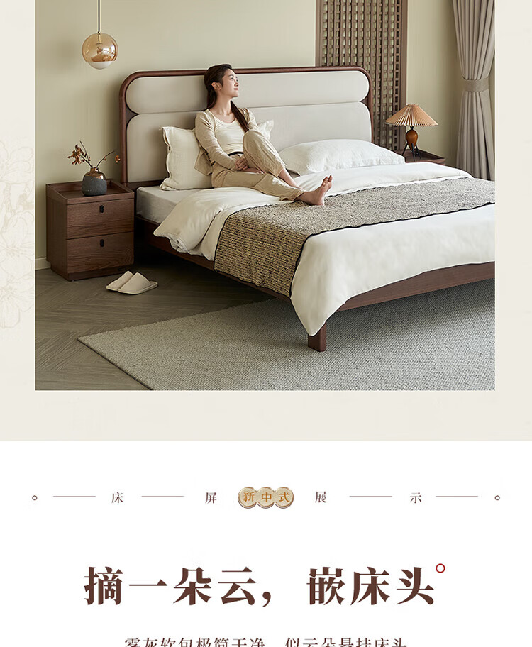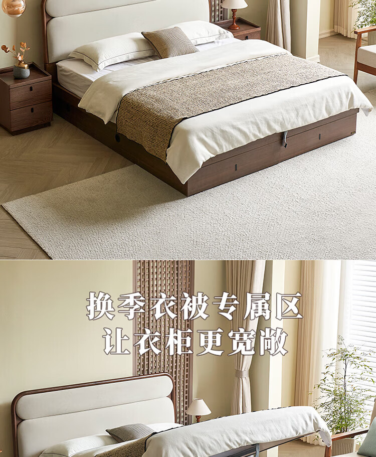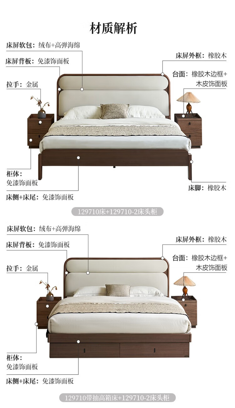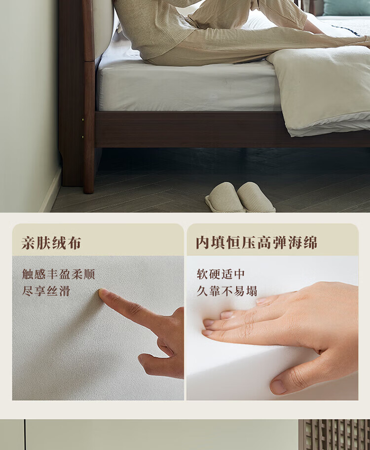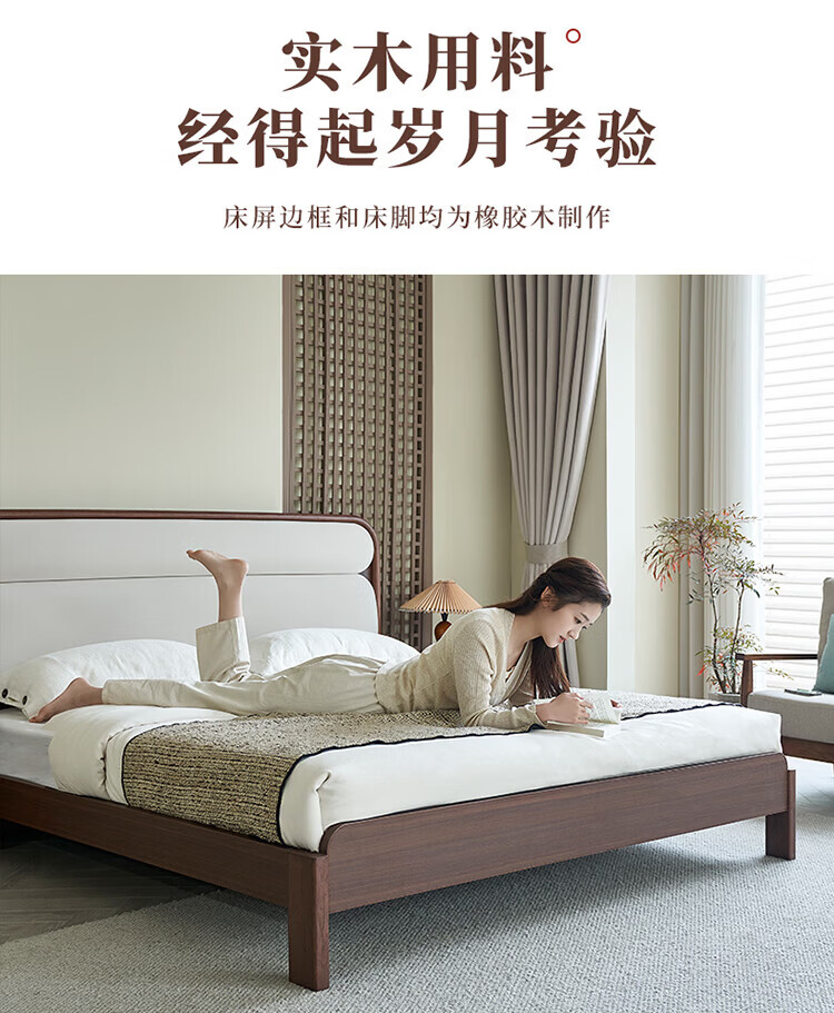 全友(QUANU)【迷瞪清仓货盘】多功能布艺床家用软包双人床主卧室实木高脚床 1.5米床+265床垫