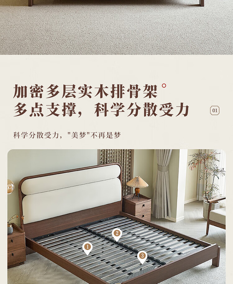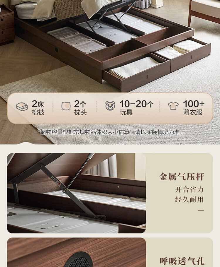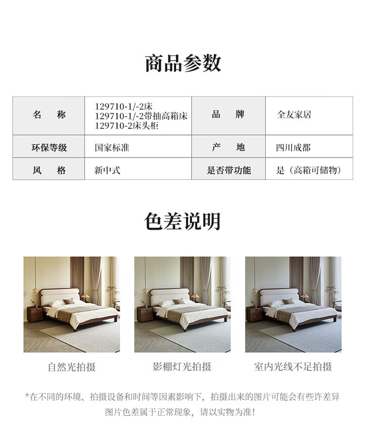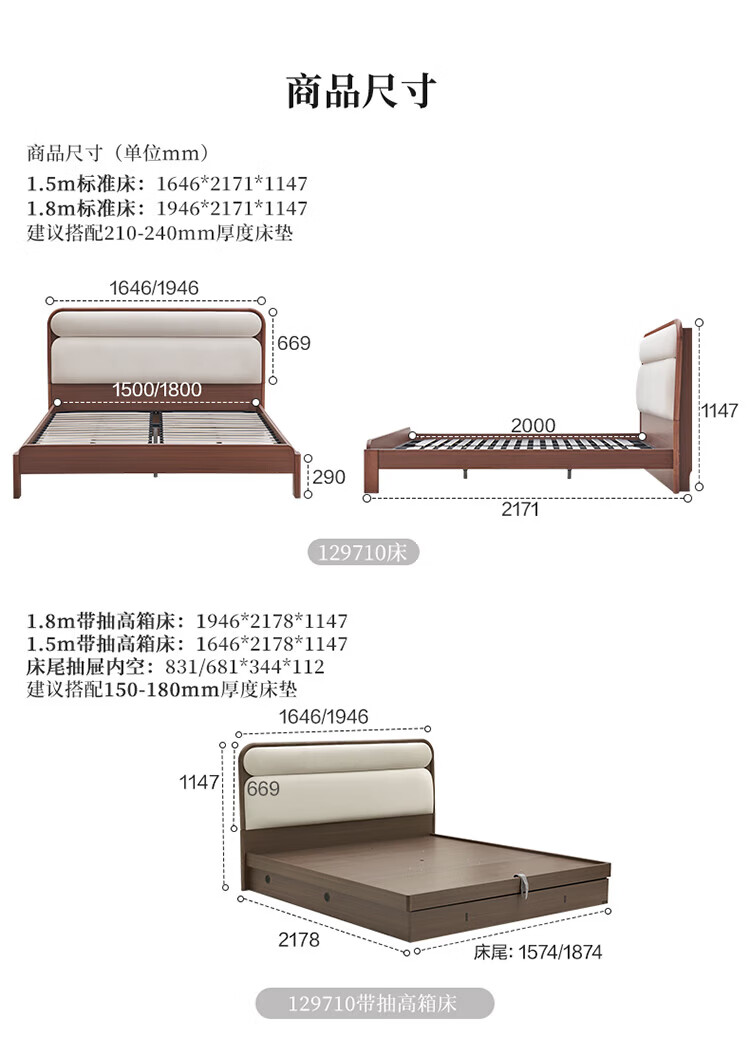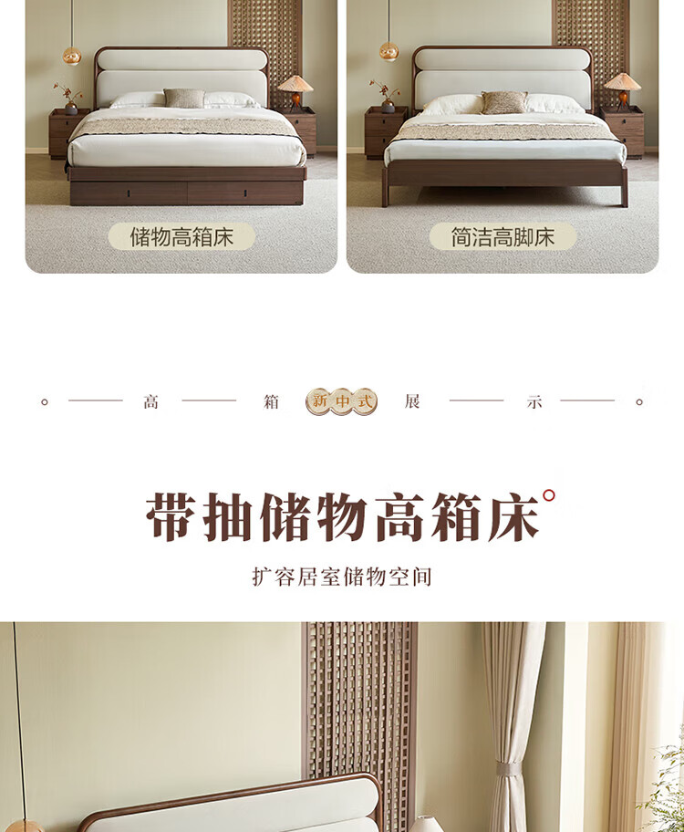 全友(QUANU)【迷瞪清仓货盘】多功能布艺床家用软包双人床主卧室实木高脚床 1.5米床+265床垫