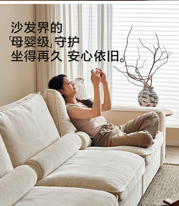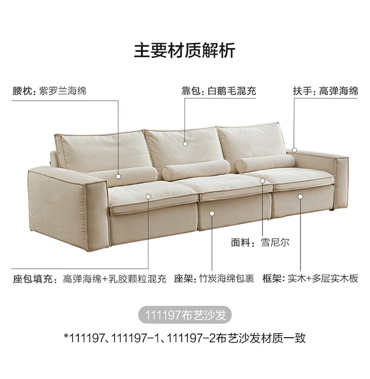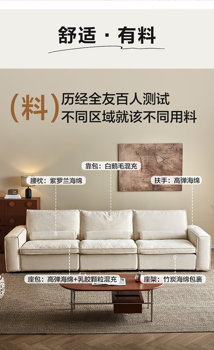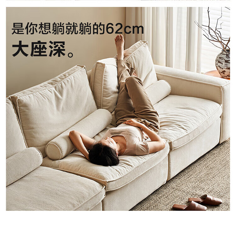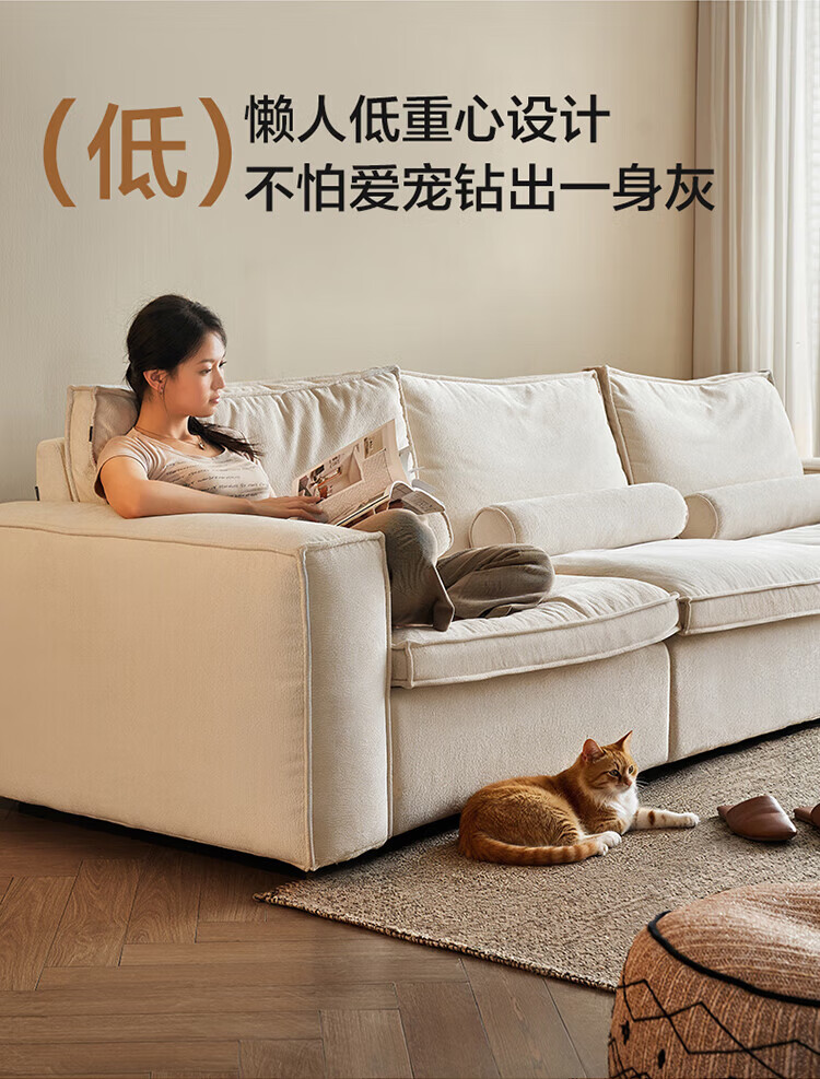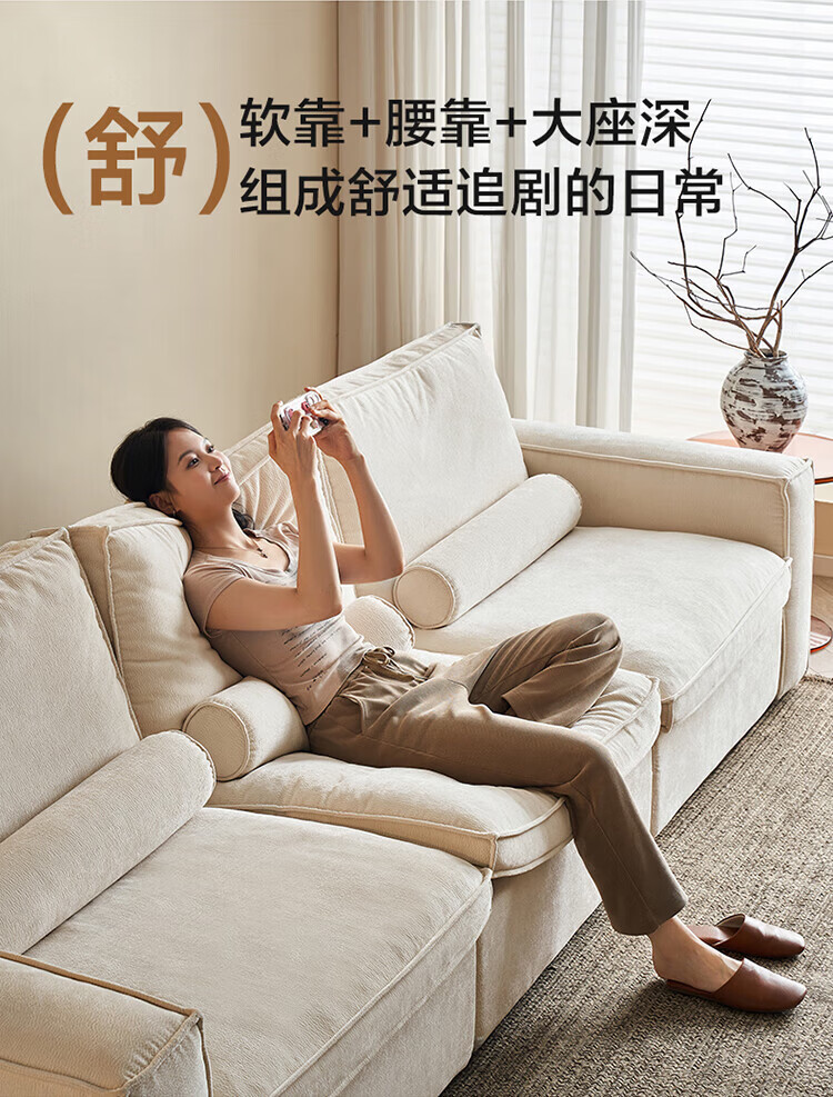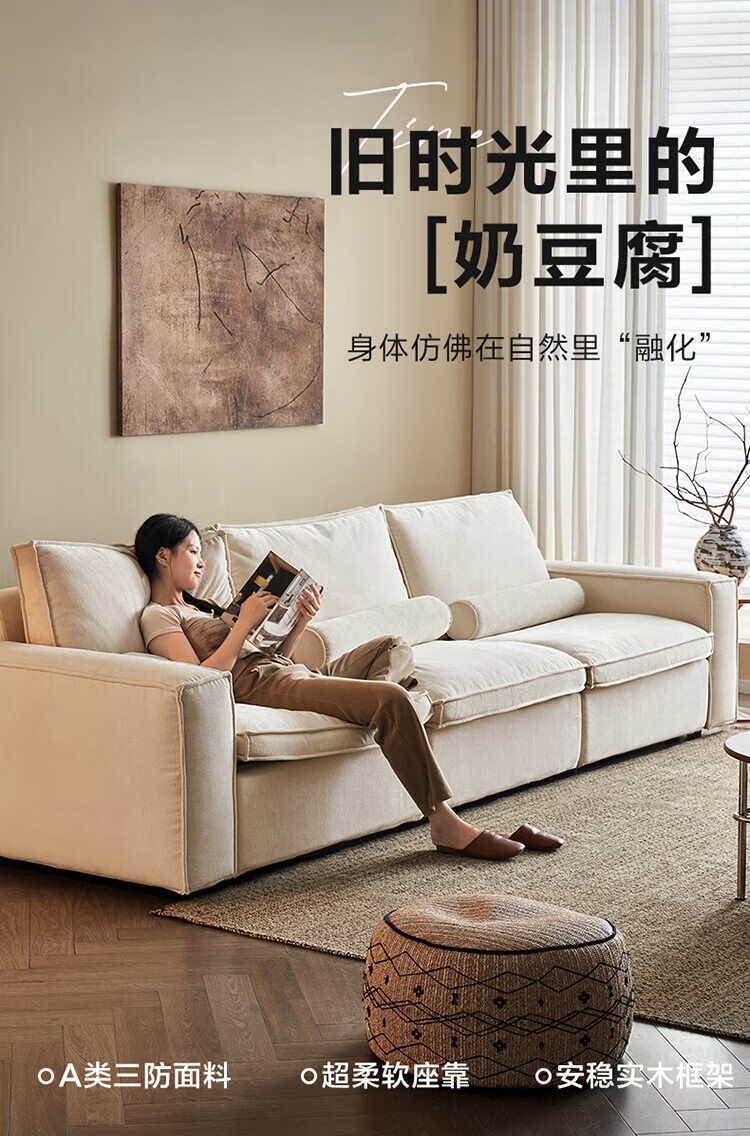 全友(QUANU)【迷瞪清仓货盘】复古风布艺沙发可拆洗三人位直排沙发小户型 A类面料|奶白|三防雪尼尔|3.24m沙发 乳胶+白鹅毛+62CM坐深