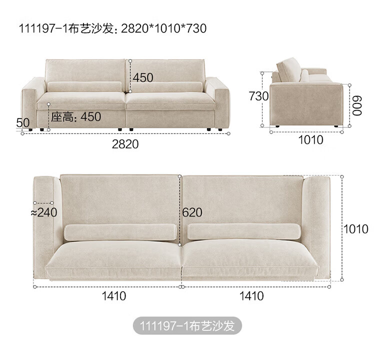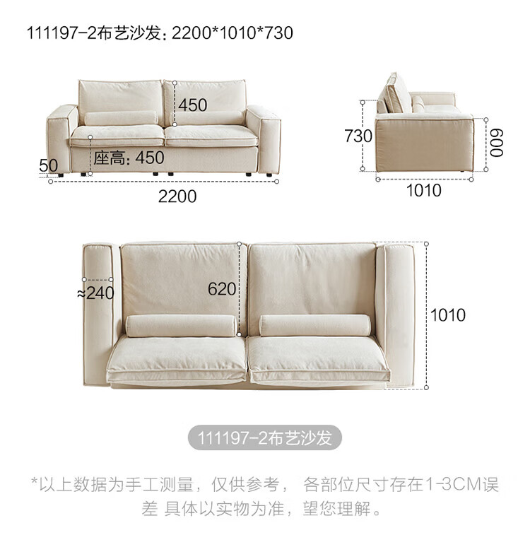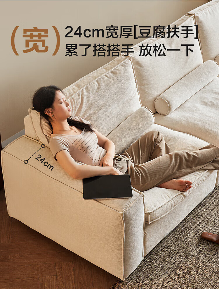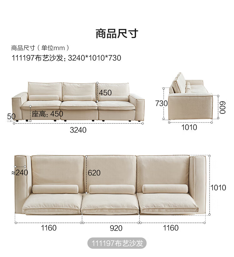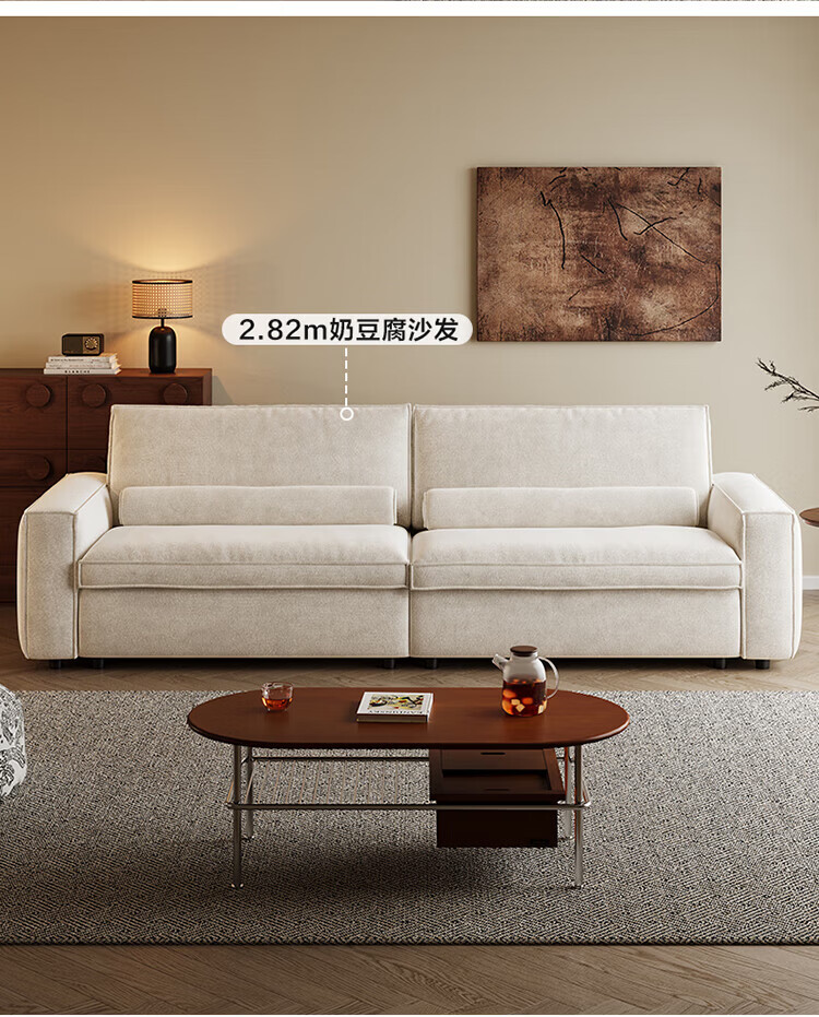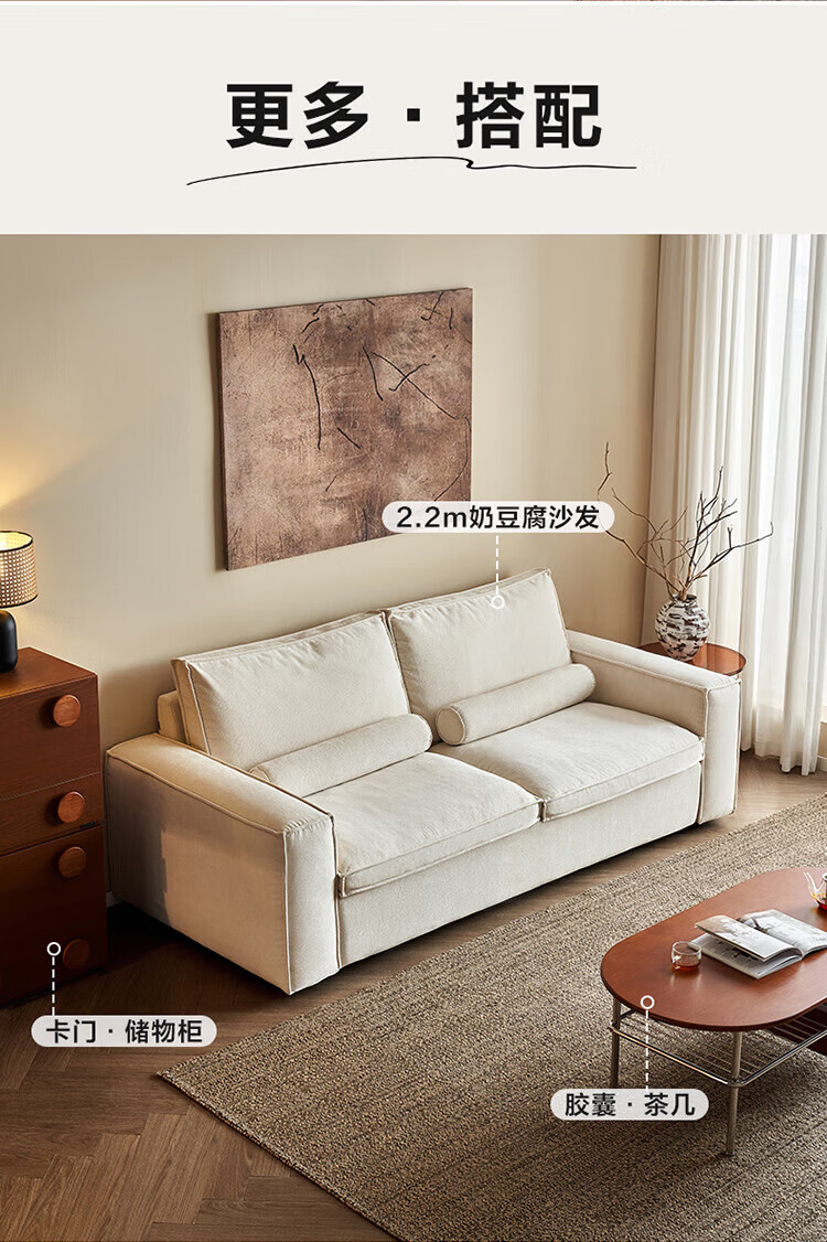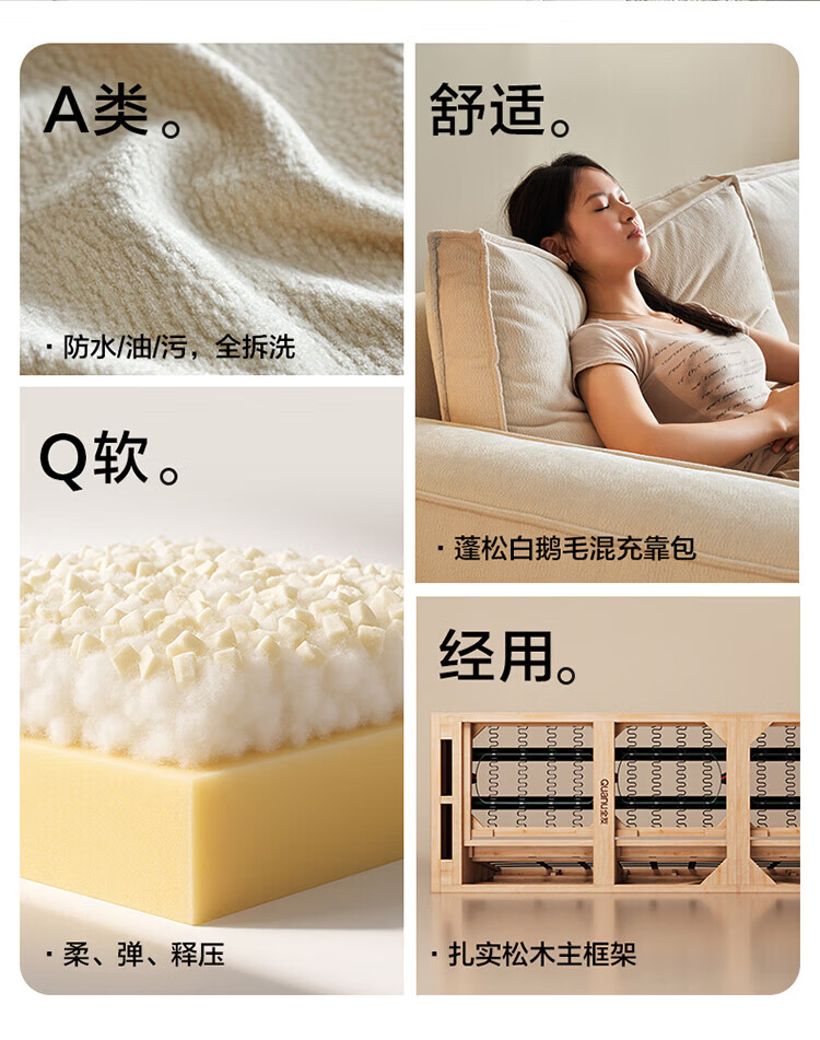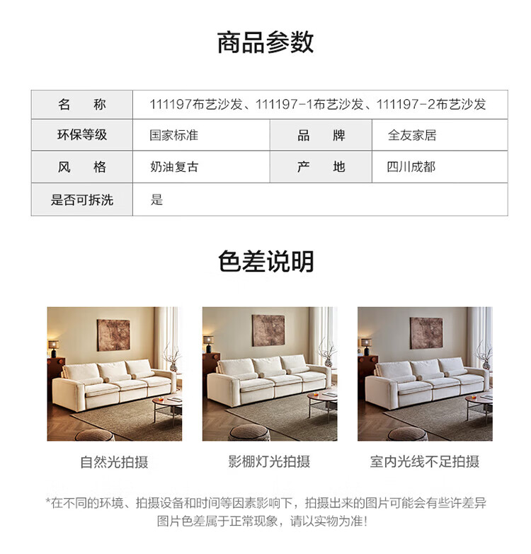 全友(QUANU)【迷瞪清仓货盘】复古风布艺沙发可拆洗三人位直排沙发小户型 A类面料|奶白|三防雪尼尔|3.24m沙发 乳胶+白鹅毛+62CM坐深