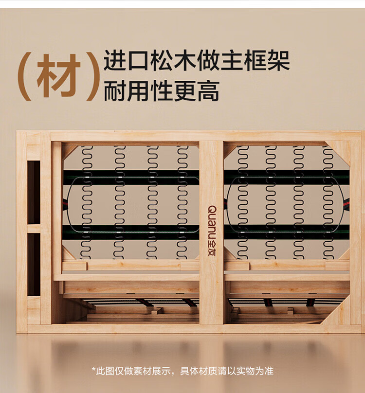 全友家居原木风高脚储物双人床2026新款小户型卧室排骨架床和床垫组合 【黑胡桃木风】 1.5米x2米 单床
