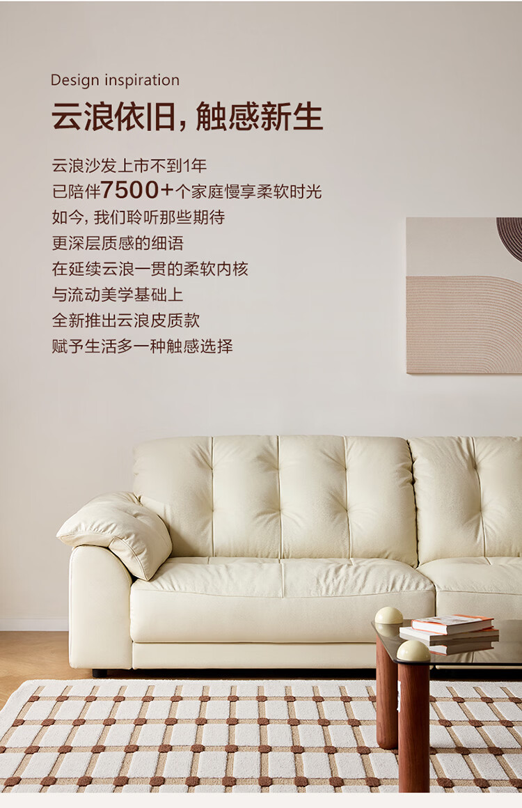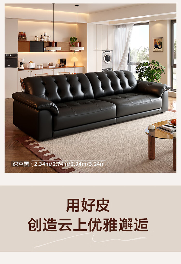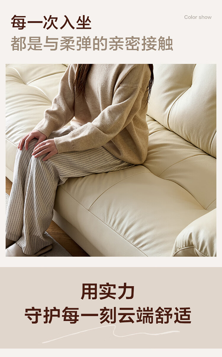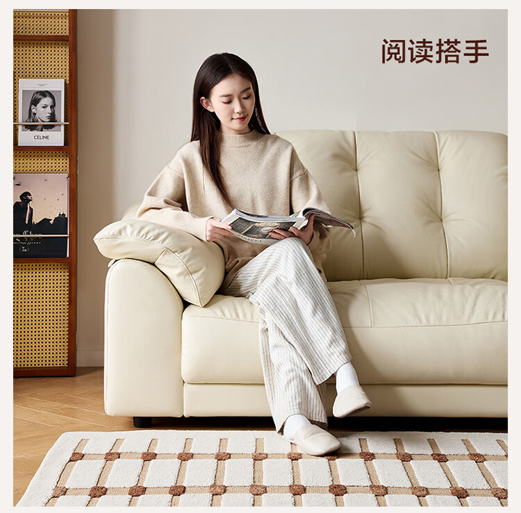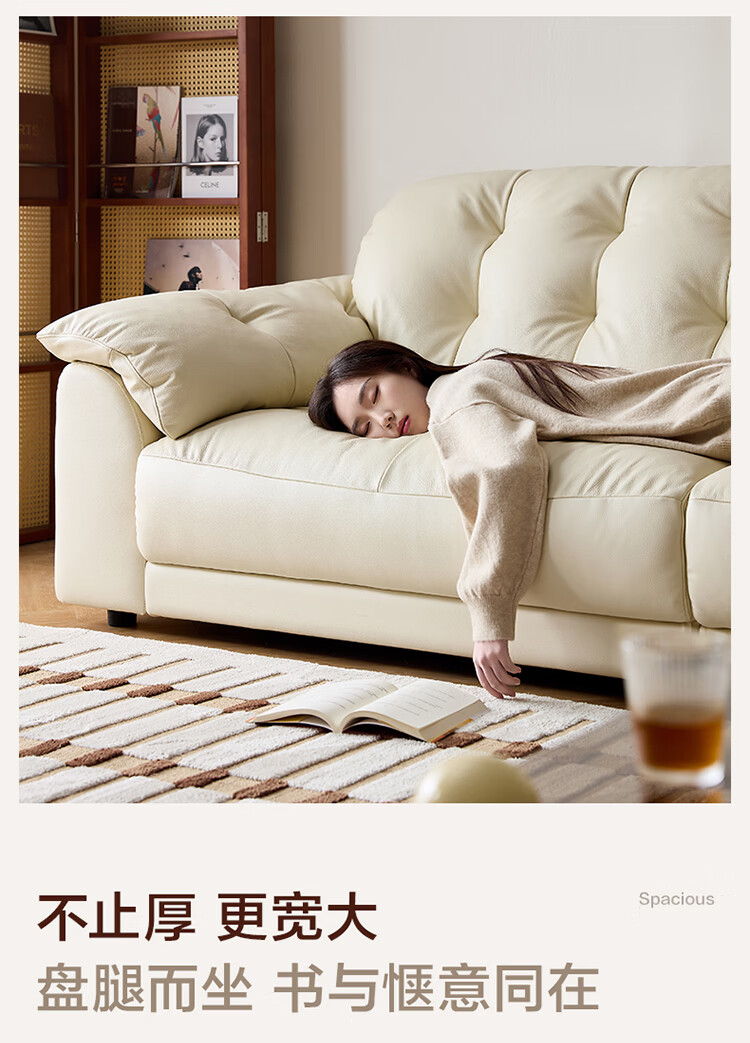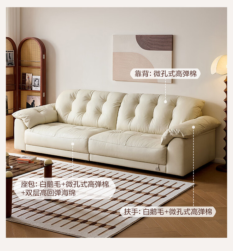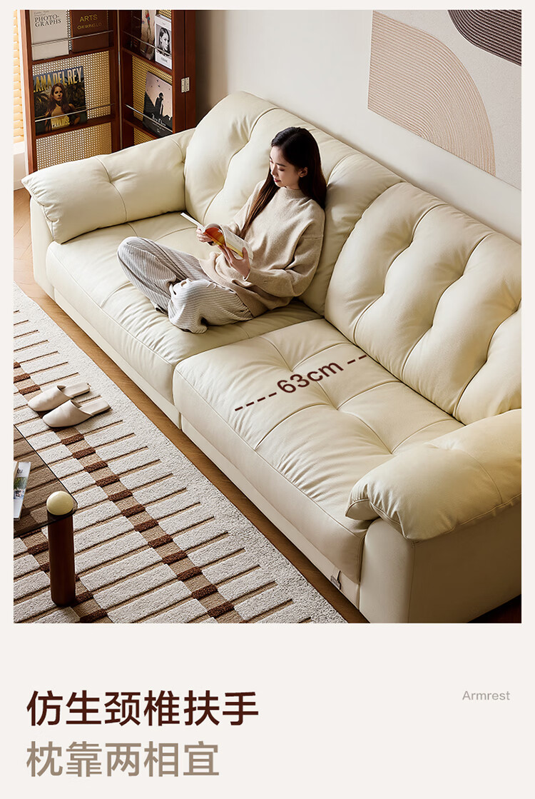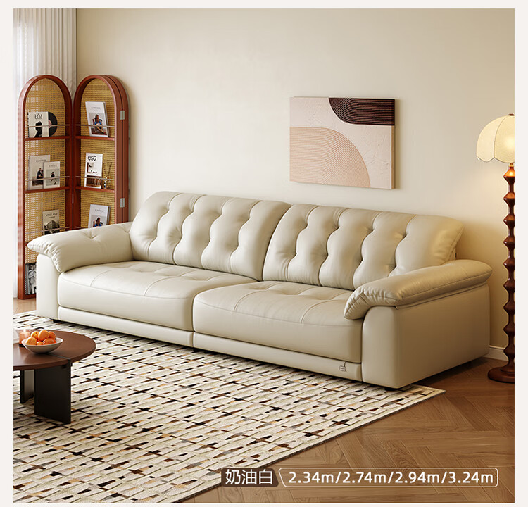 全友家居现代简约风沙发云浪头层牛皮真皮沙发客厅轻奢高级感2026新款 【 A类婴幼级头层牛皮】奶油白 2.34米