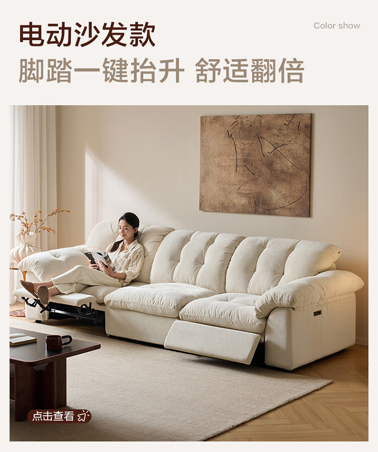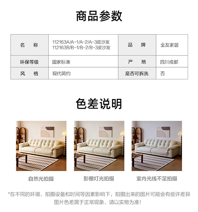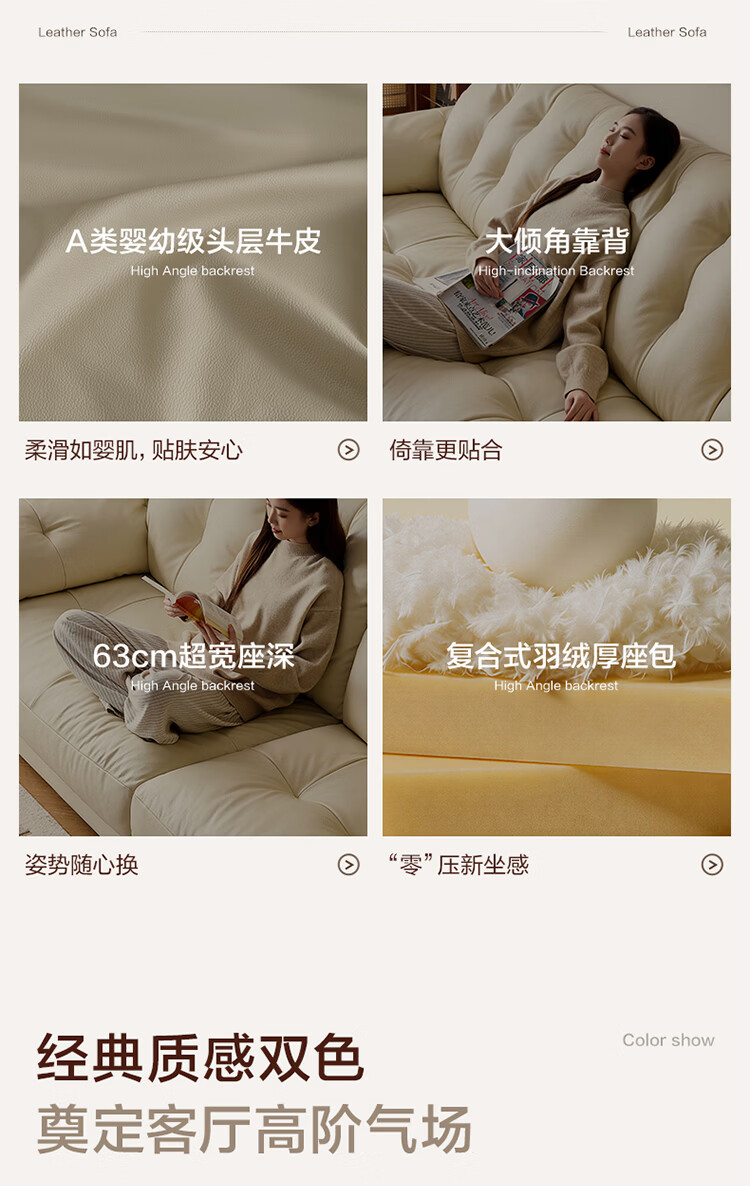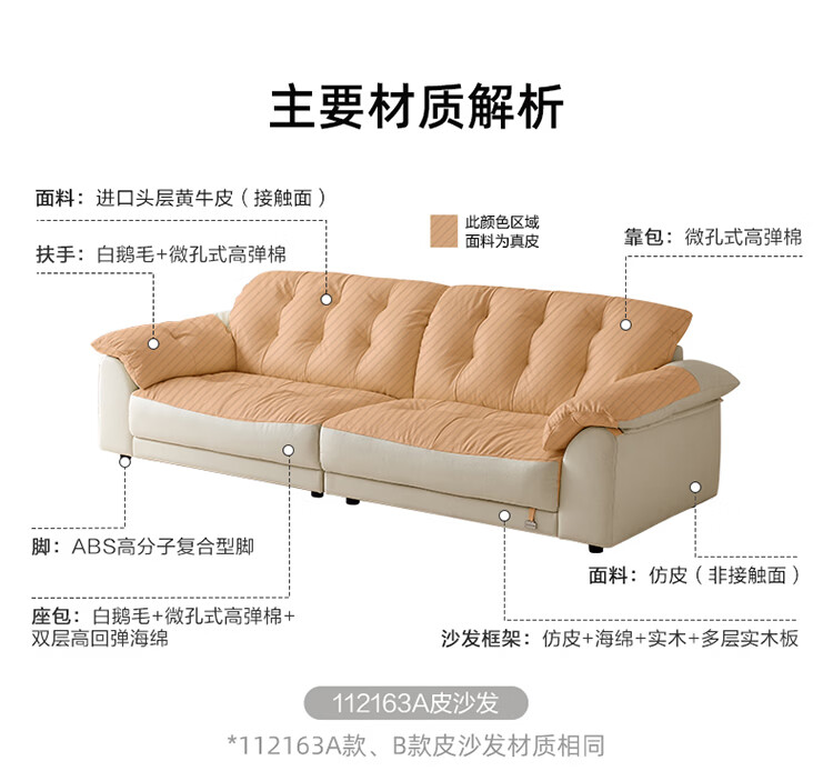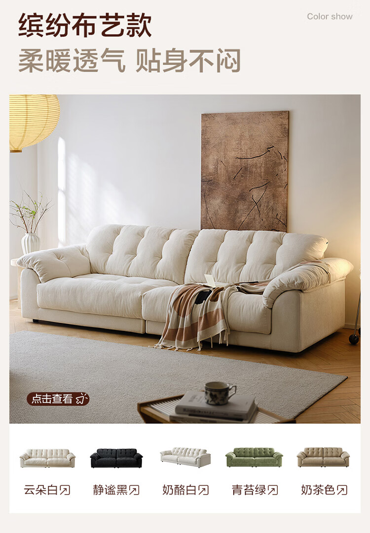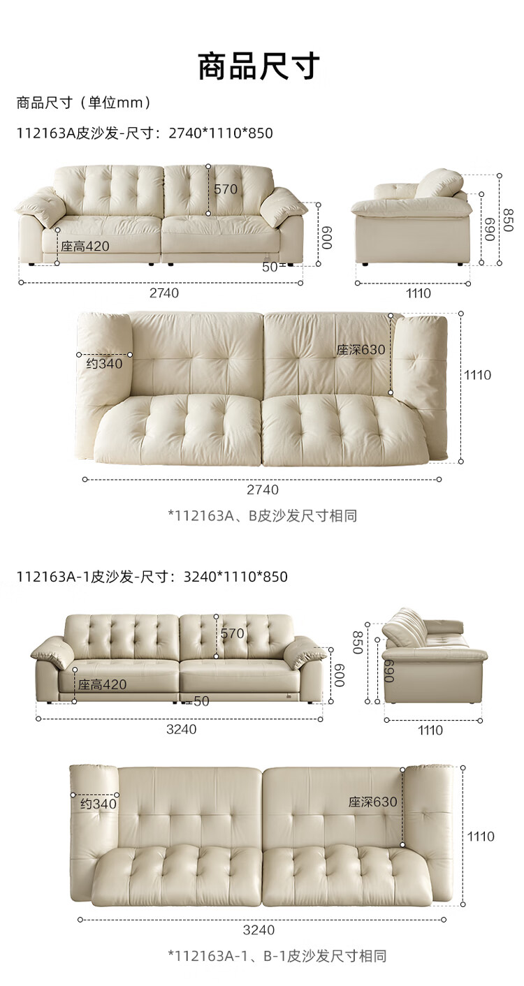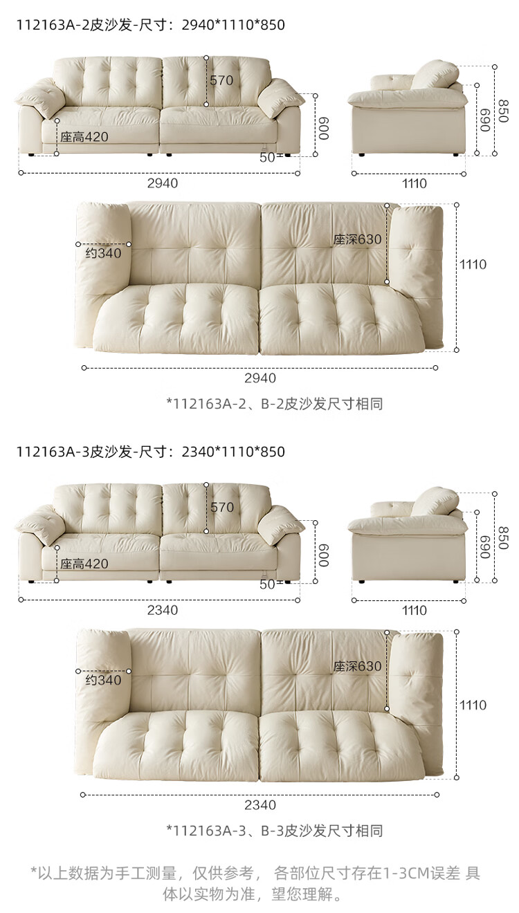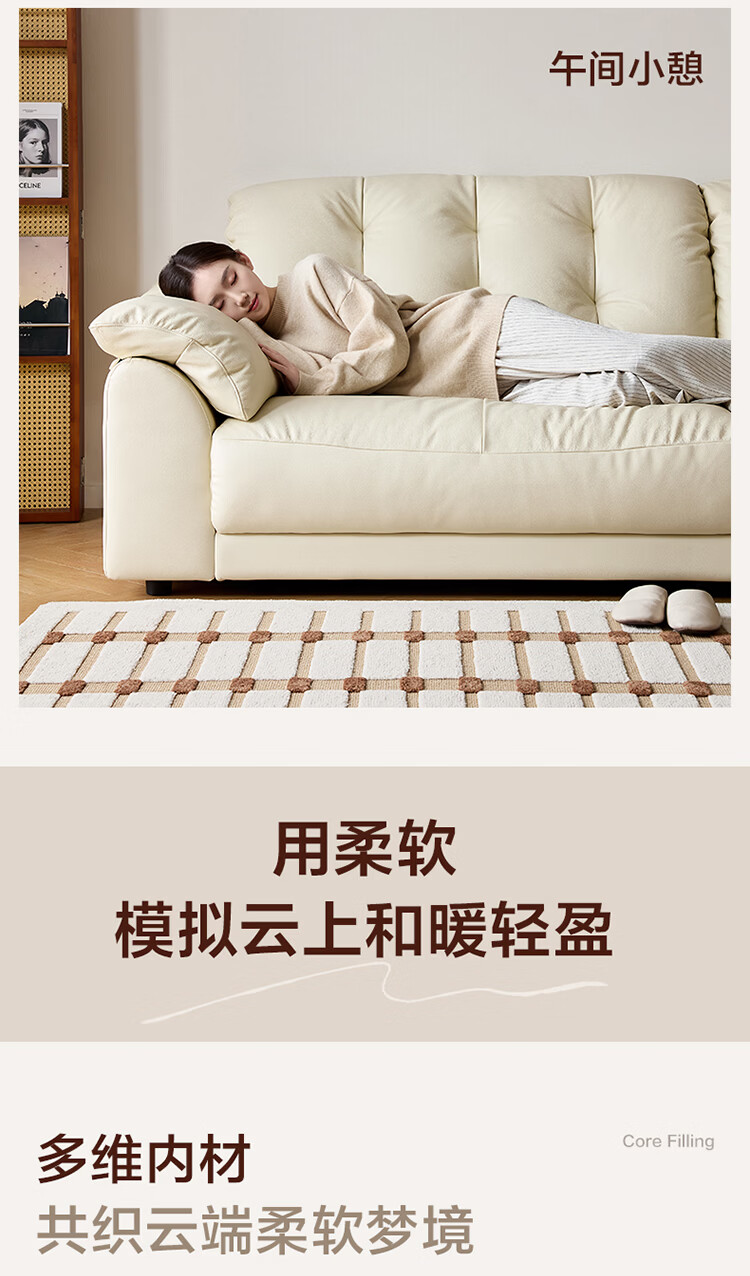 全友家居现代简约风沙发云浪头层牛皮真皮沙发客厅轻奢高级感2026新款 【 A类婴幼级头层牛皮】奶油白 2.34米