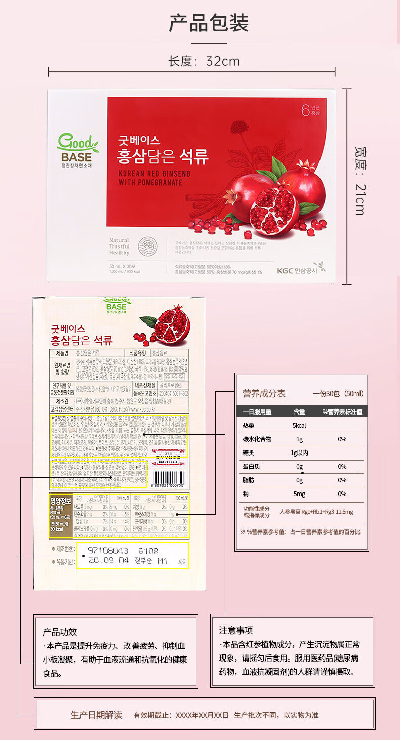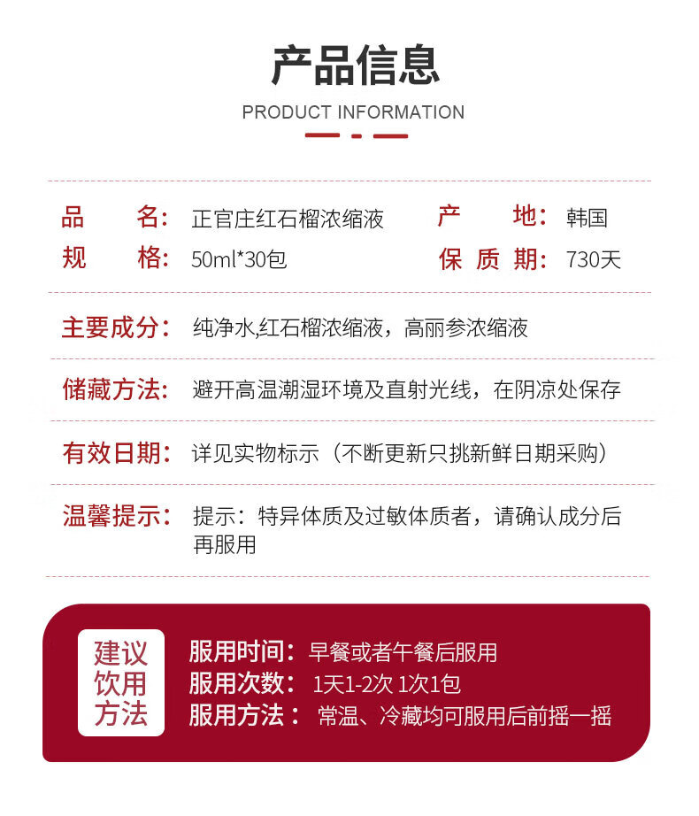 正官庄红石榴浓缩液礼盒 50ml*30包六年根红参高丽参年货节礼品韩国进口 石榴汁 50ml*30包