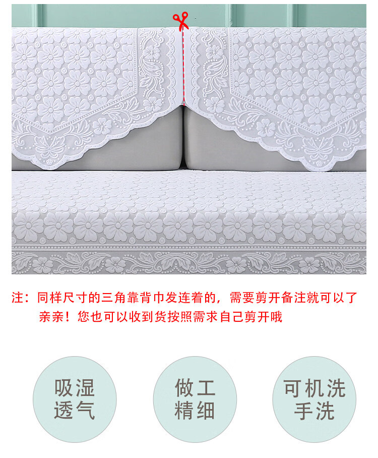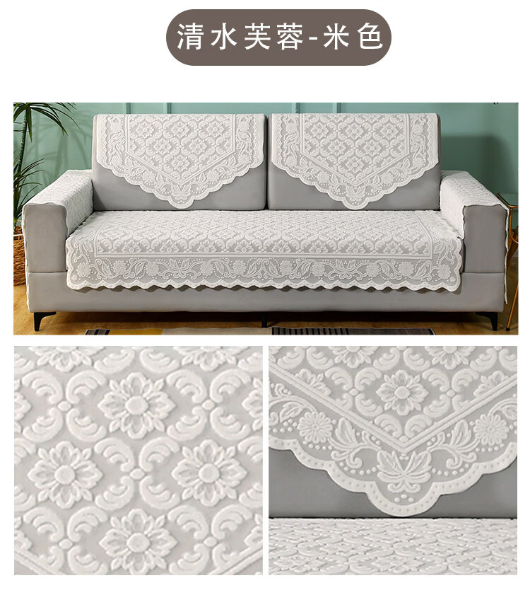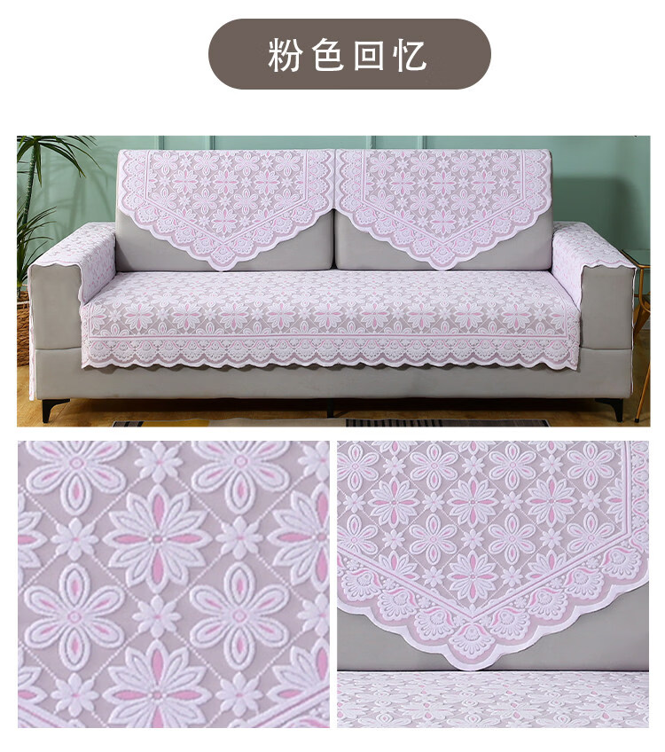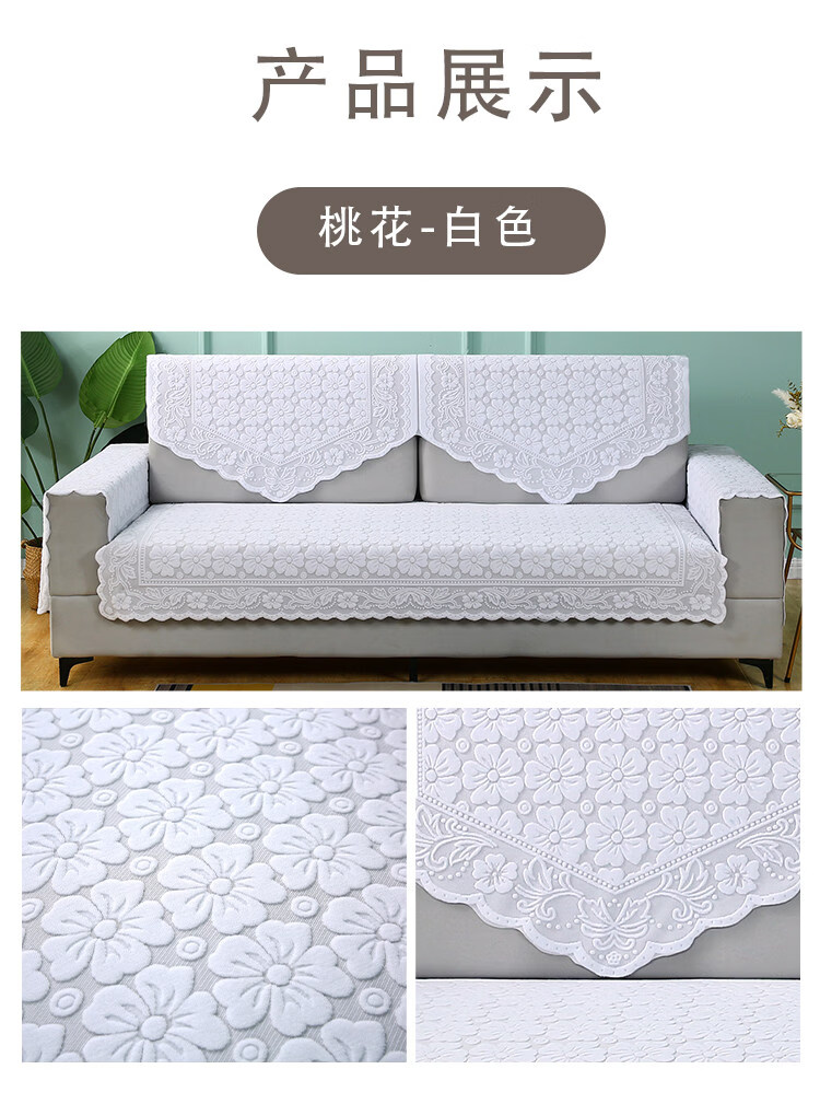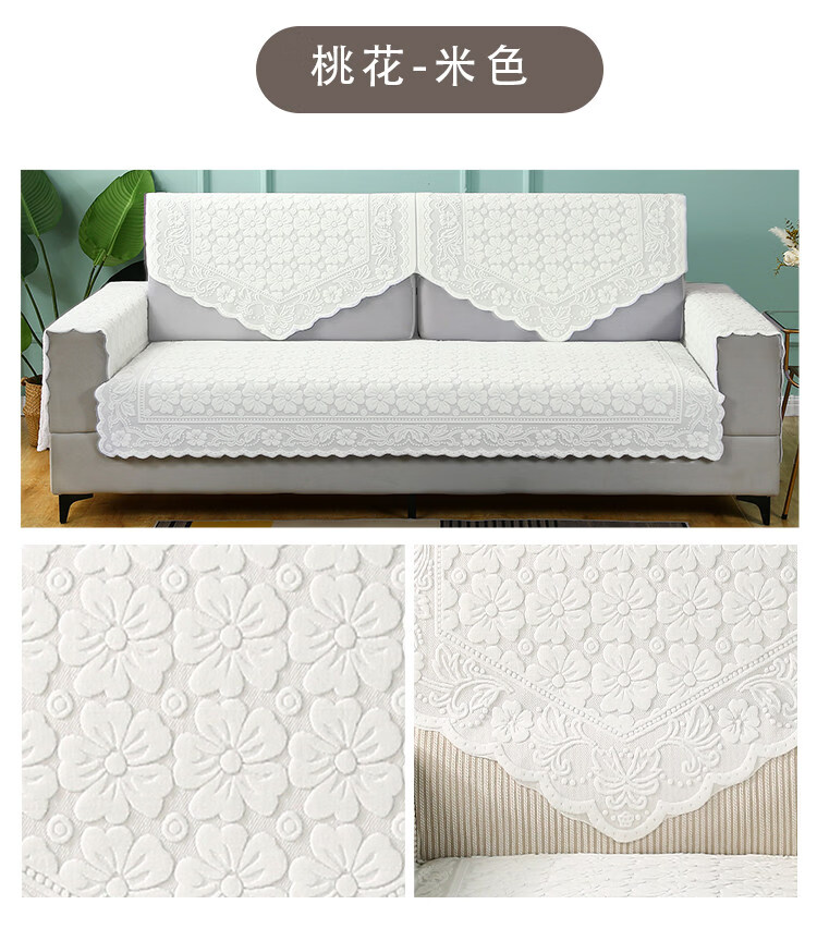 正圣单人沙发巾蕾丝沙发靠背巾加厚防滑四季通用沙发扶手巾盖布茶几巾 桃花-米色 65cm*75cm 靠背三角巾: