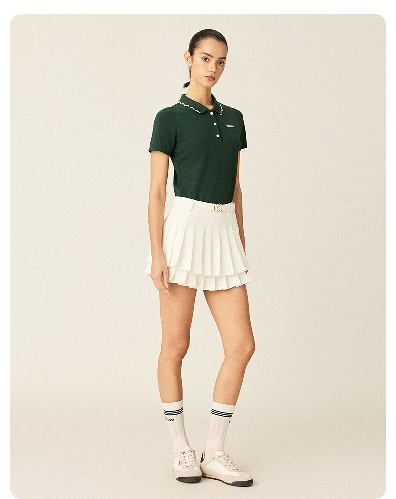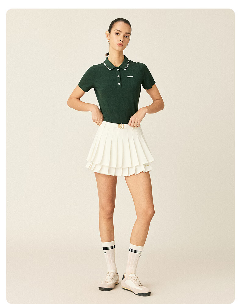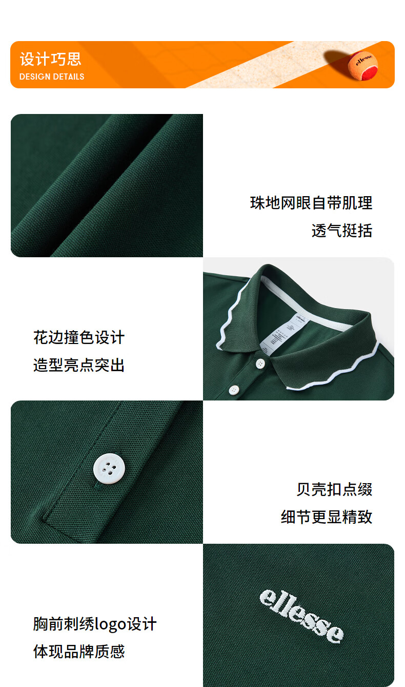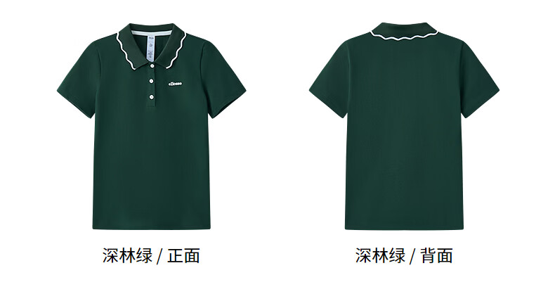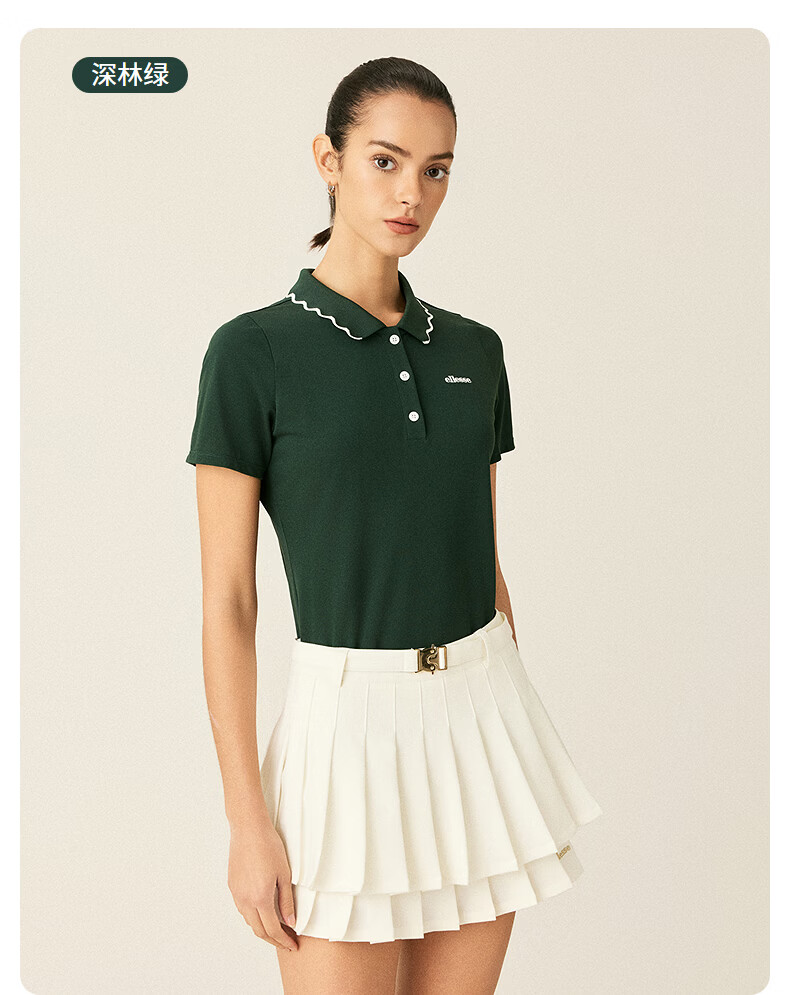 ellesse小贝壳26春季新品网球服运动透气显瘦POLO花边领短袖女 深林绿 S