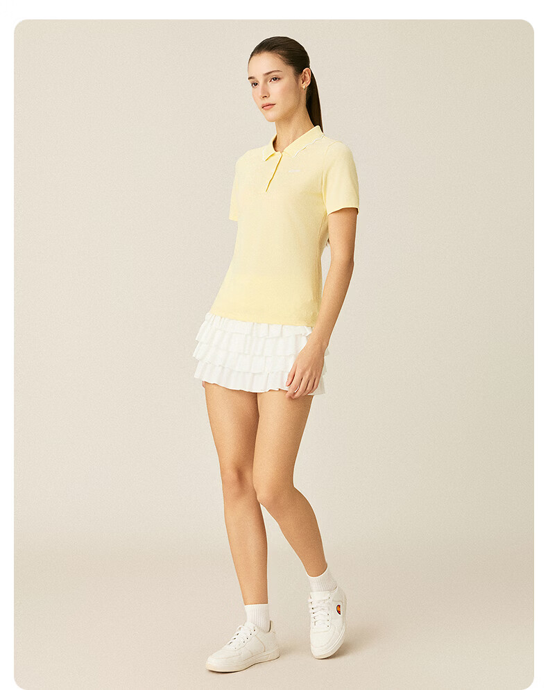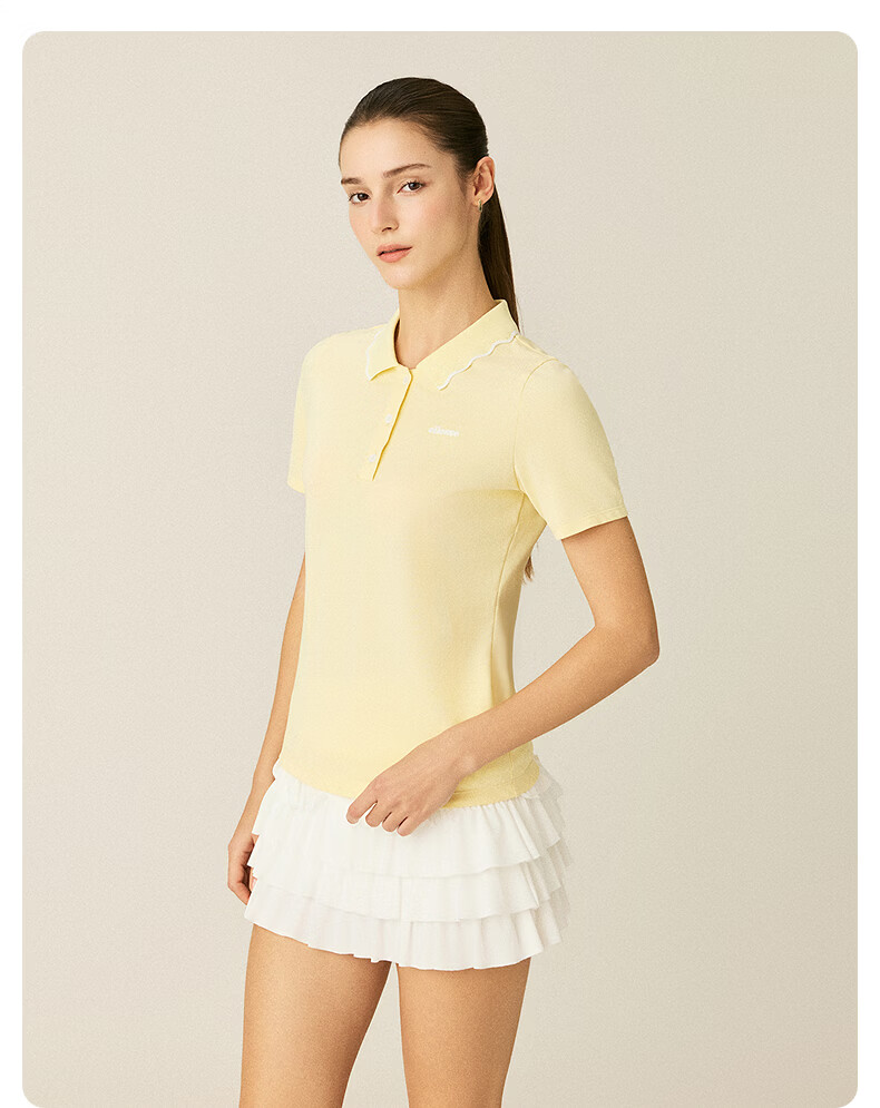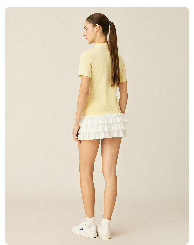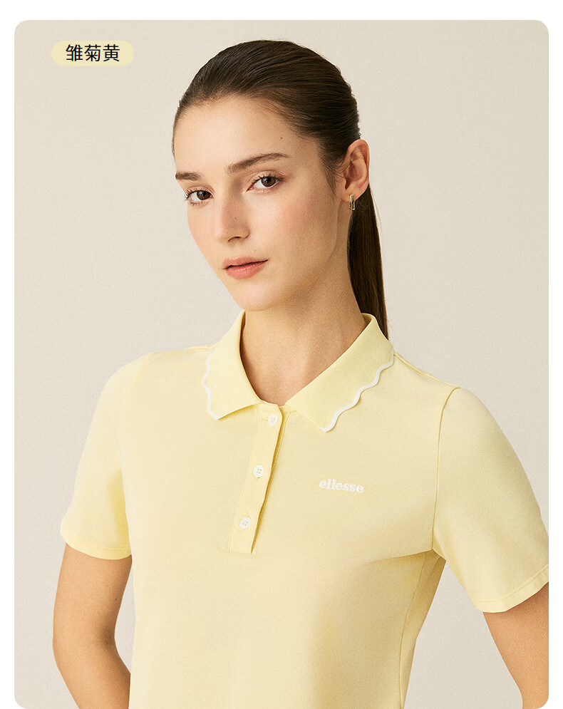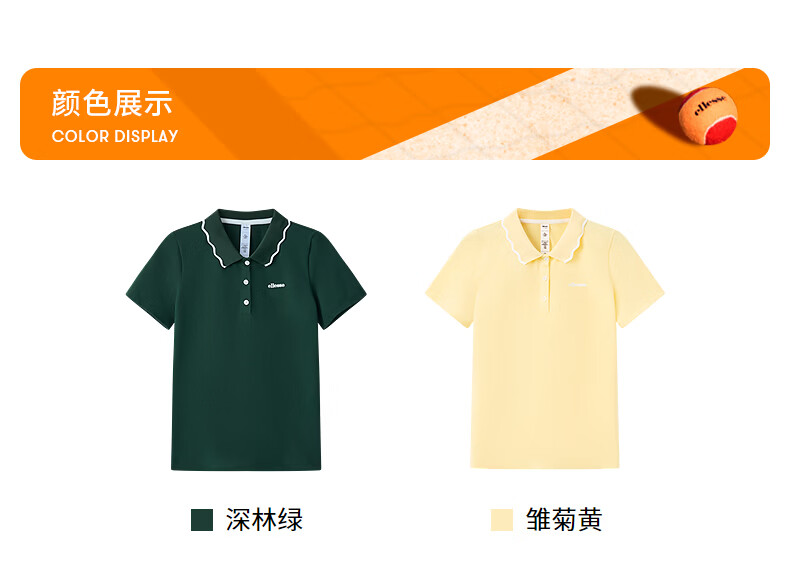 ellesse小贝壳26春季新品网球服运动透气显瘦POLO花边领短袖女 深林绿 S