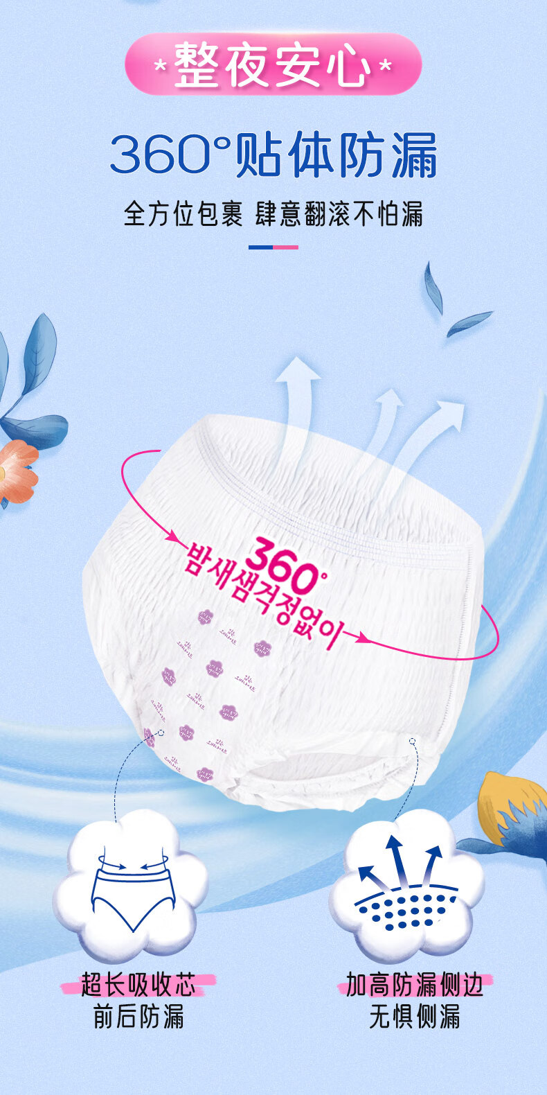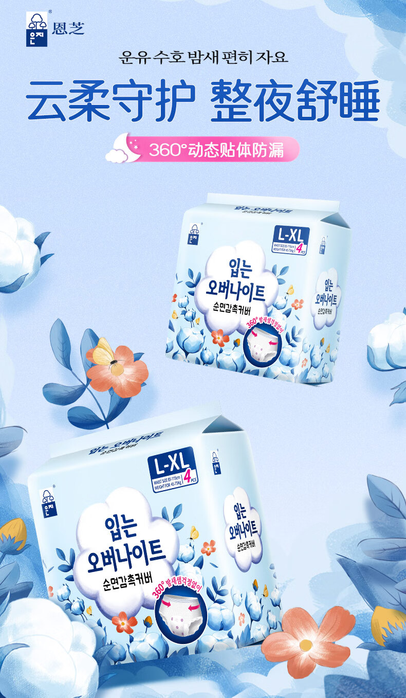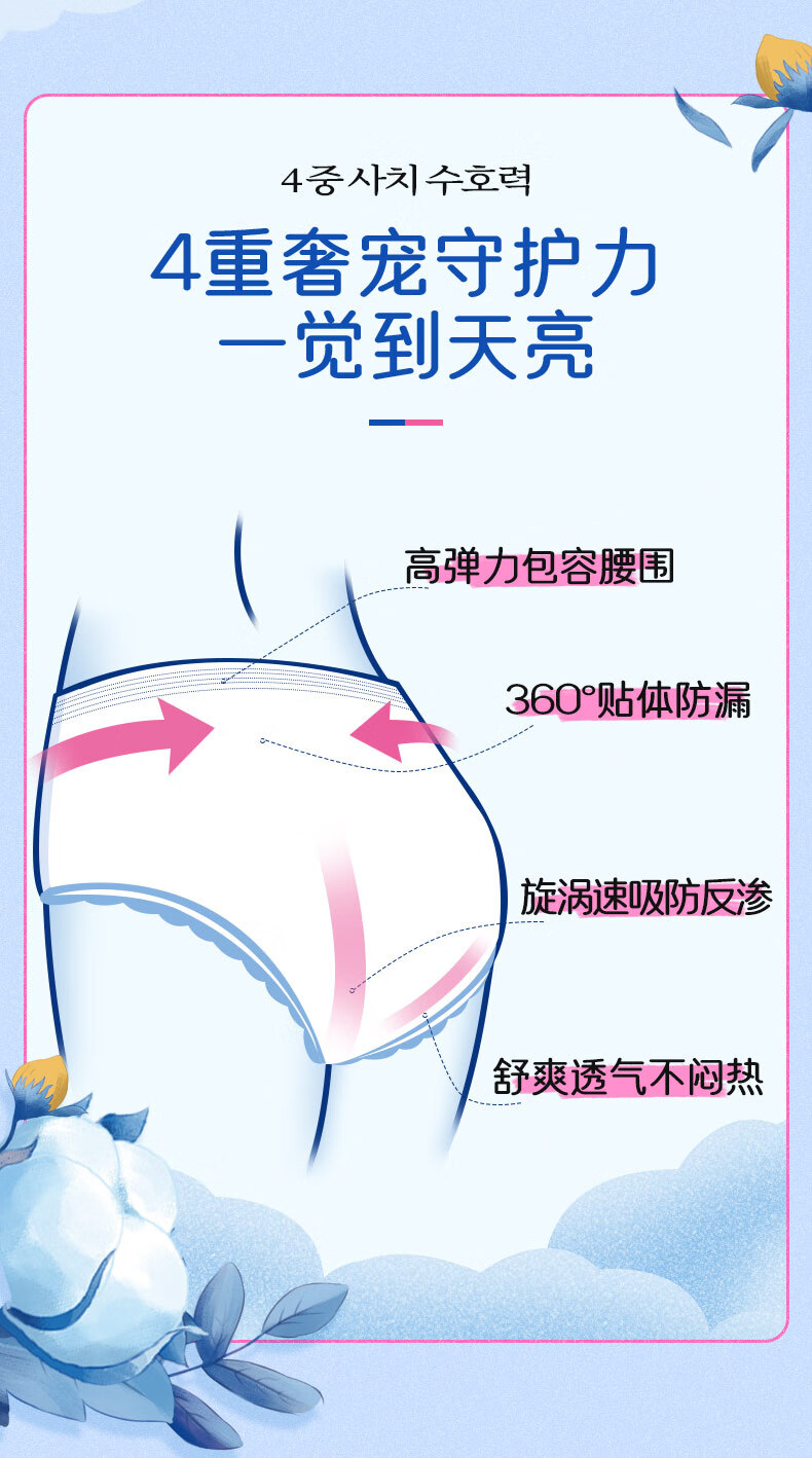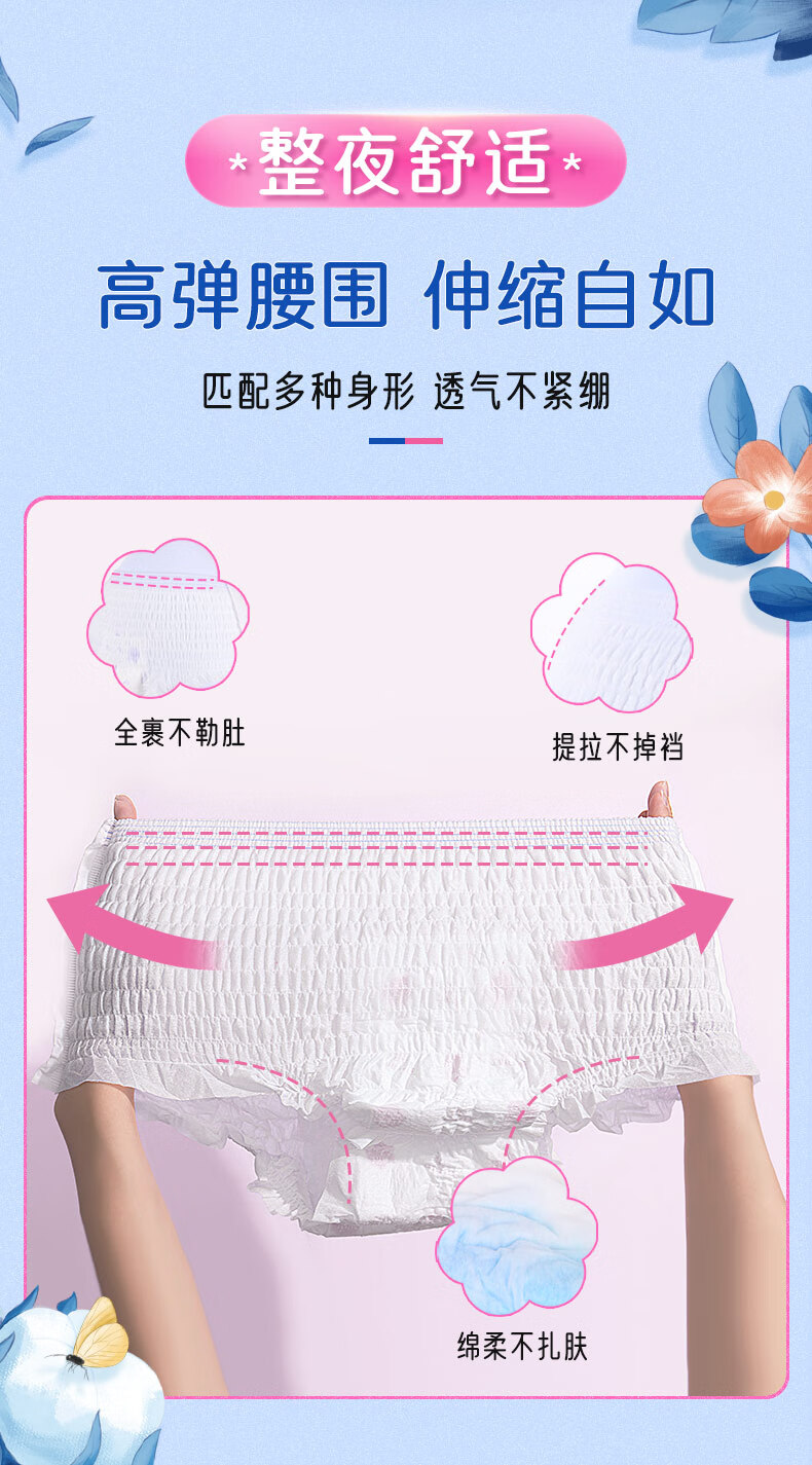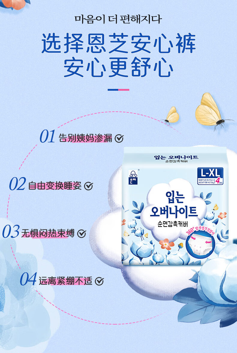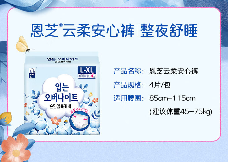 恩芝云柔安心裤L码8片经期姨妈夜用卫生巾防漏防反渗超薄拉拉安睡裤女