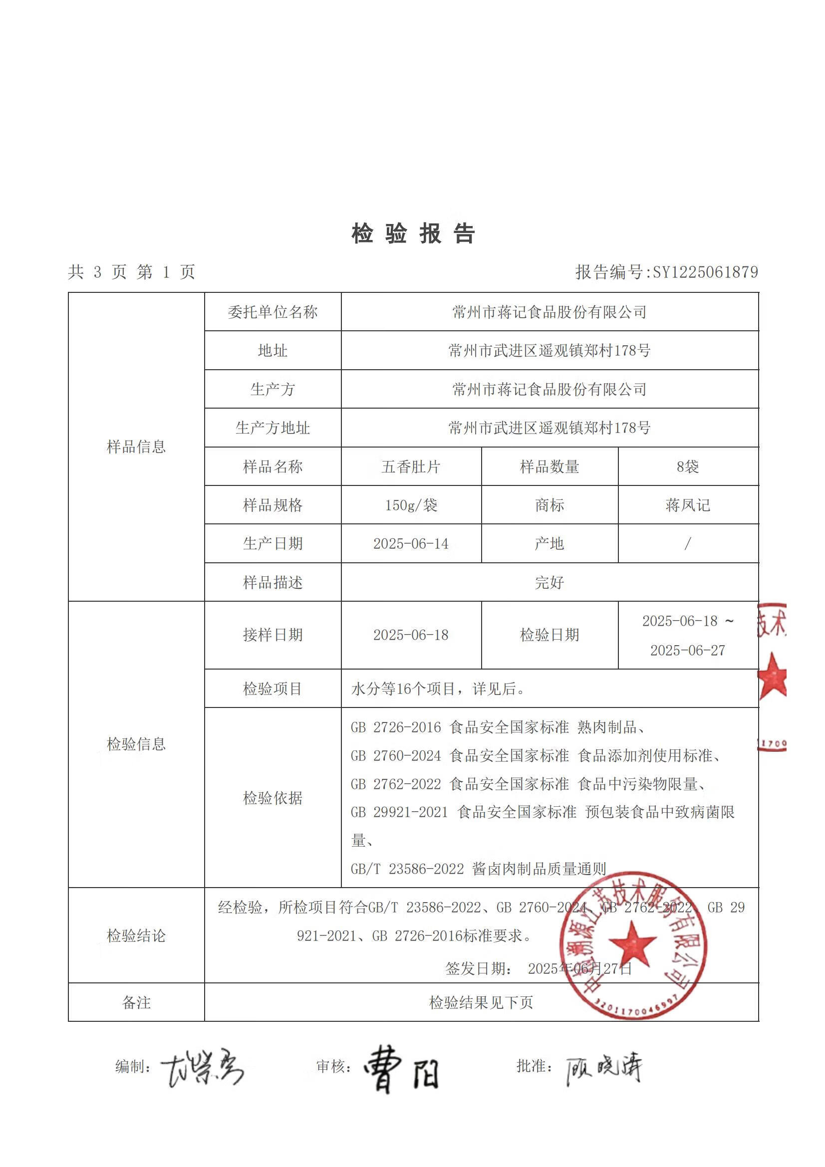 蒋凤记五香肚片下酒凉菜熟食即食秘制卤味鲜香美味真空包装150g现货速发 五香肚片*4袋共600(更划算)