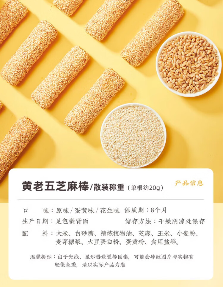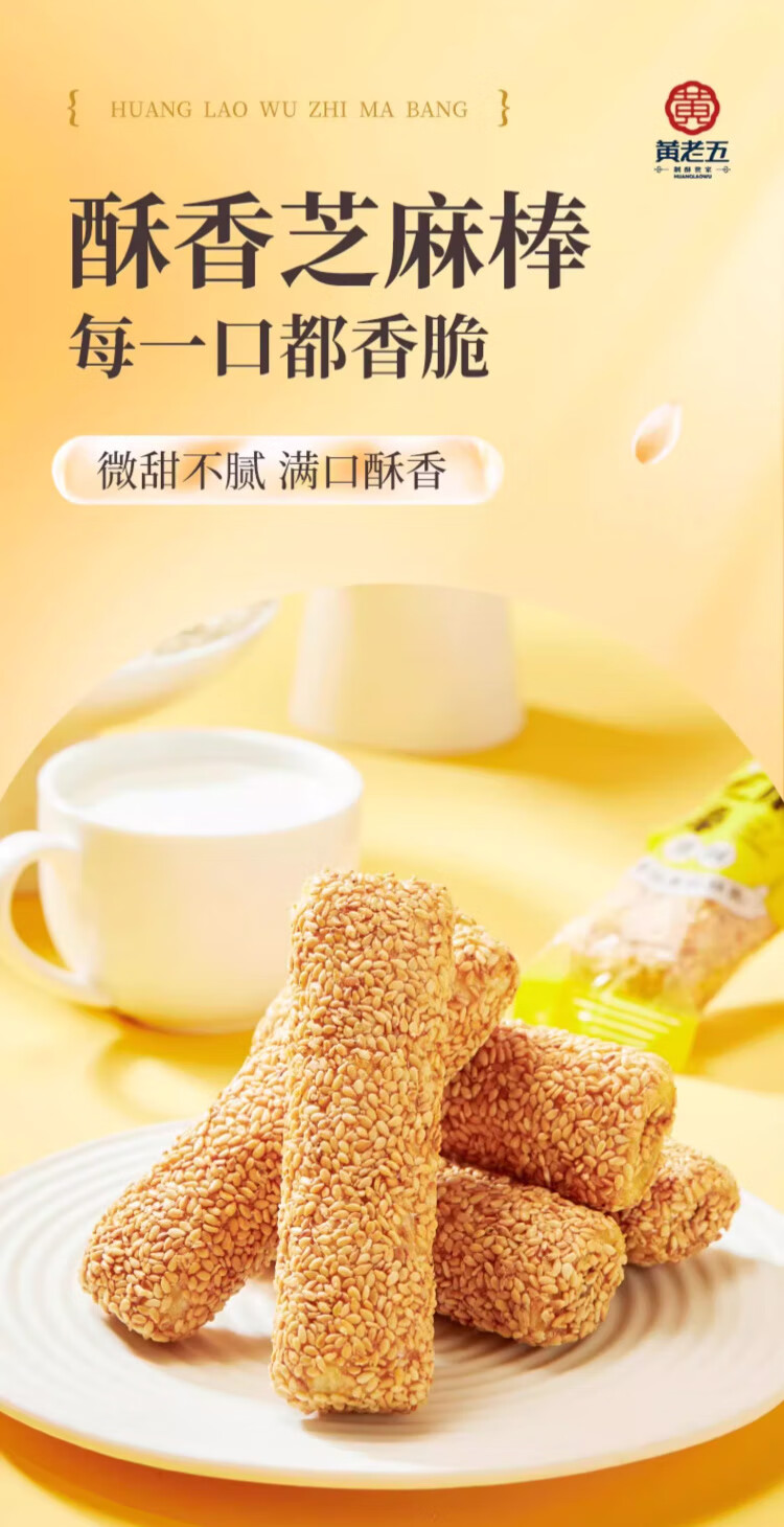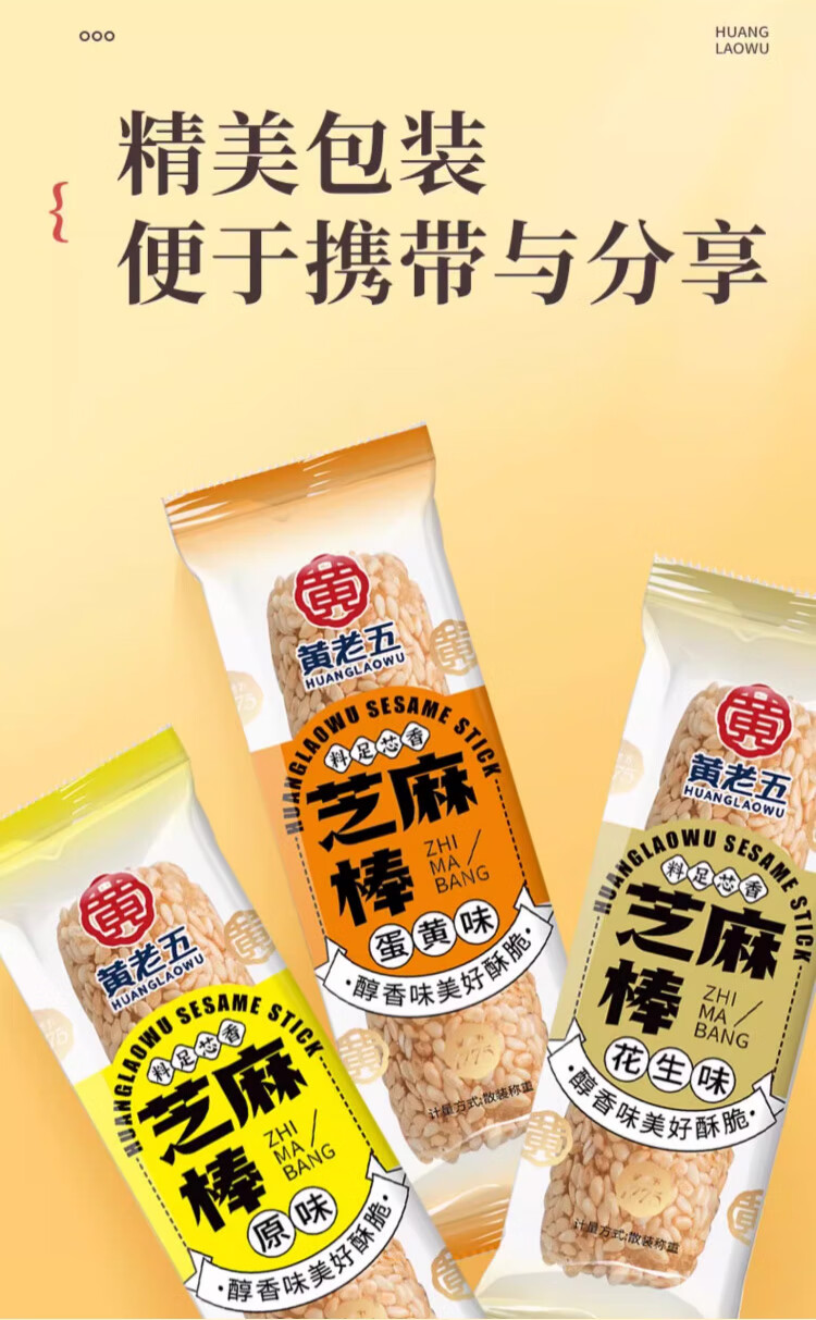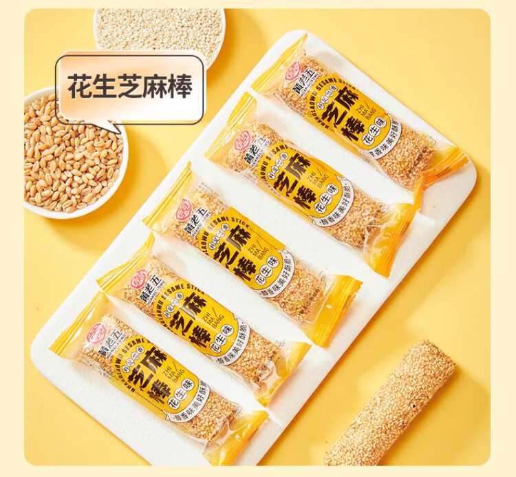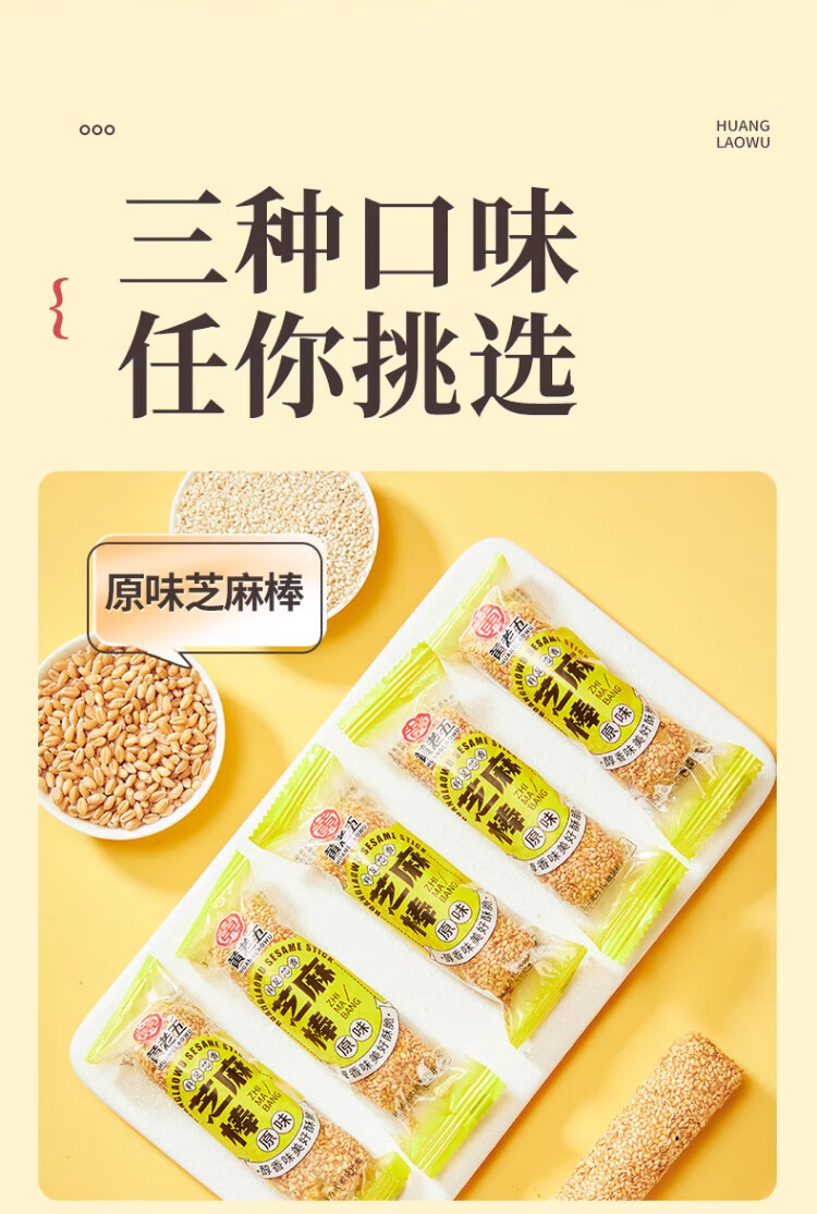 黄老五芝麻棒多味健康 8090怀旧传统零食夜宵充饥四川特产年货特色小吃 原味芝麻棒约1000g(40袋)