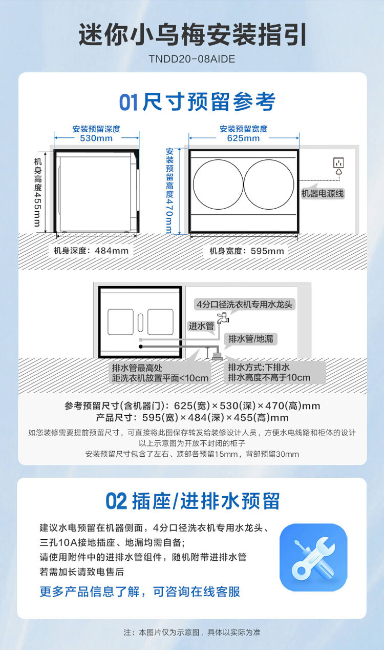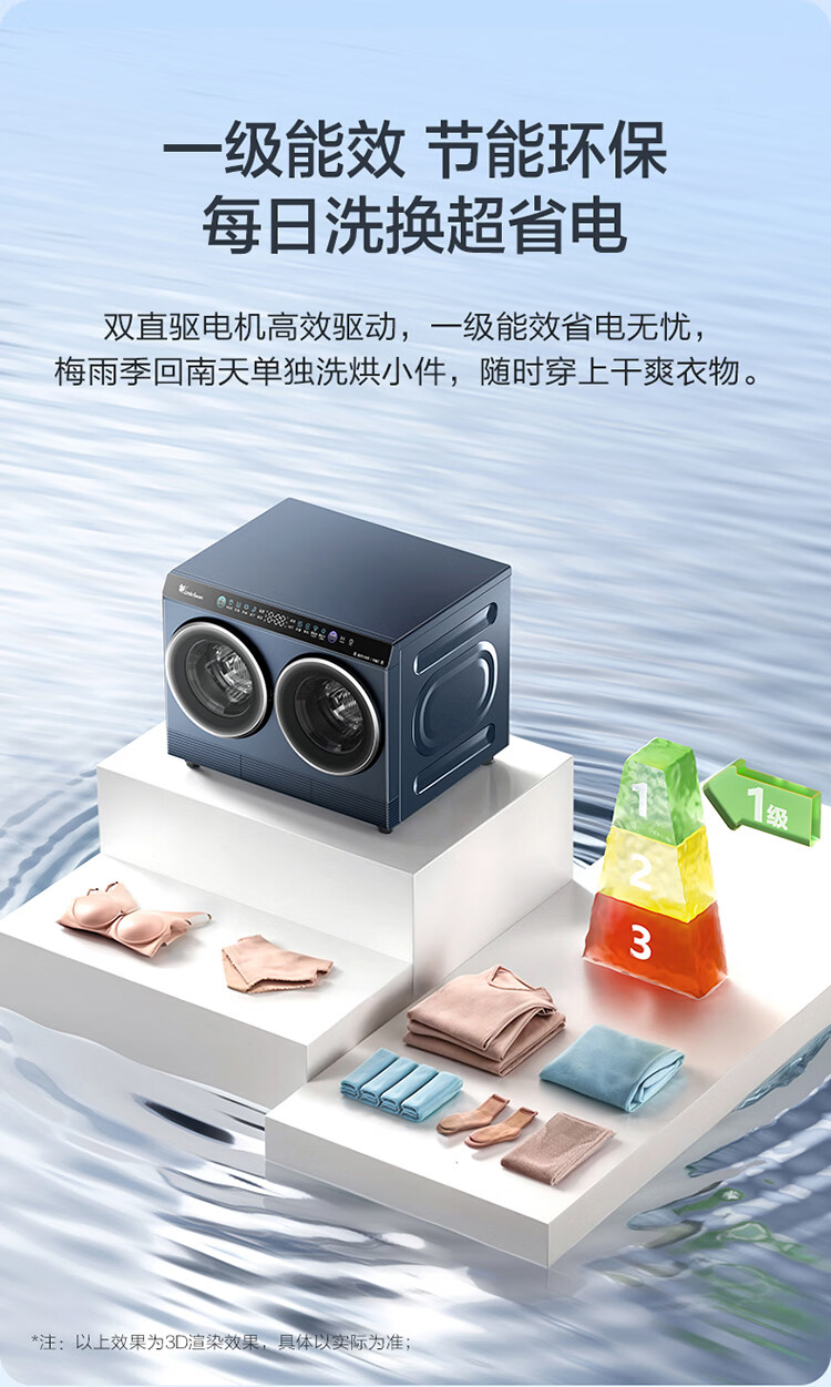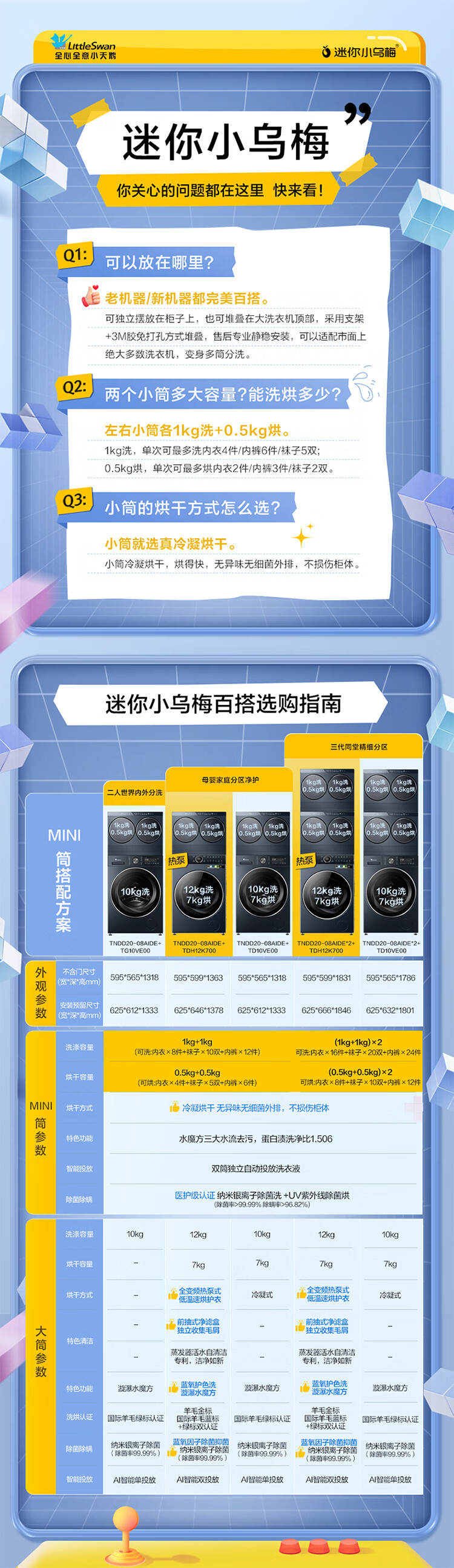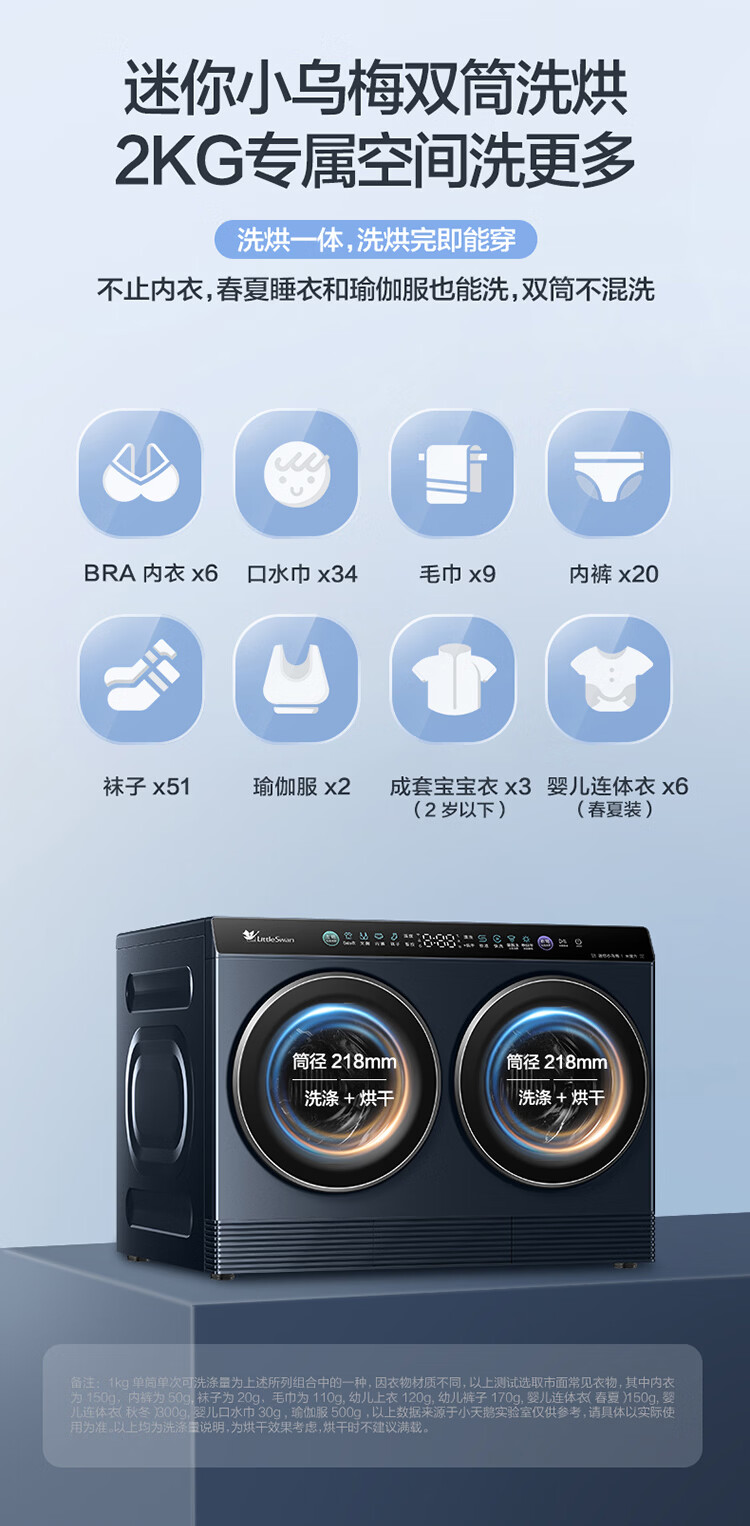 小天鹅(LittleSwan)迷你小乌梅 双筒分区洗 2KG洗烘一体 TNDD20-08AIDE可组懒人三筒洗衣机 可叠放 内衣洗全自动 三桶