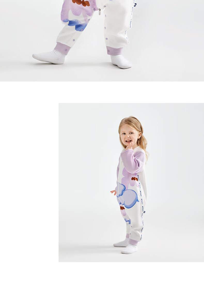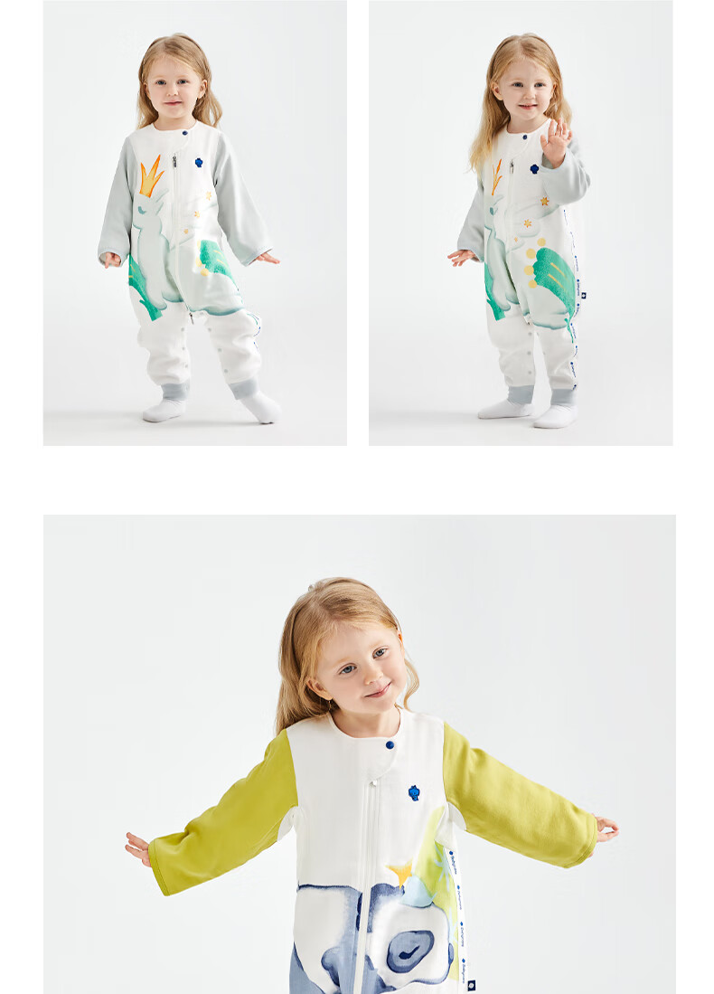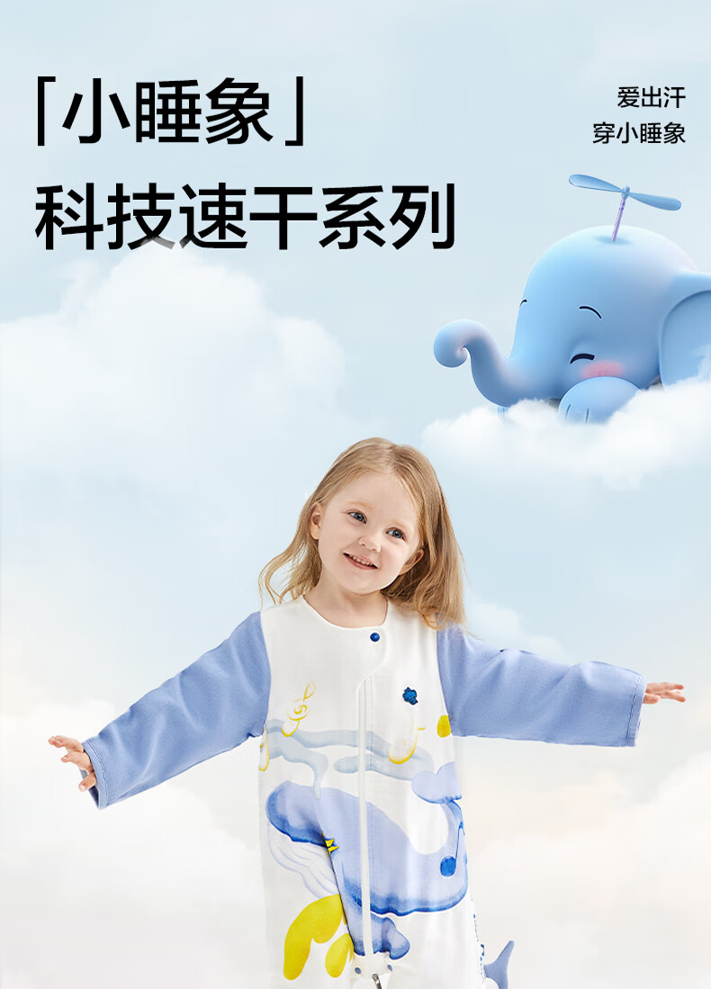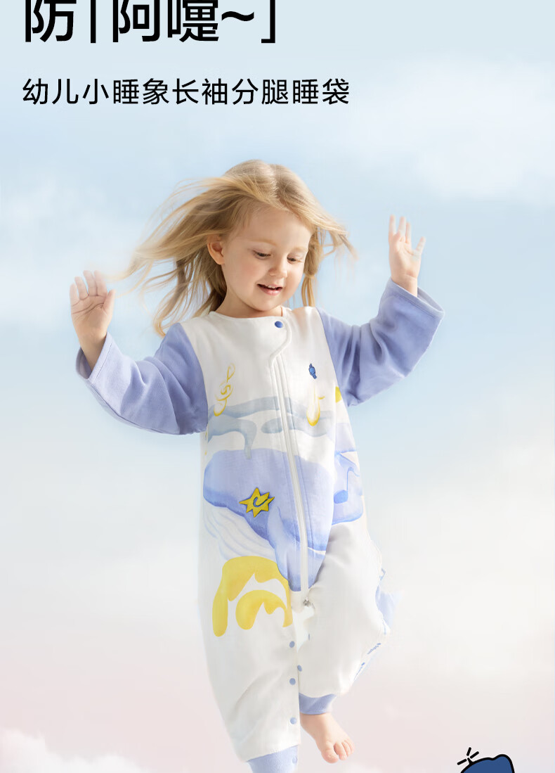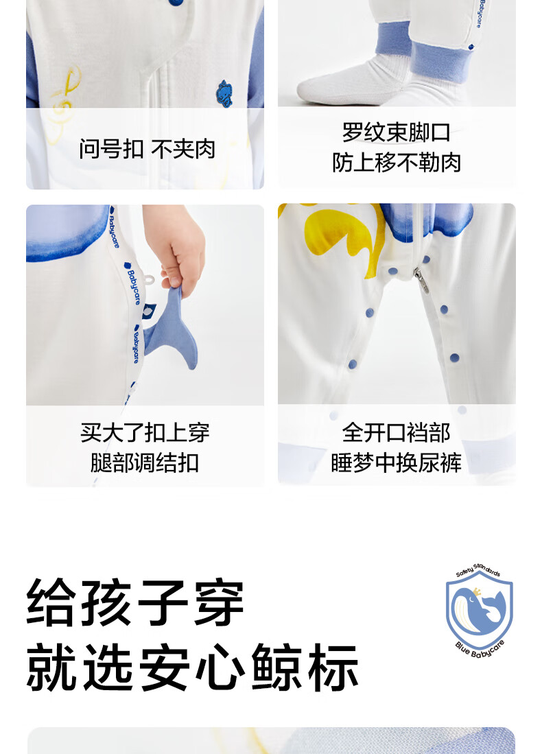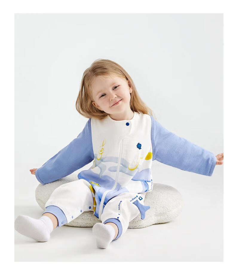 babycare婴儿春夏分腿睡袋清爽吸湿透气长袖4层HappyWhale90码-85-95cm