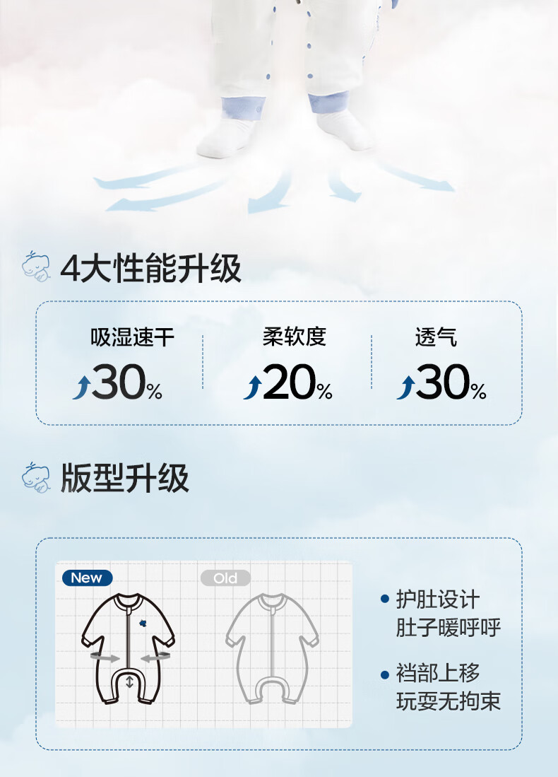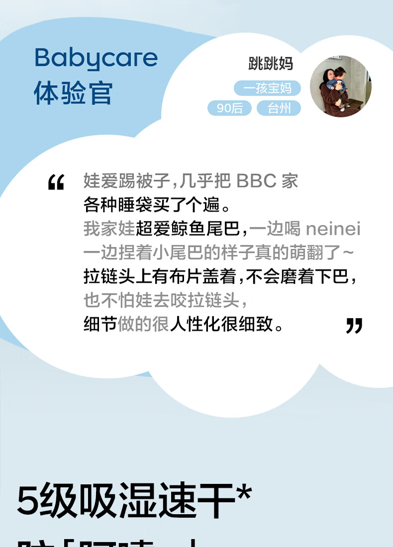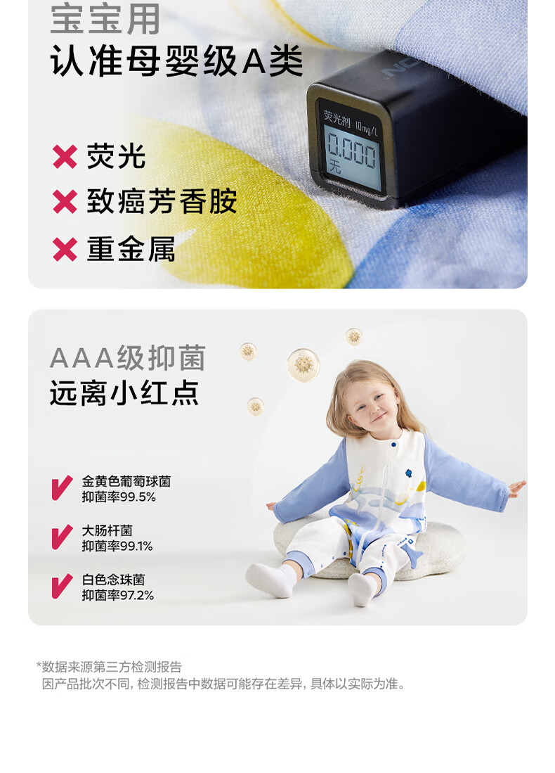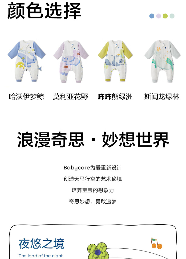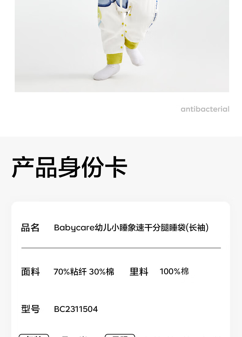 babycare婴儿春夏分腿睡袋清爽吸湿透气长袖4层HappyWhale90码-85-95cm