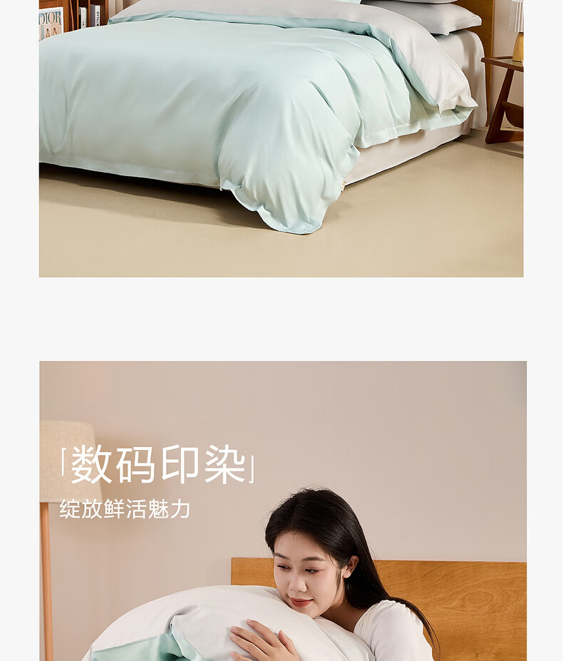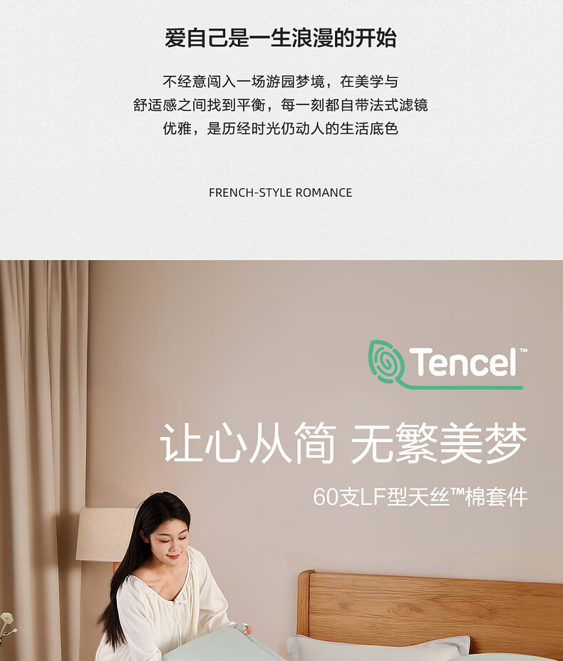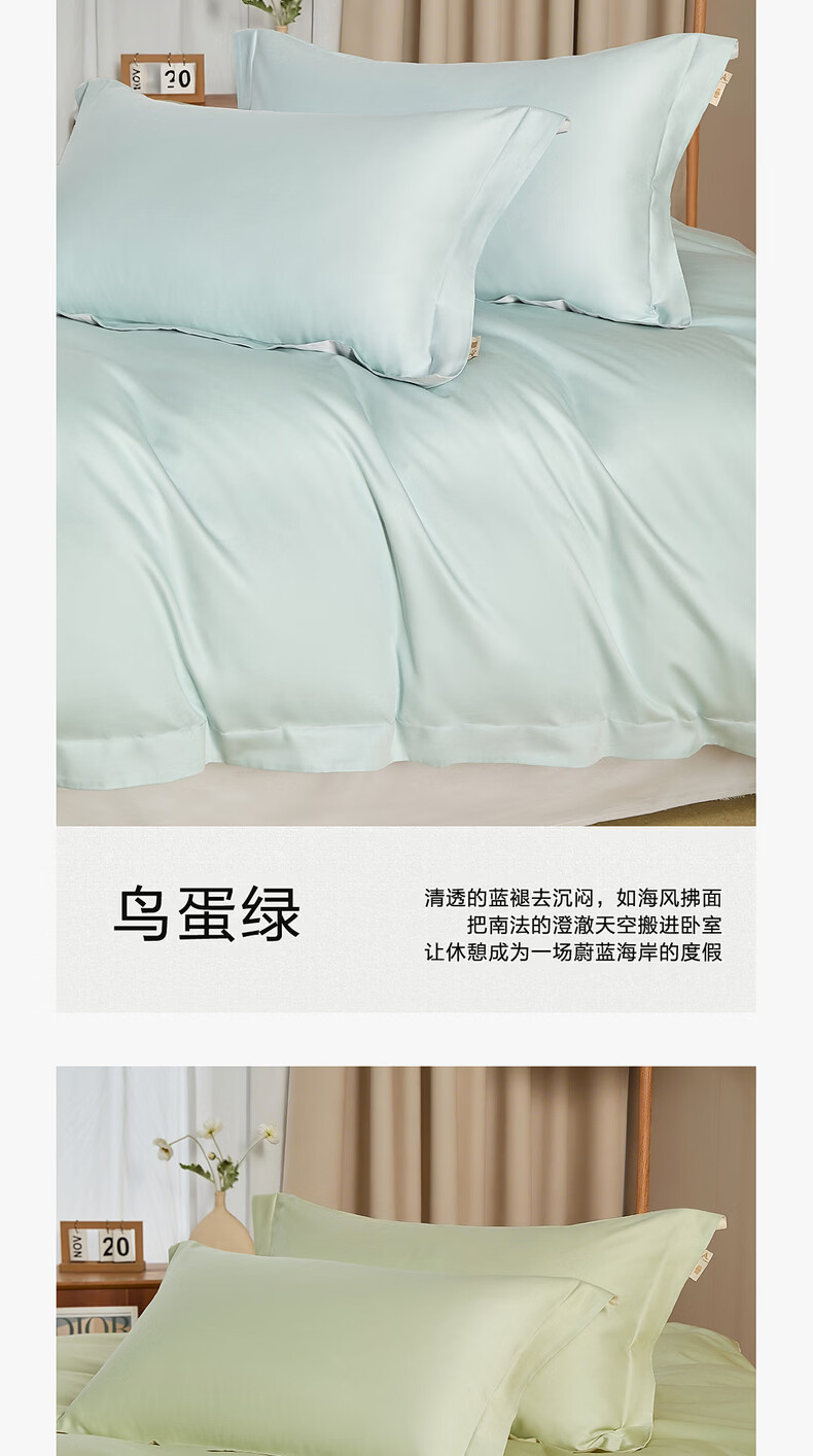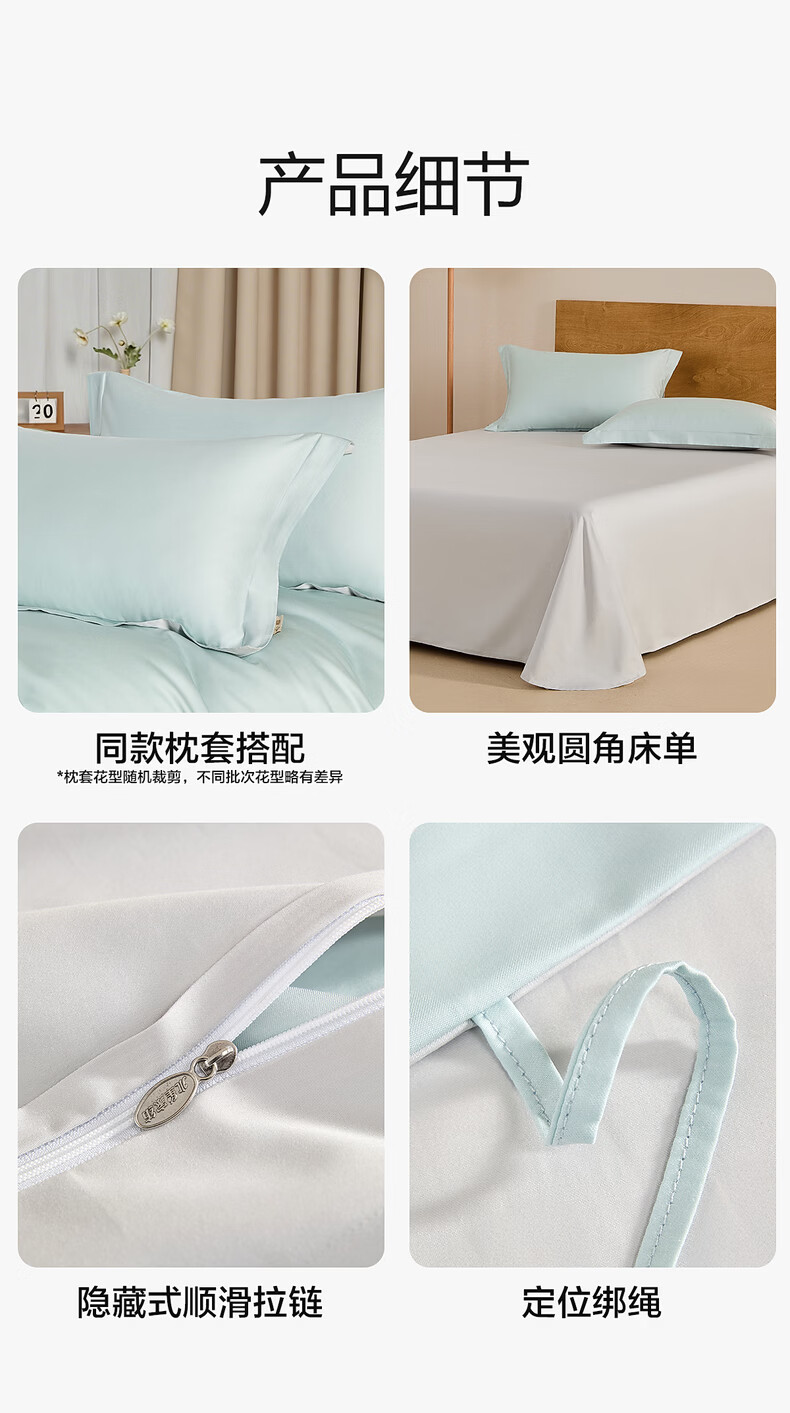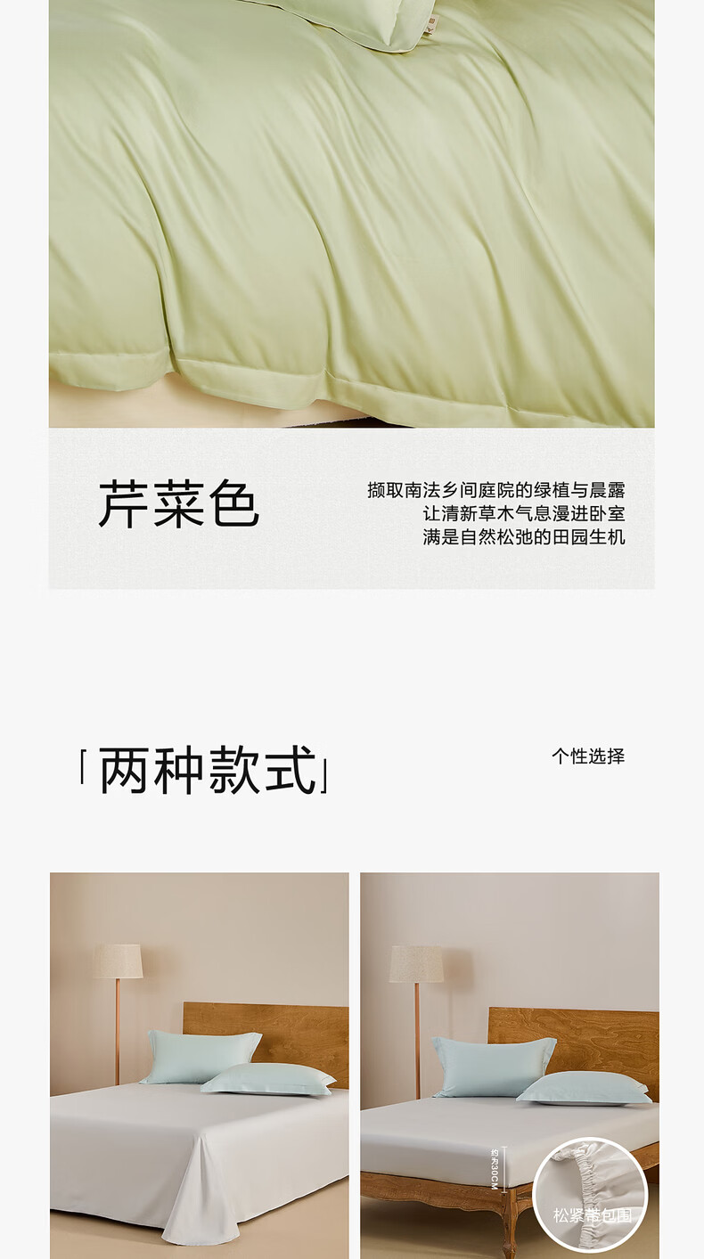 水星家纺四件套床上A类天丝™棉凉感莱赛尔被套枕套床单26年新款套件 南法·云肤之梦(芹菜色) 床单款 (被套150*210cm)