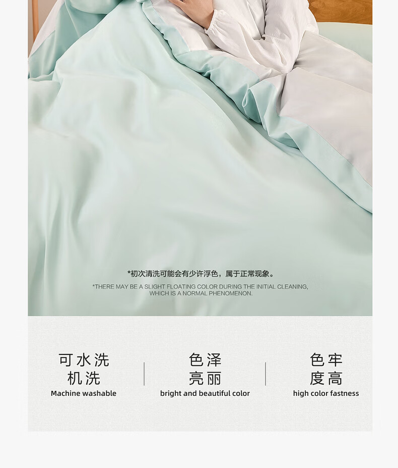 苏萱2026新款热卖水洗冰丝夏被四件套夏季夏凉被空调被可机水洗单双人 亚丁绿+冰川灰 单人夏被-150*200cm