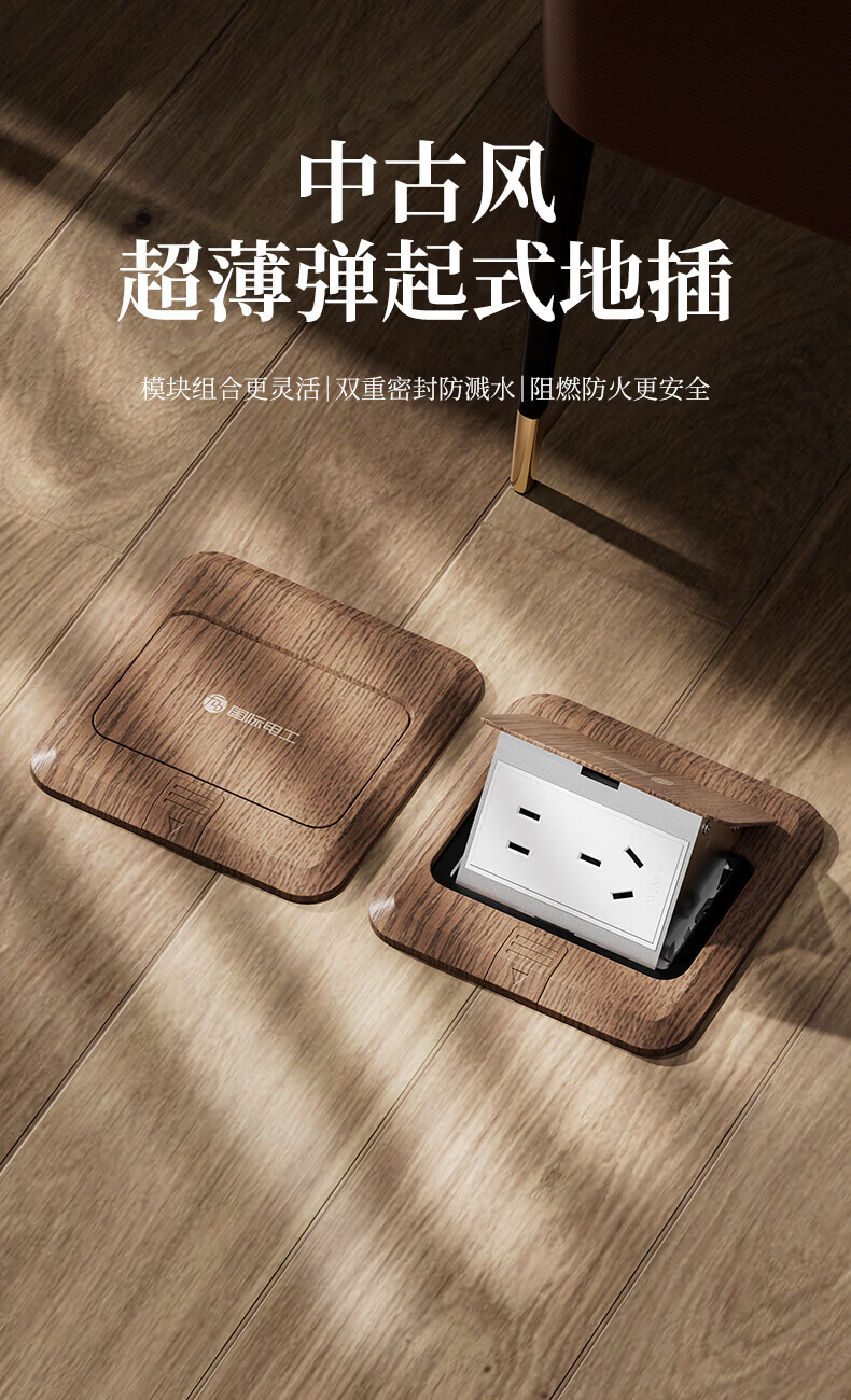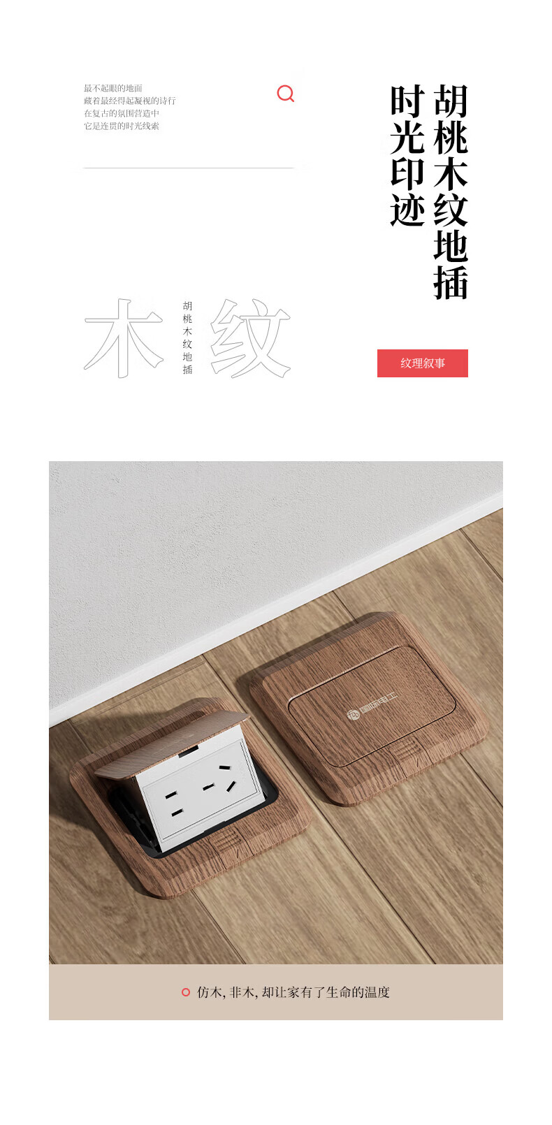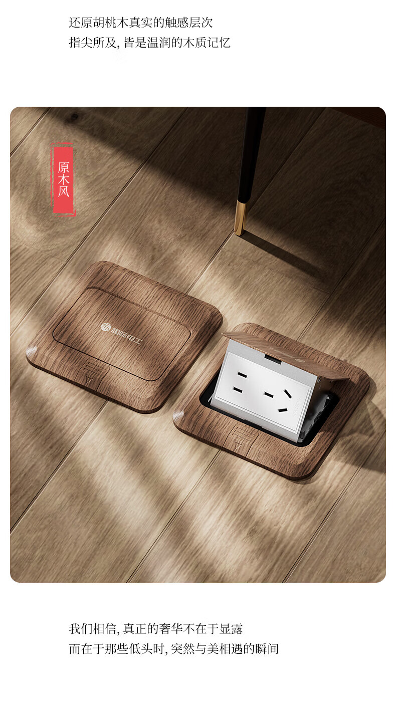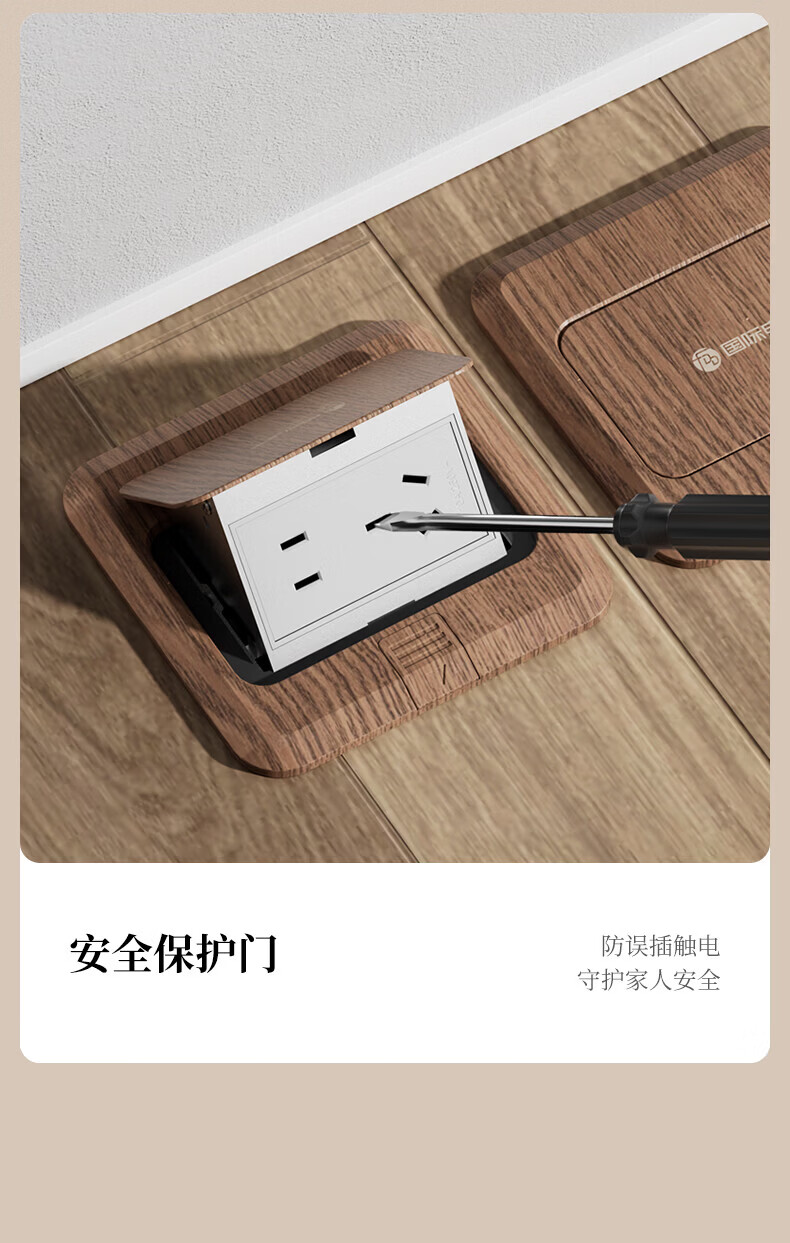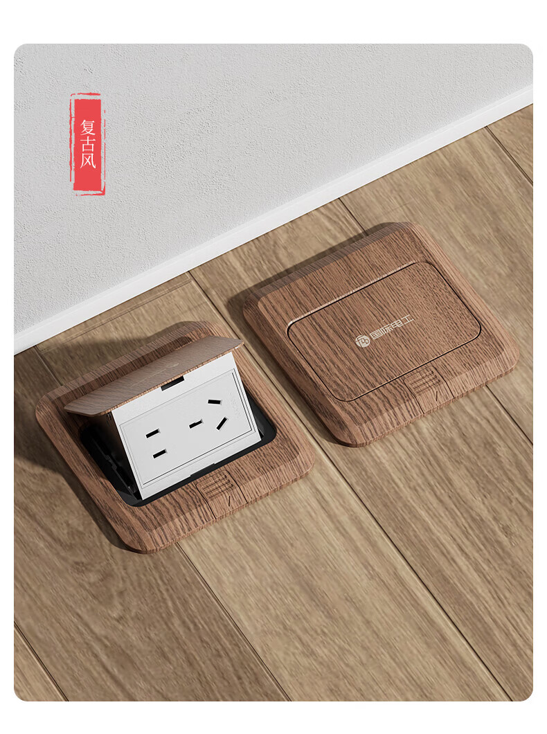 国际电工(FDD)120型中古风弹起式地插胡桃木纹不锈钢防水民宿复古地面暗盒插座 胡桃木-五孔插座