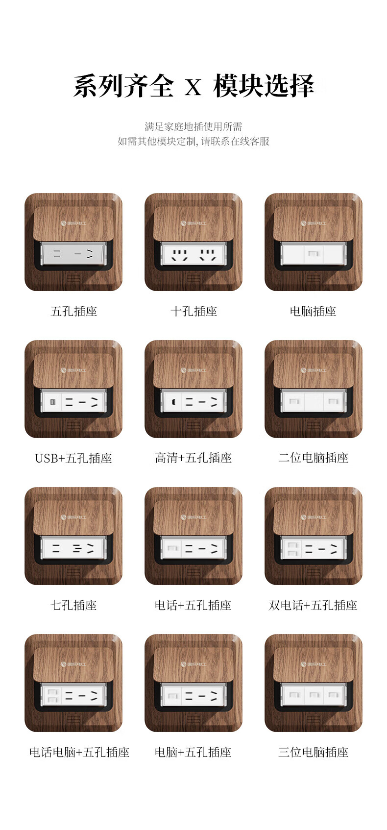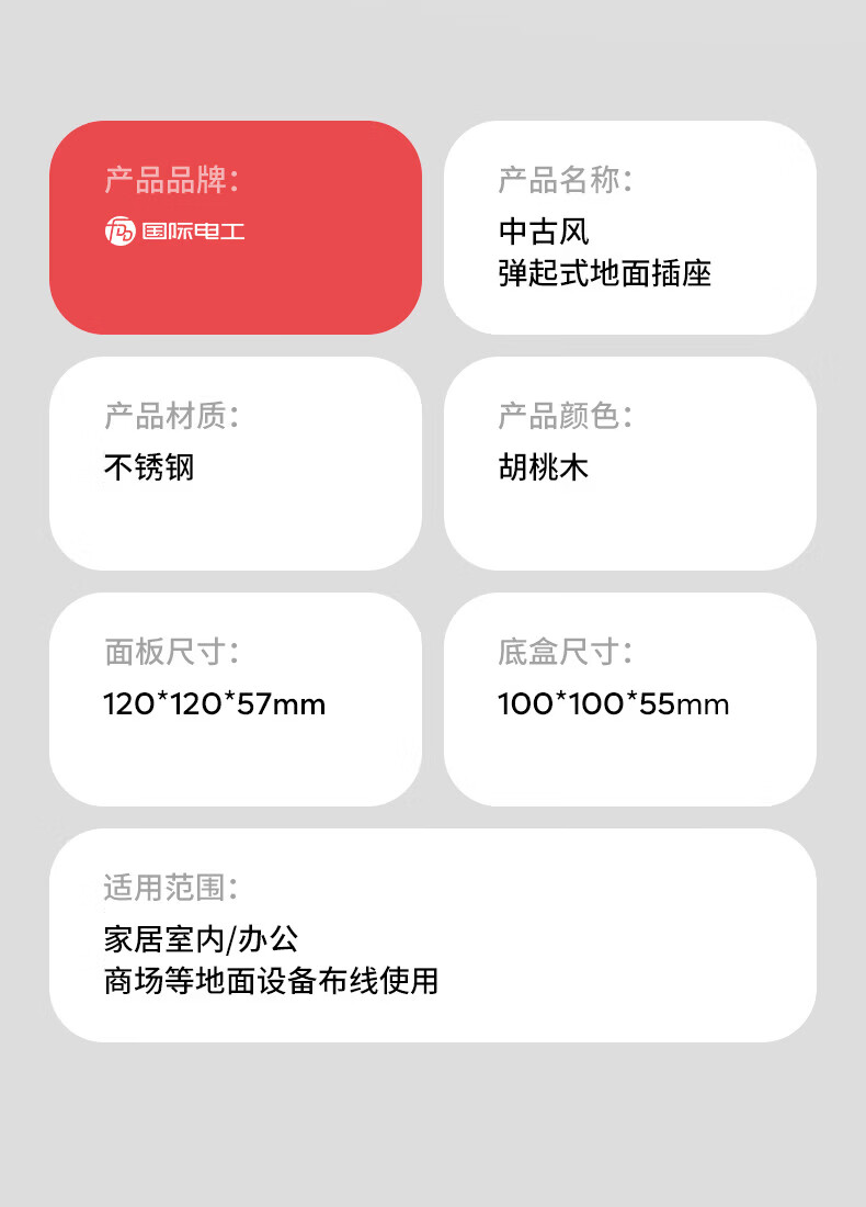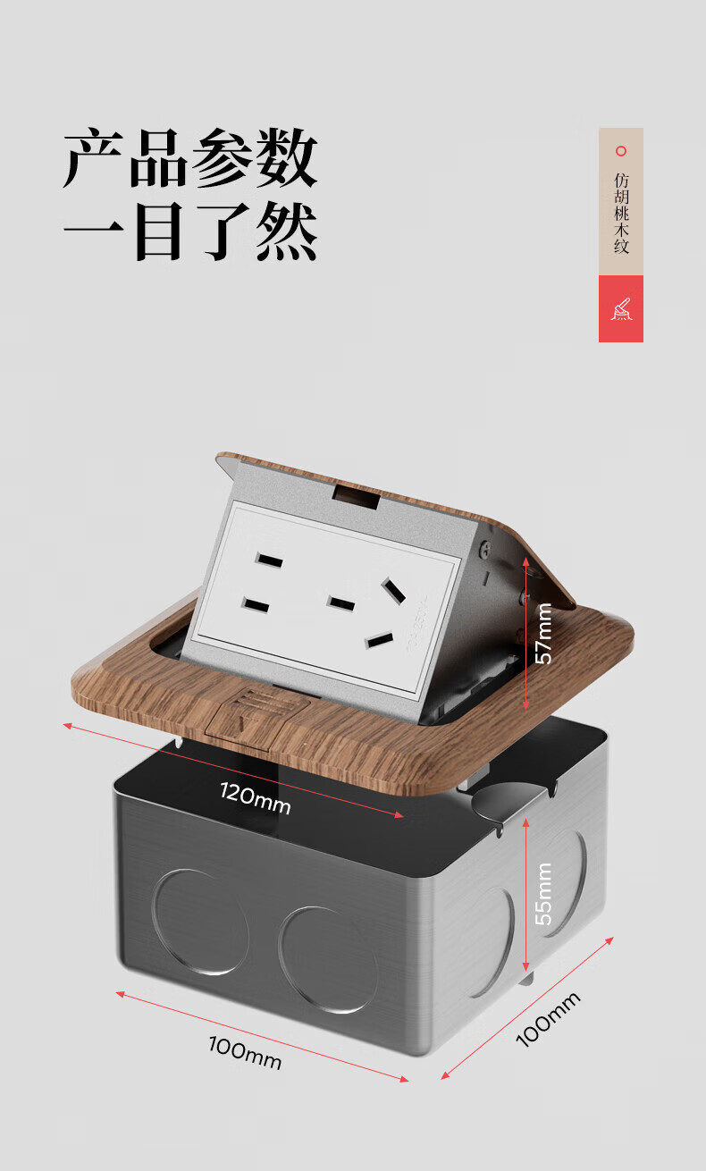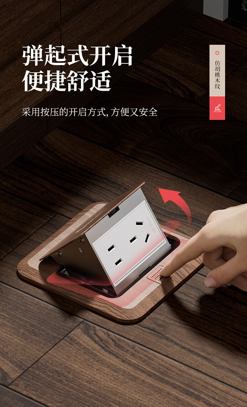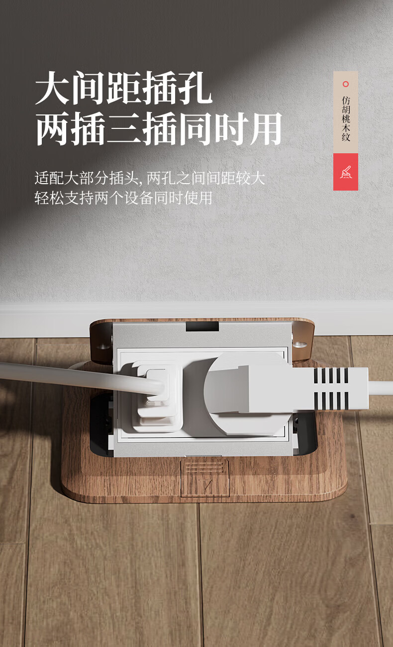 国际电工(FDD)120型中古风弹起式地插胡桃木纹不锈钢防水民宿复古地面暗盒插座 胡桃木-五孔插座