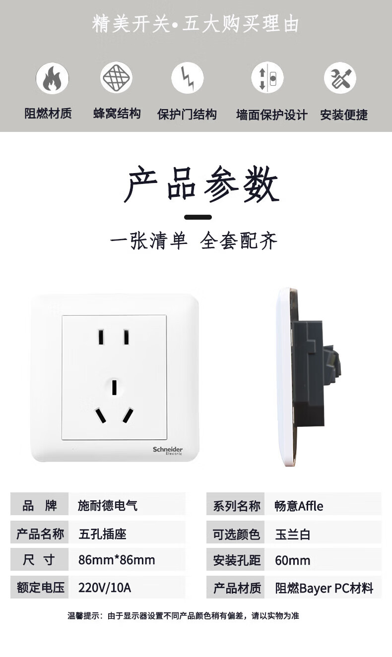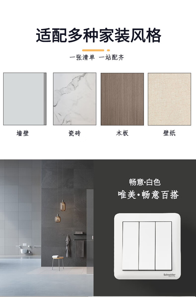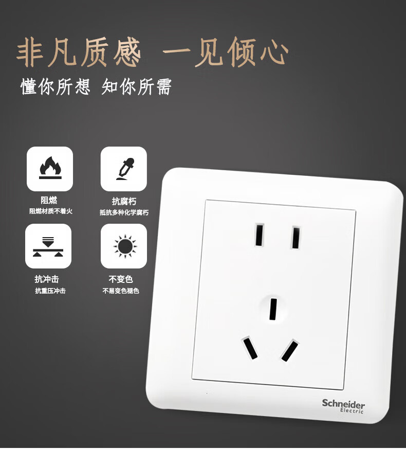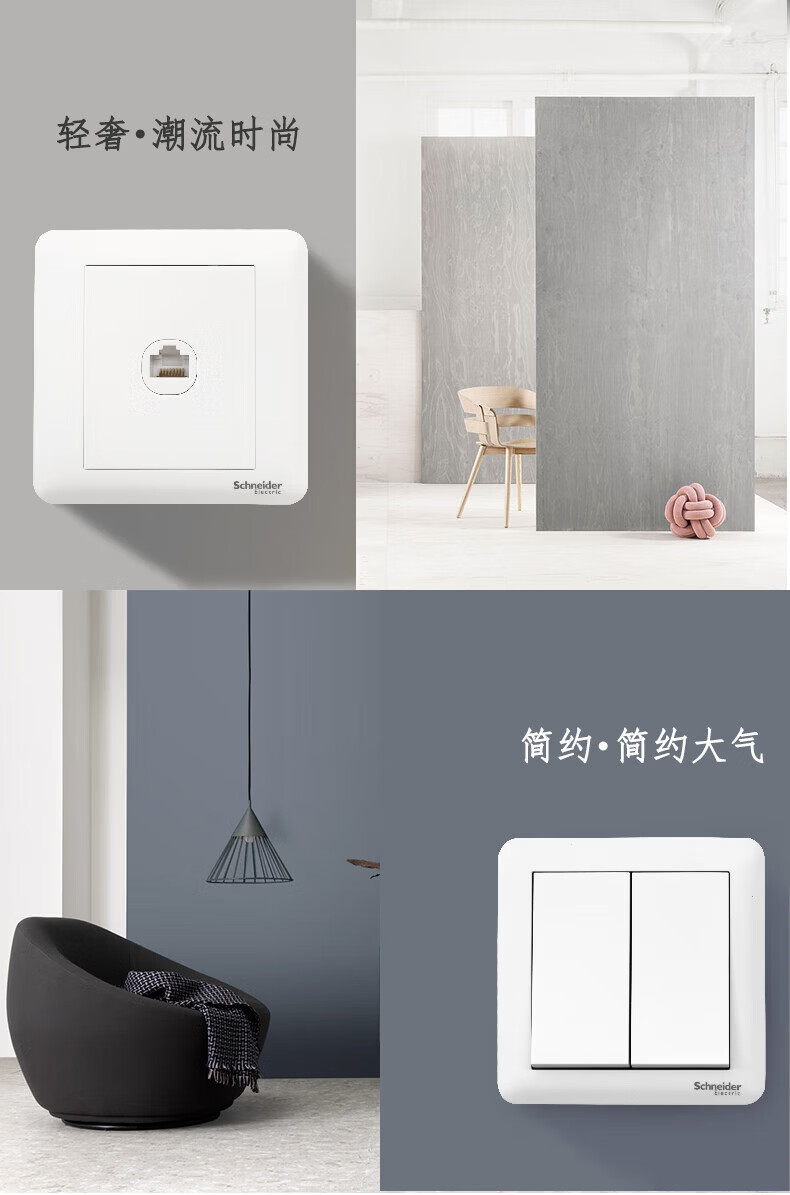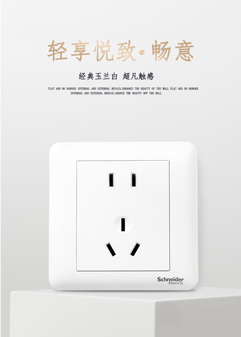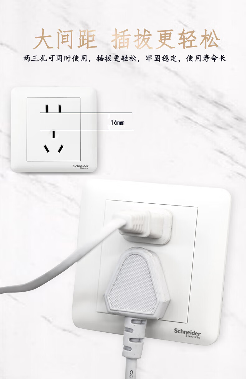 施耐德 开关插座面板 86型暗装家用墙壁插座 畅意系列白色 五孔单支