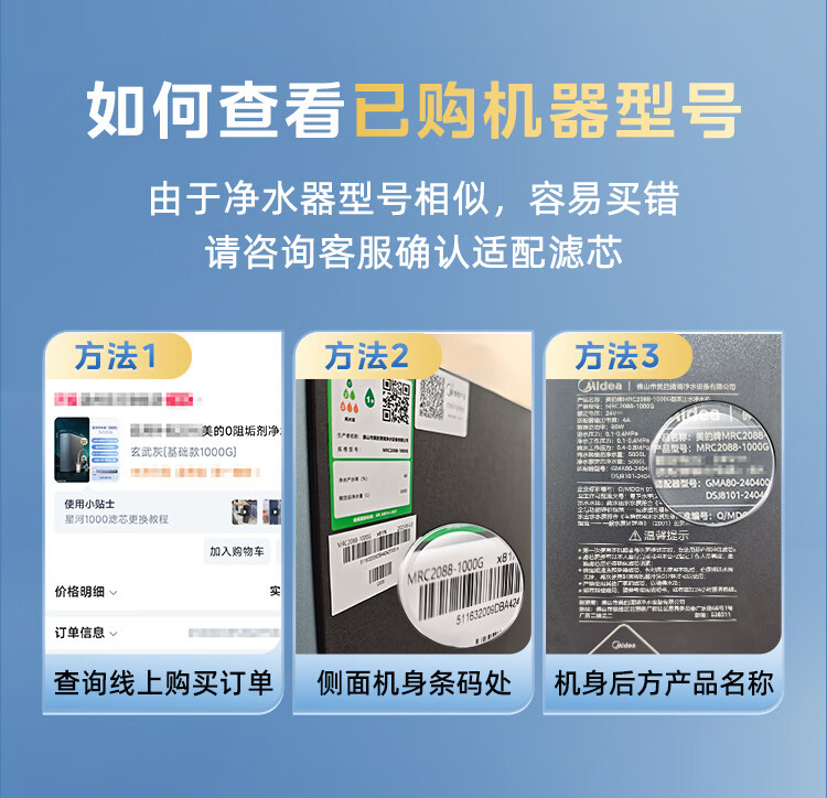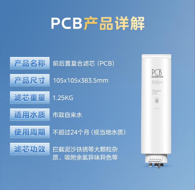 美的净水器0阻垢剂滤芯适用白泽800-1200G/pro、星河/极光/华凌1000/1200G、比佛利G7/G10-2年PCB
