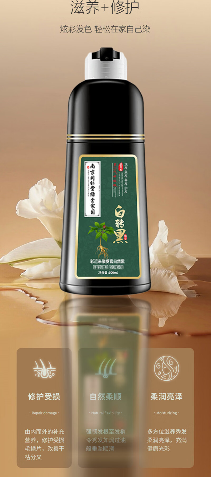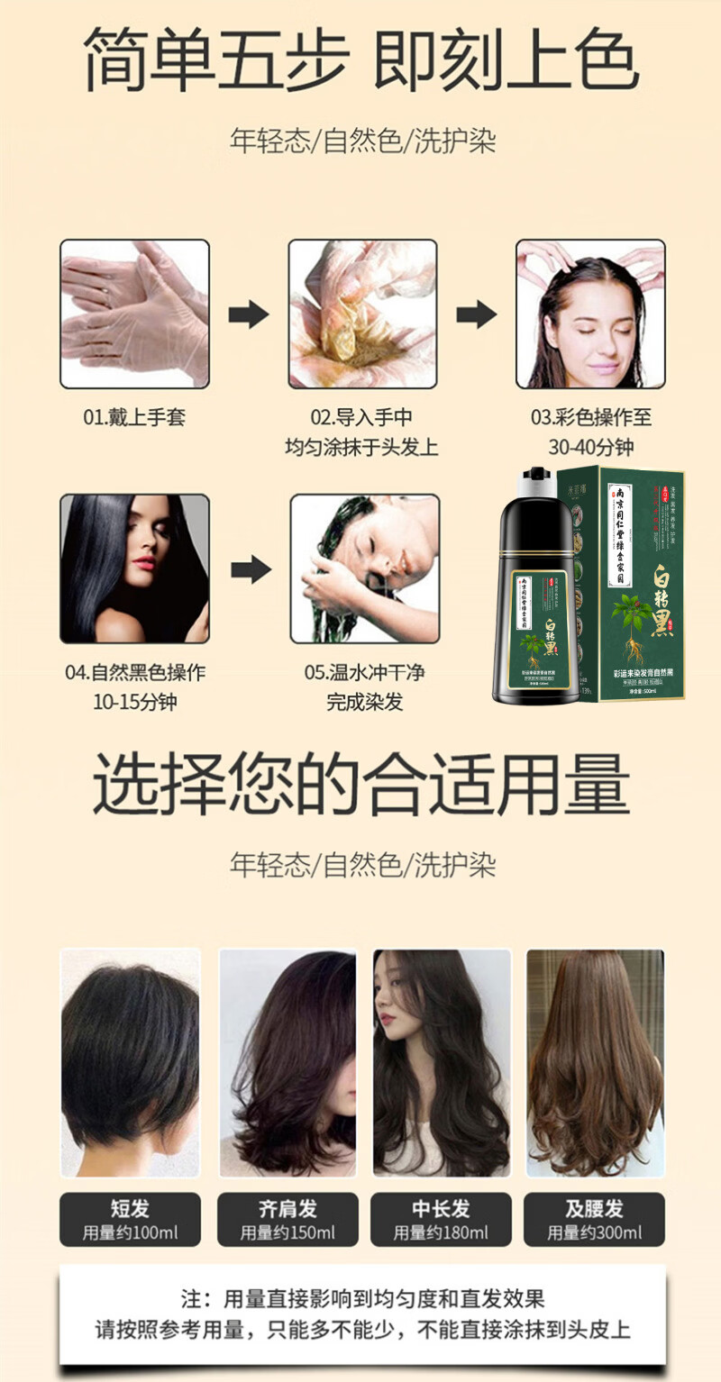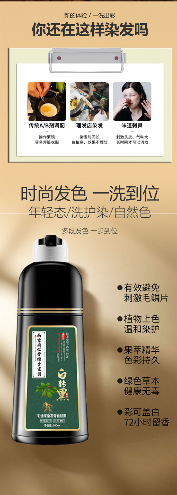 同仁正品植物染发剂纯天然自己染膏孕妇可用不刺激洗头轻松盖白发 巧克力色1瓶500ml(植物盖白 不沾头皮) 500ml