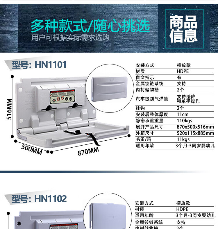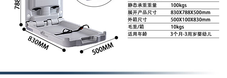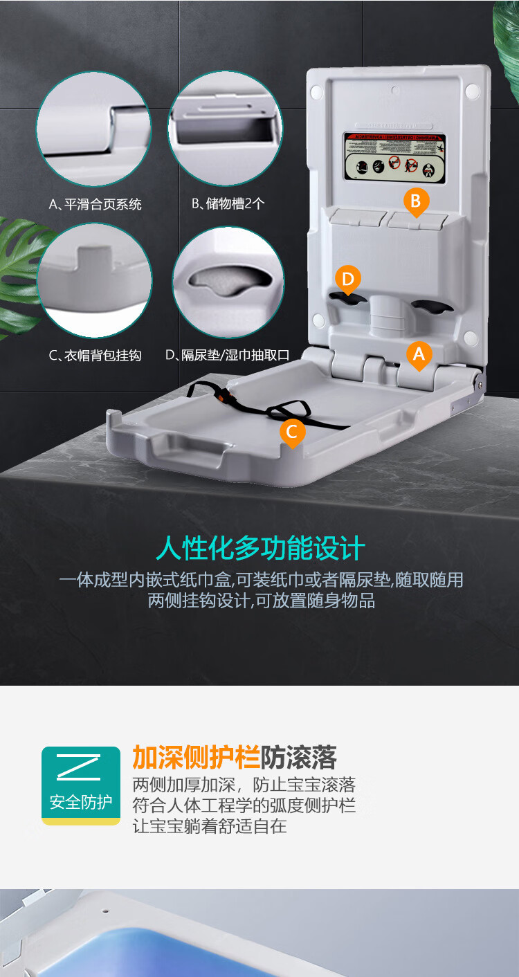 家文化(JIAWENHUA)母婴室婴儿护理台公共第三卫生间宝宝多功能可折叠壁挂式换尿布床 1103婴儿护理台灰白(竖款)
