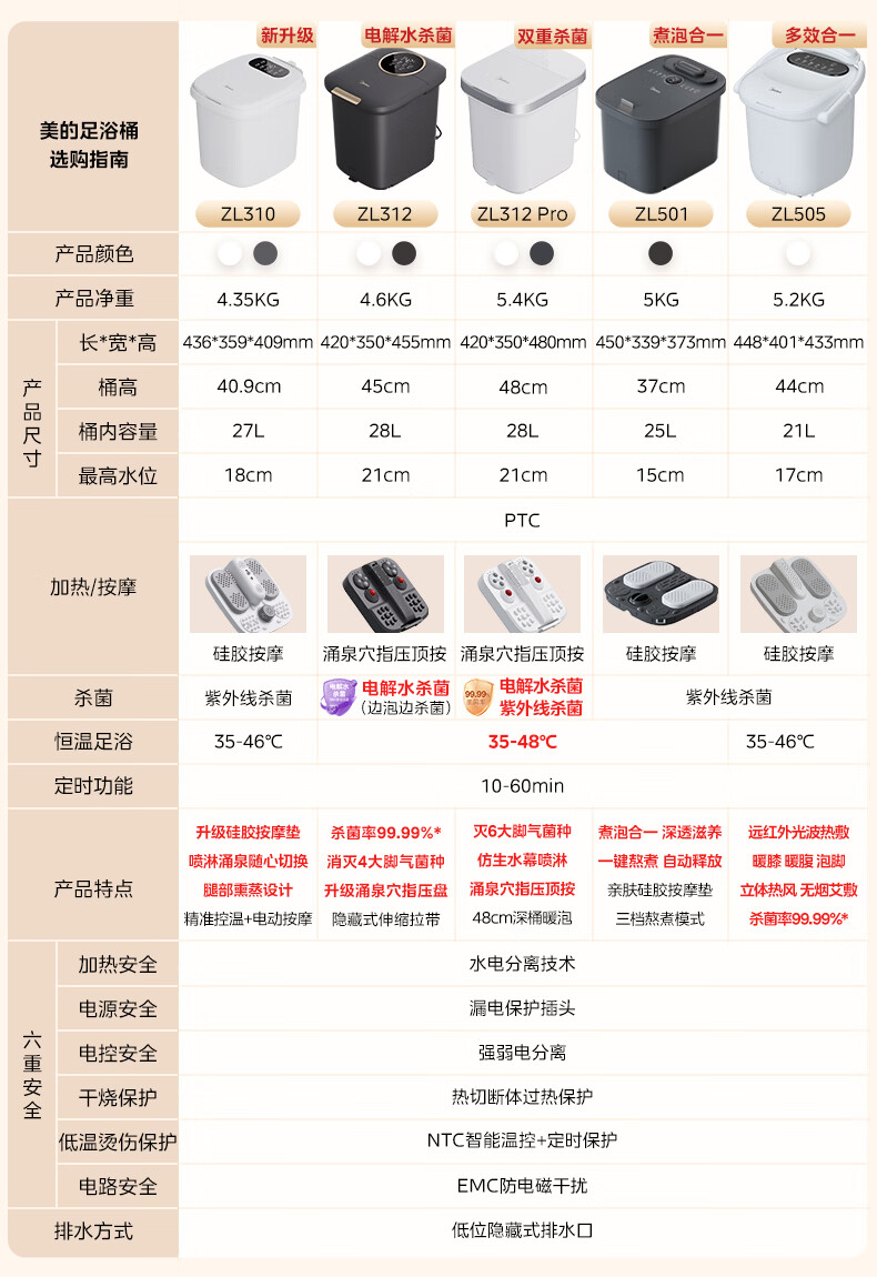 美的(Midea)泡脚桶杀菌足浴盆加热暖脚自动按摩保暖洗脚盆熏蒸暖泡喷淋年货生日礼物送男女友长辈 ZL310温泉桶