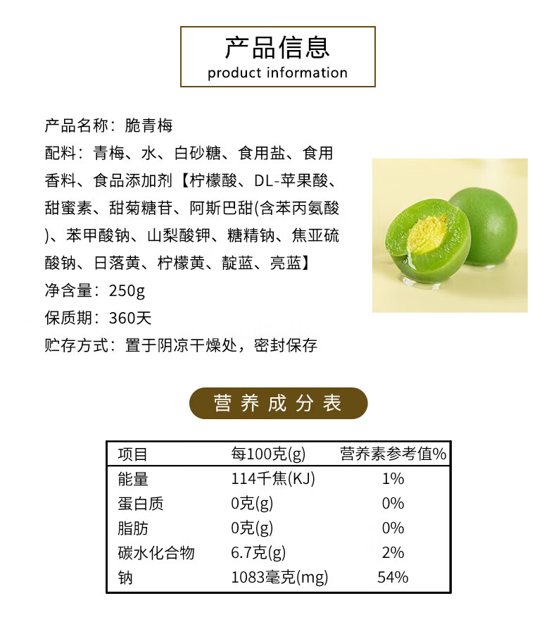 御坚果脆青梅250g清脆爽口梅子腌制青口梅散装新鲜青脆梅青梅果孕妇零食 【酸酸甜甜】脆青梅1斤(250gX2袋)约30颗