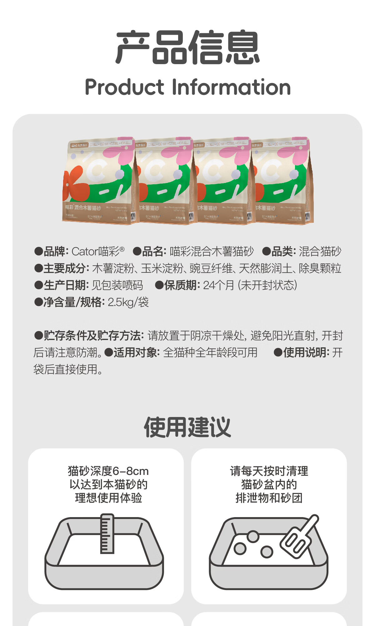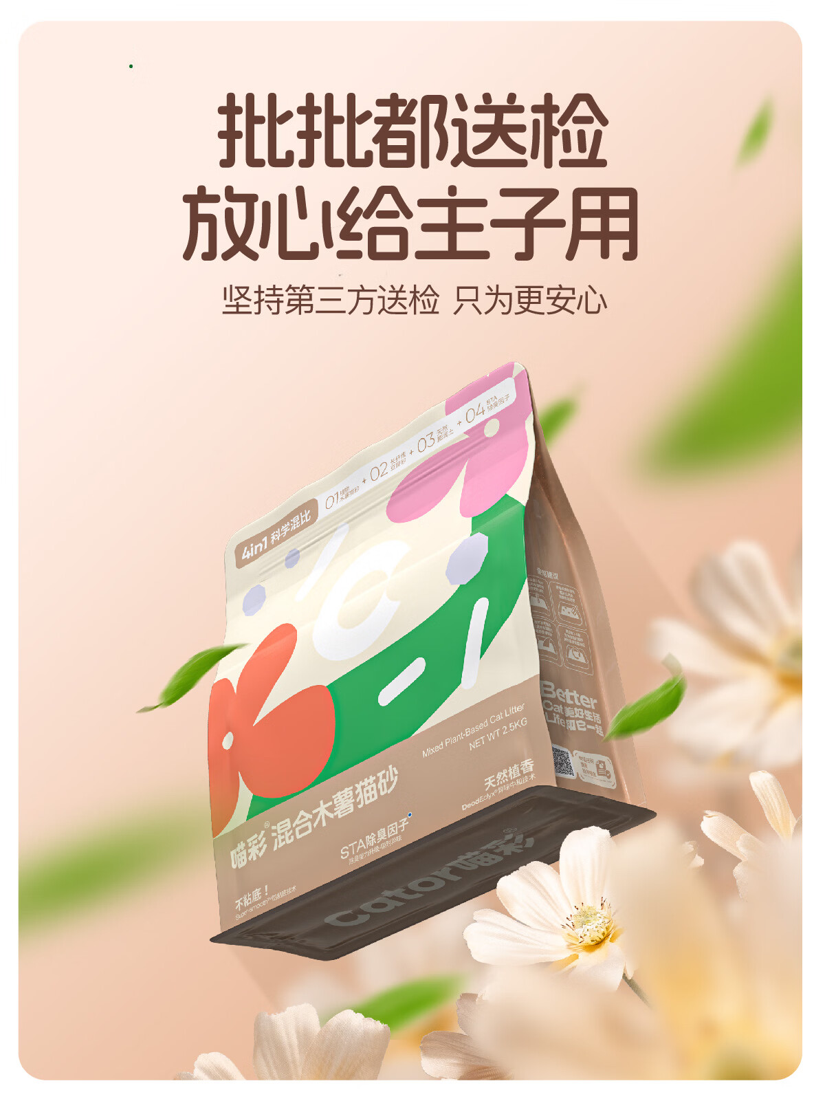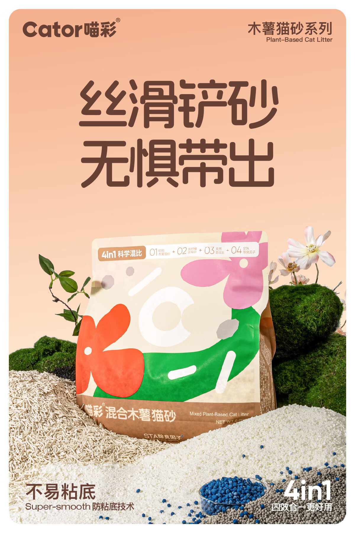 喵彩植物木薯豆腐砂混合猫砂膨润土不易粘底低粉尘 4包【20斤】囤货更优惠