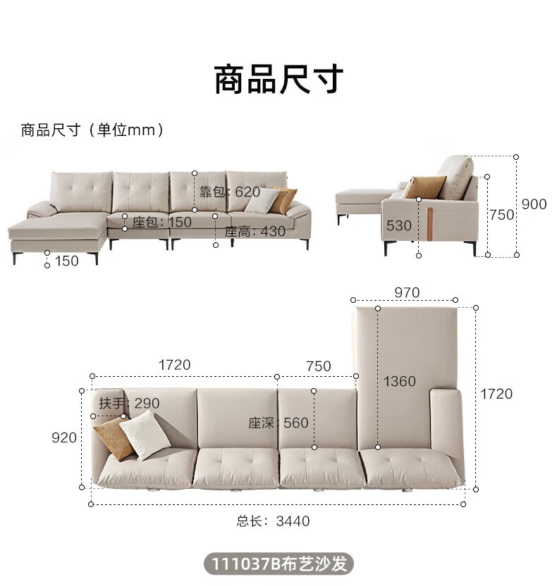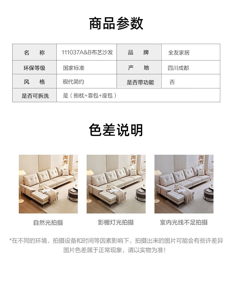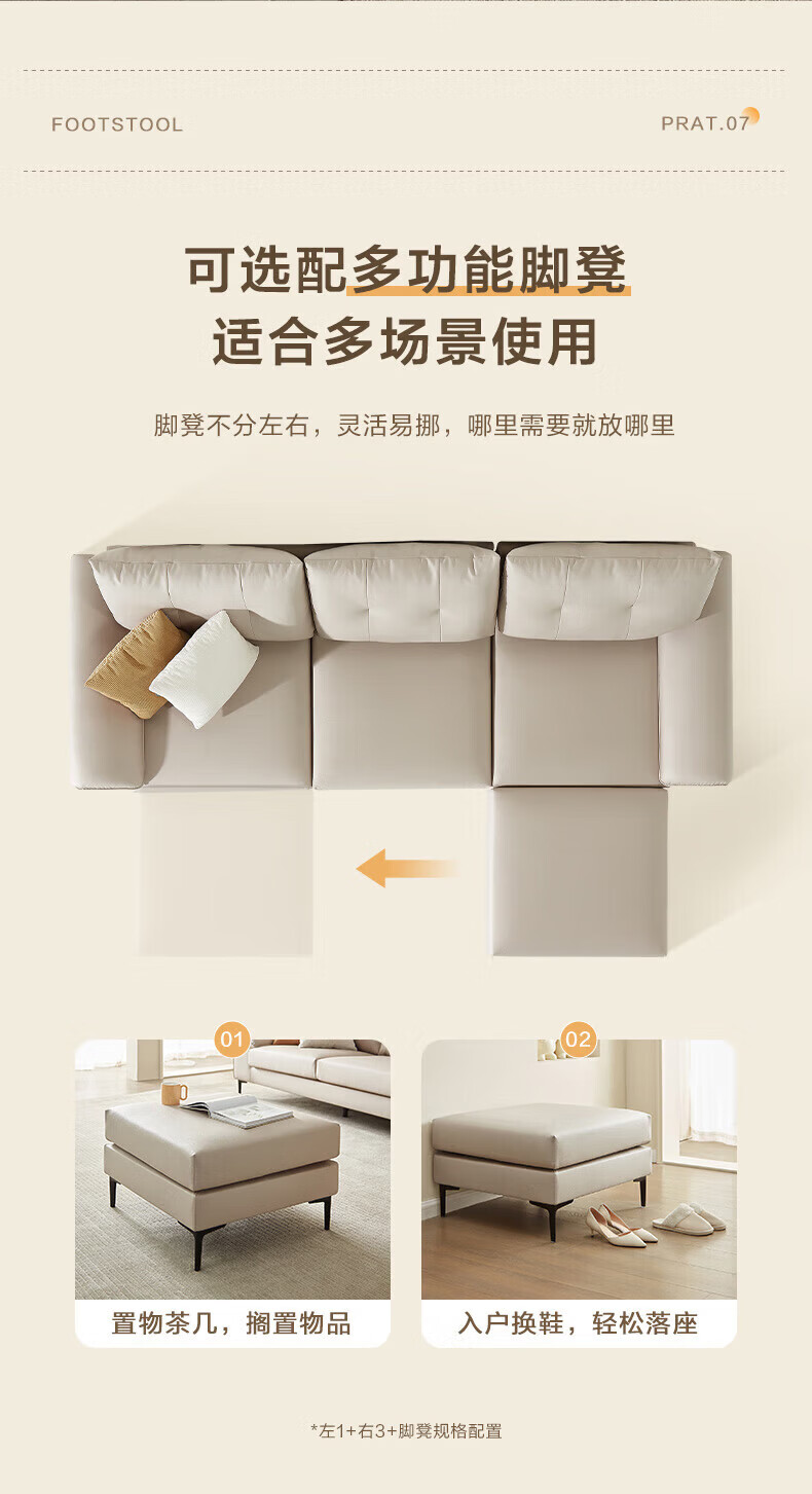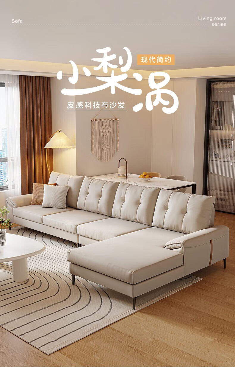全友(QUANU)【迷瞪清仓货盘】三人一字布艺沙发客厅家用小户型科技布脚踏沙发 科技布|奶油系左1+右3布沙发