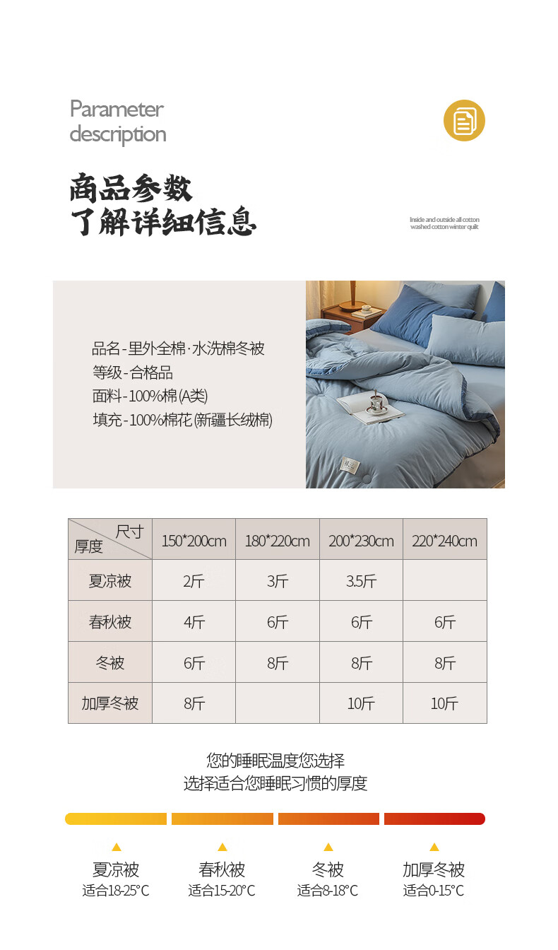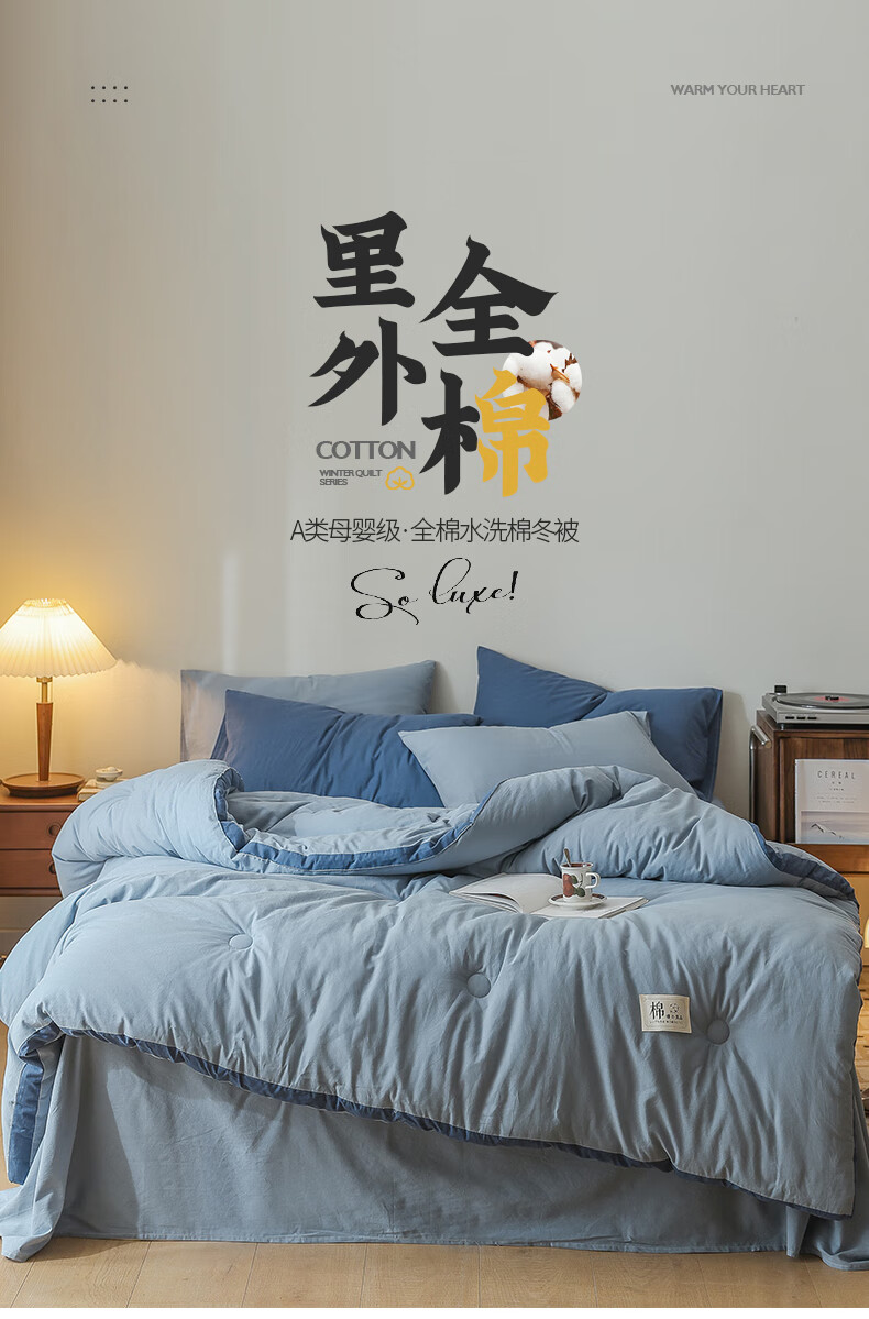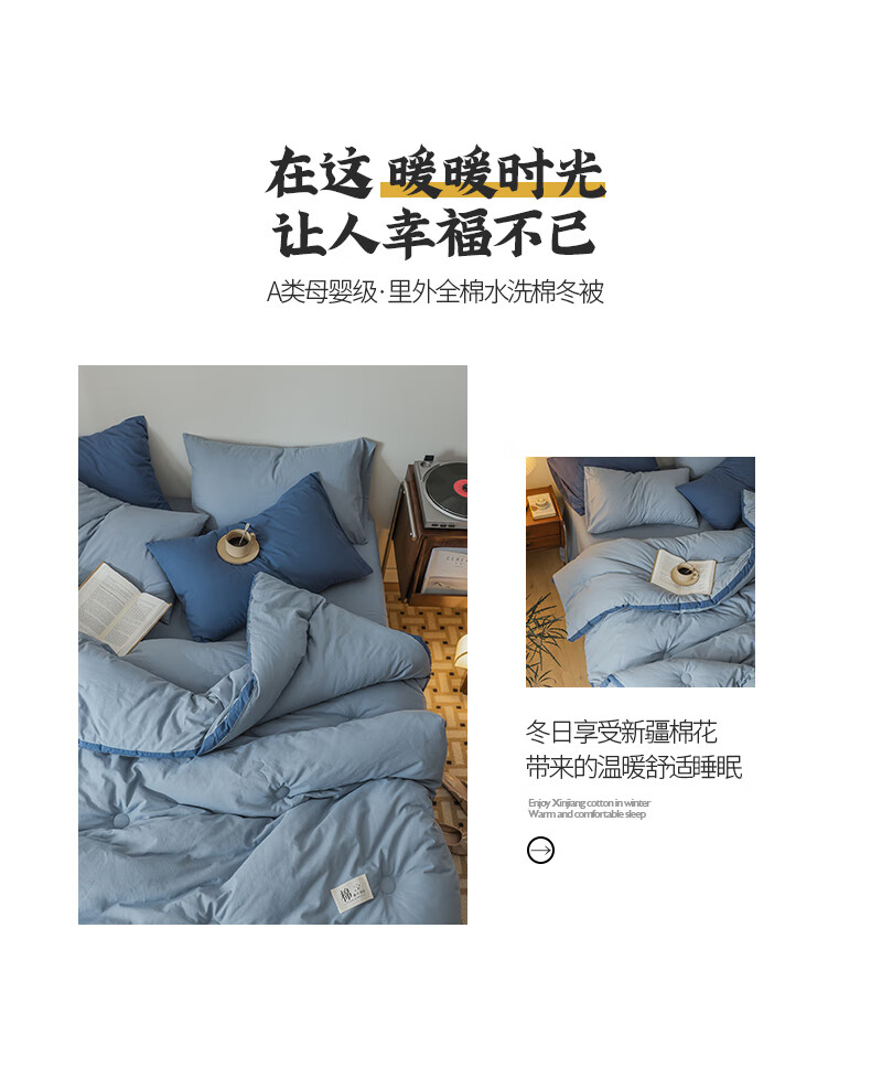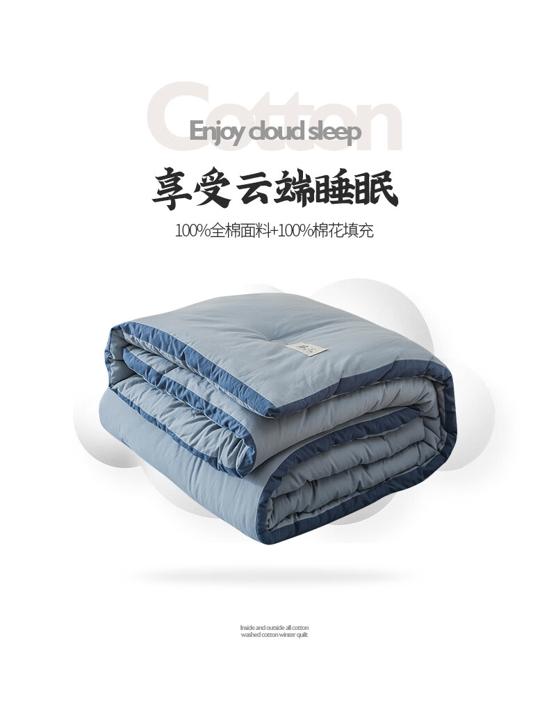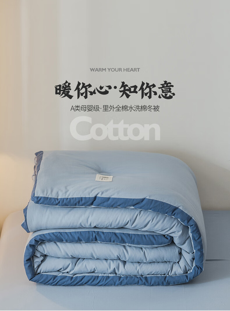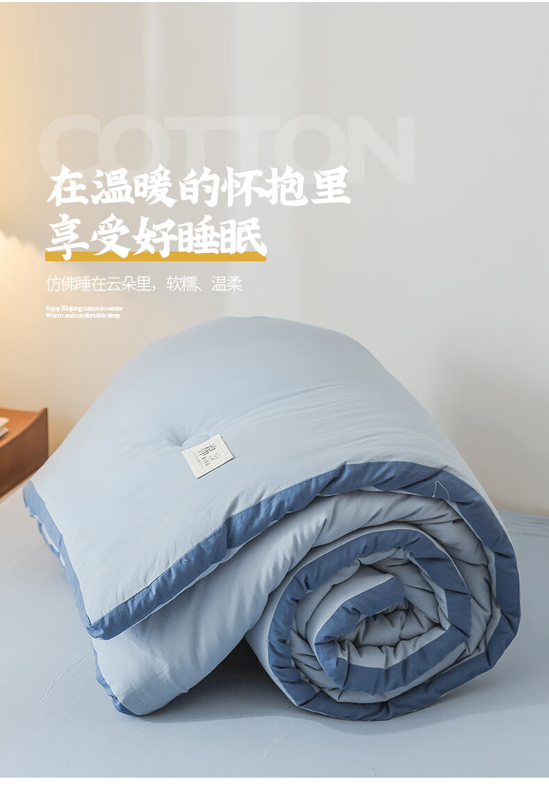 无印良品A类100%新疆棉花被子冬季里外全棉春秋被芯宿舍棉絮冬被褥纯棉被 轻奢兰【A类里外全棉】 150x200cm春秋被【重量约4斤】