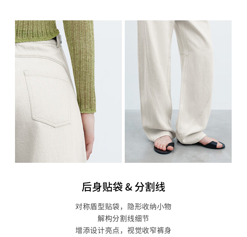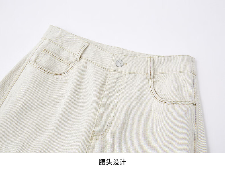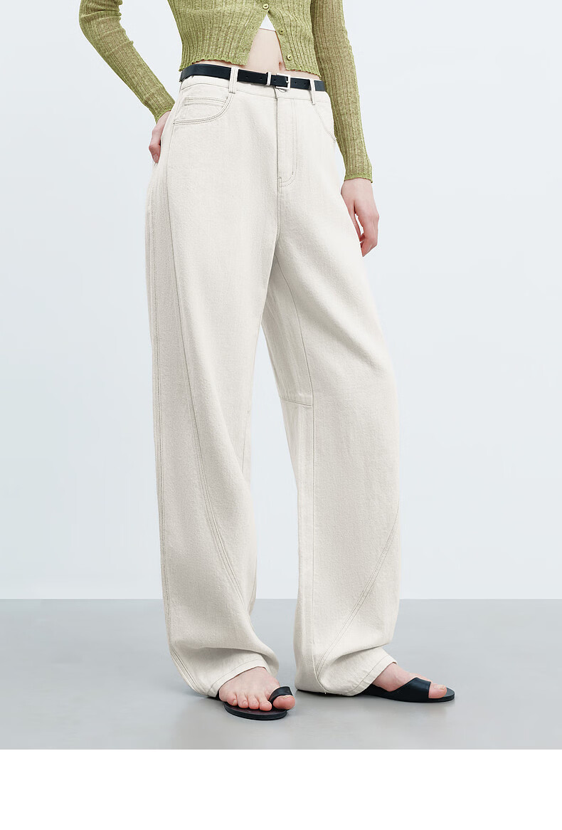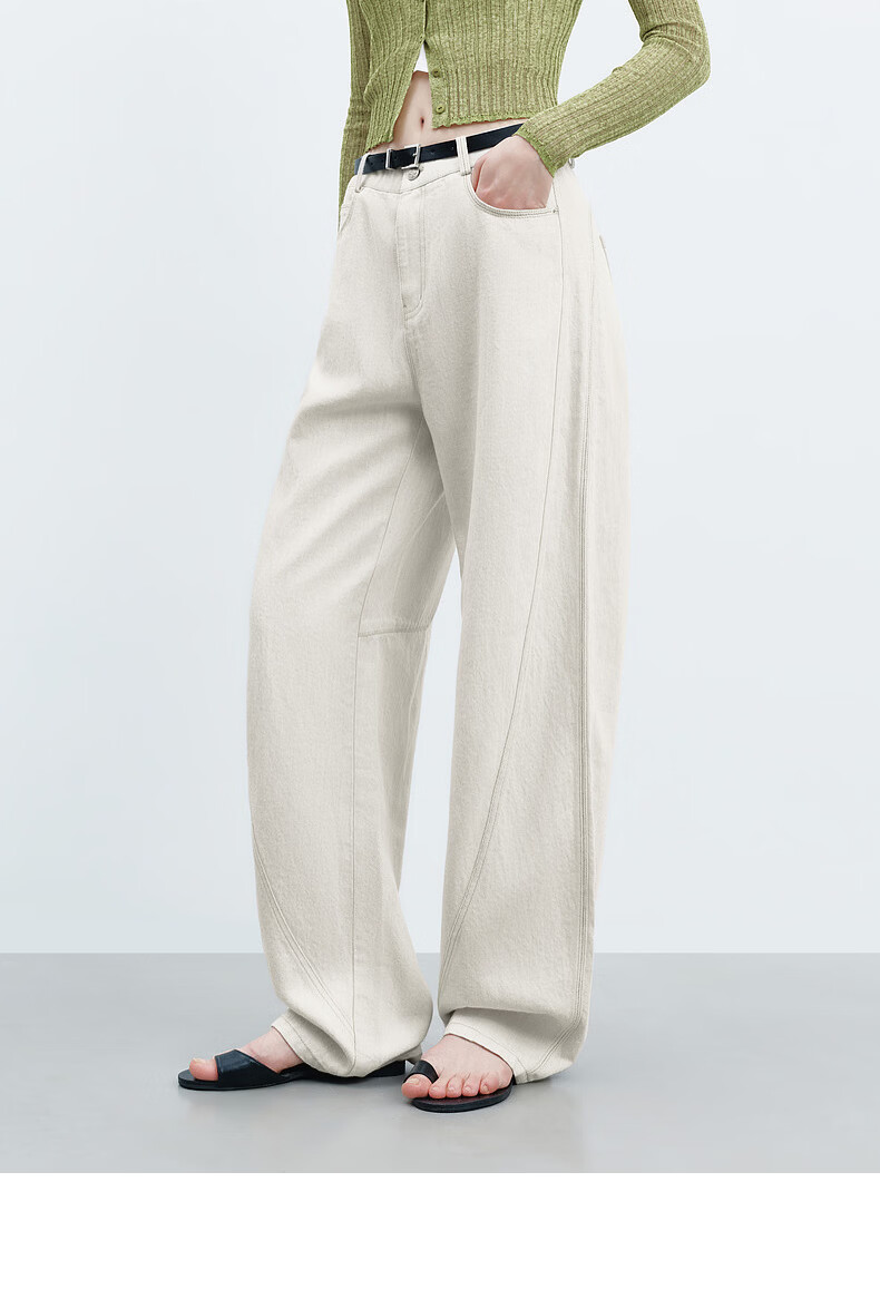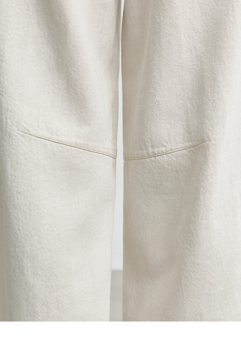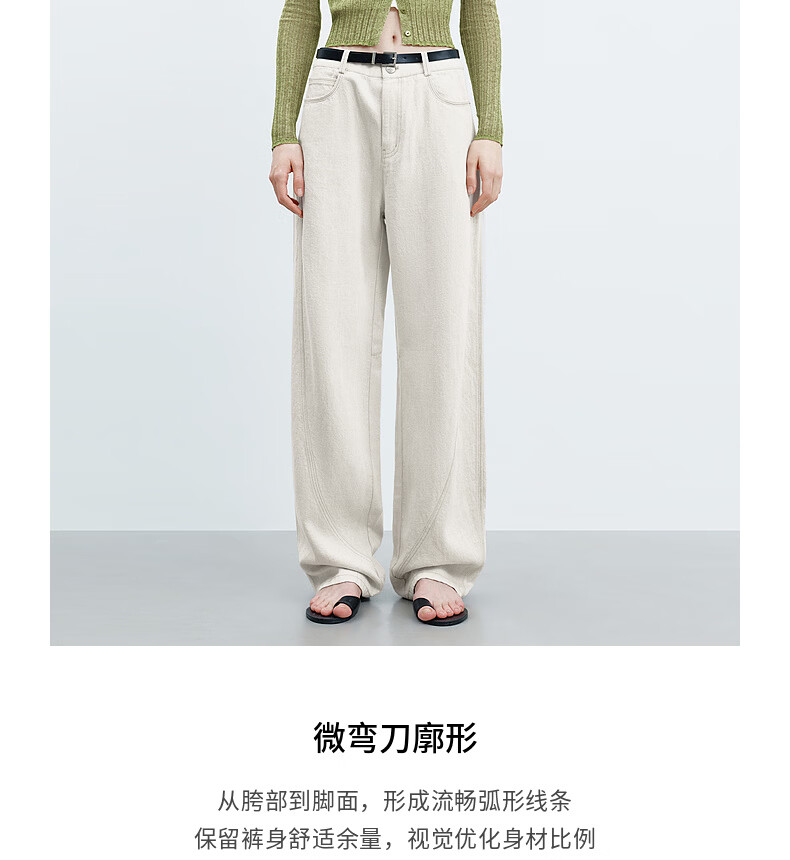 H's【莱赛尔】米白色牛仔裤女26年春季新款高级感含亚麻廓形弯刀裤 米白色 M