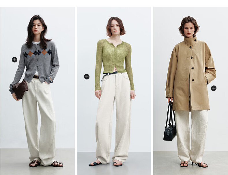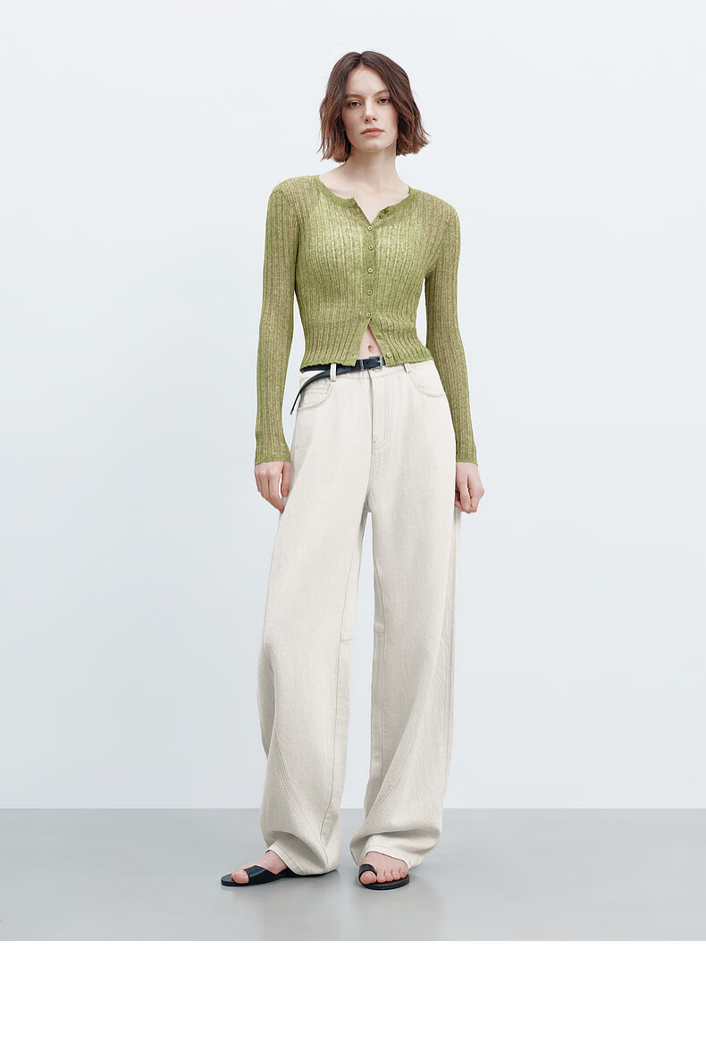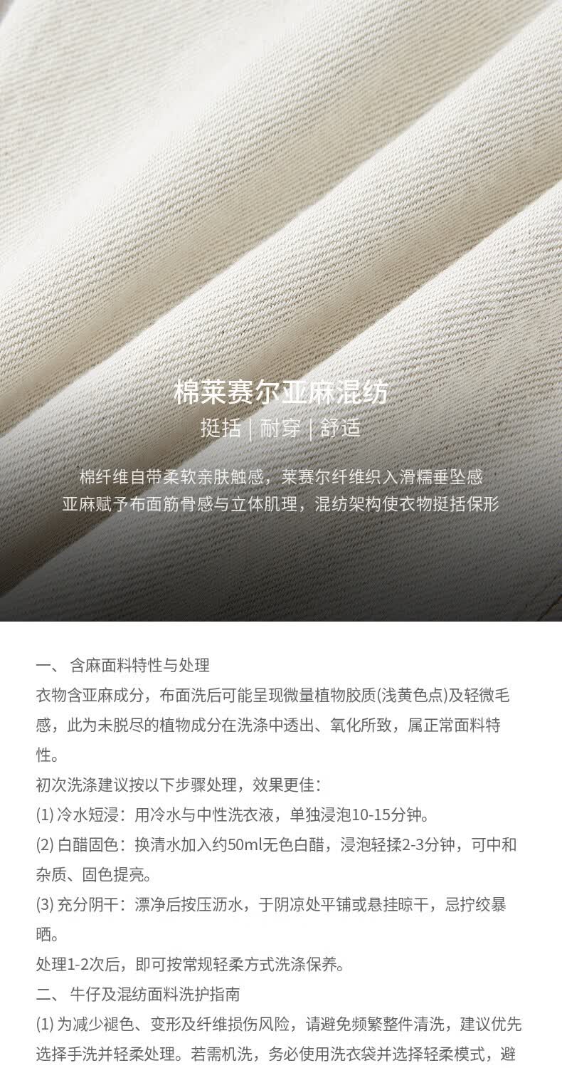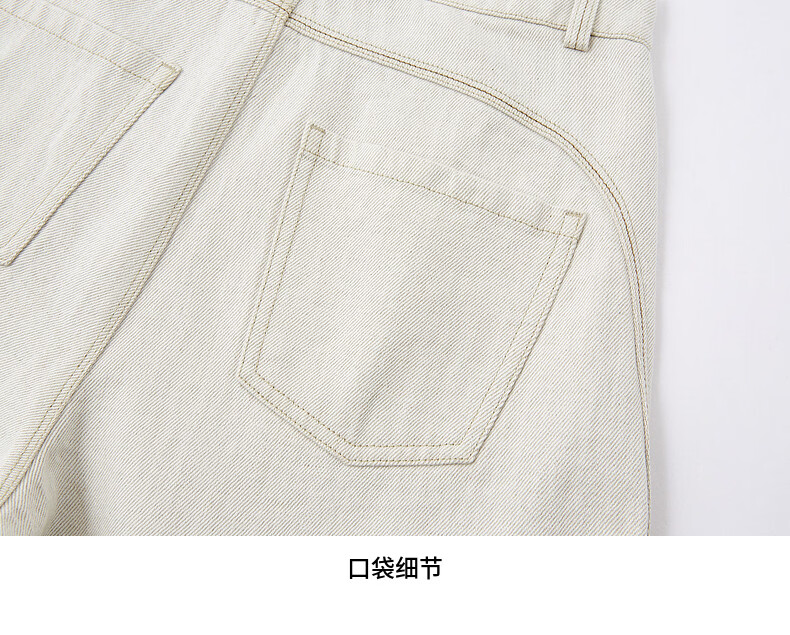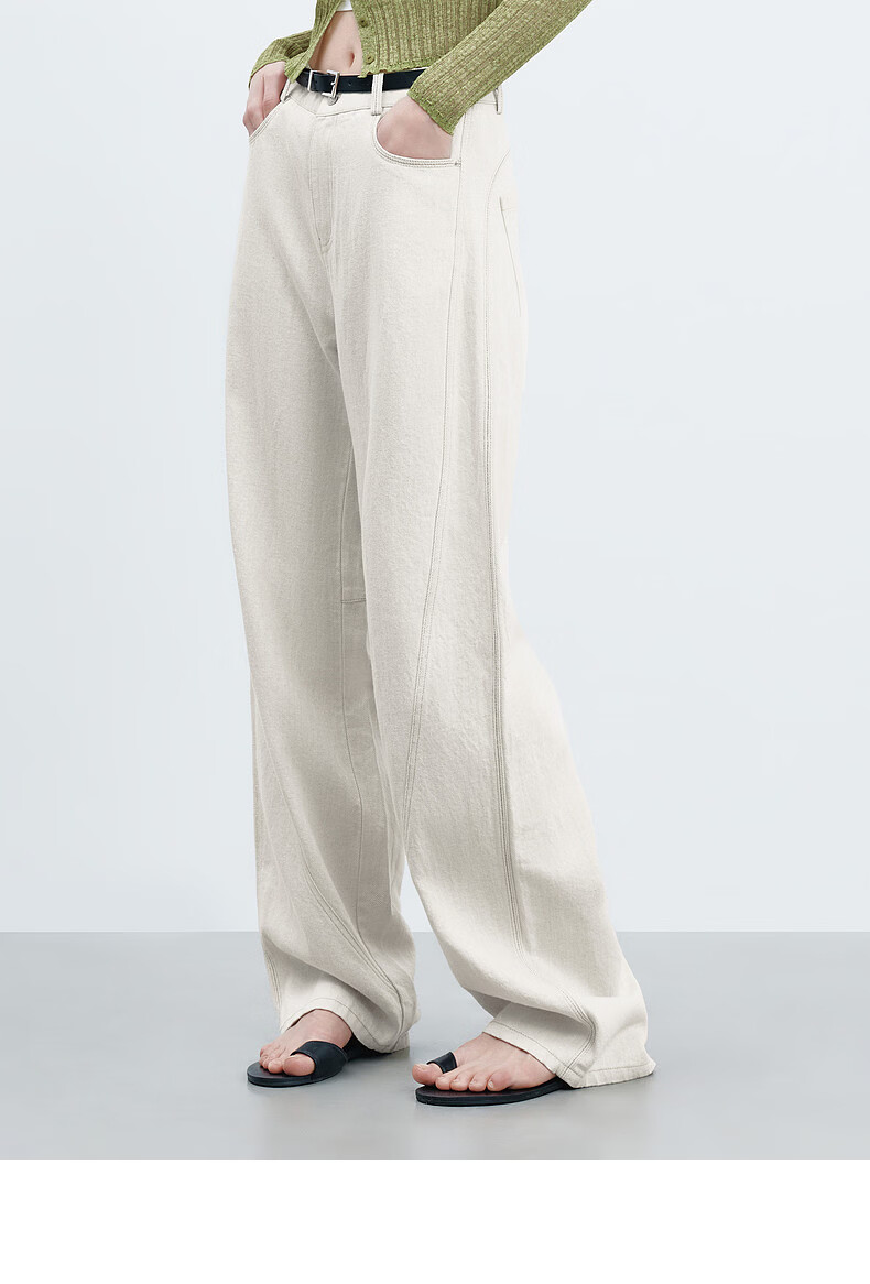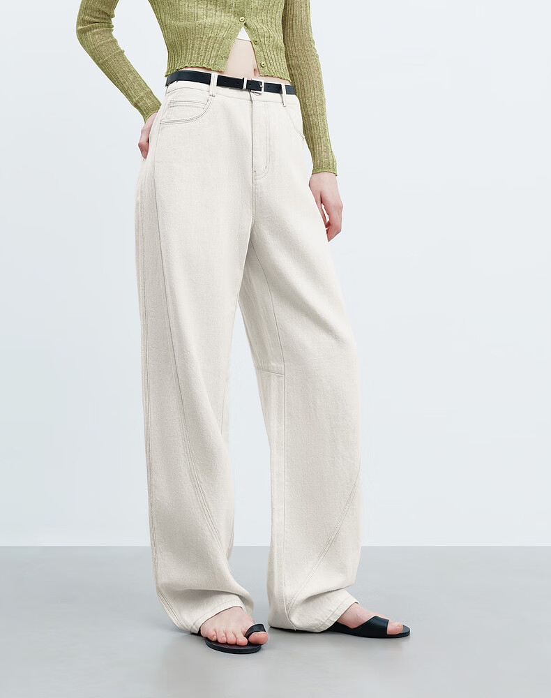 H's【莱赛尔】米白色牛仔裤女26年春季新款高级感含亚麻廓形弯刀裤 米白色 M