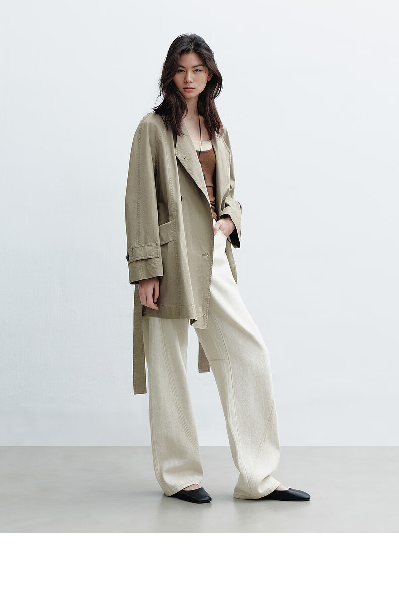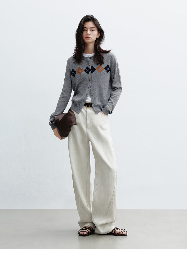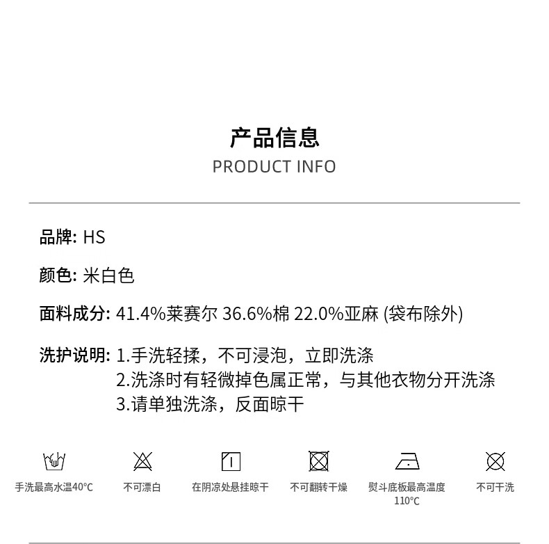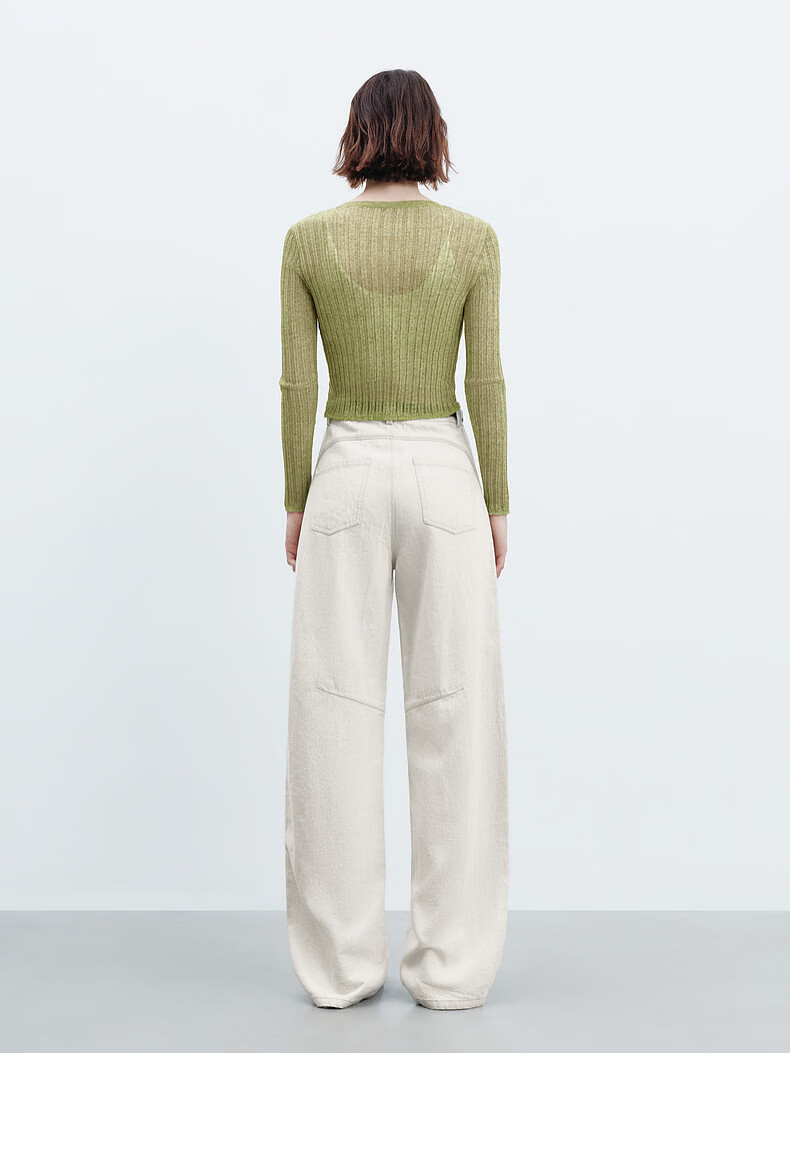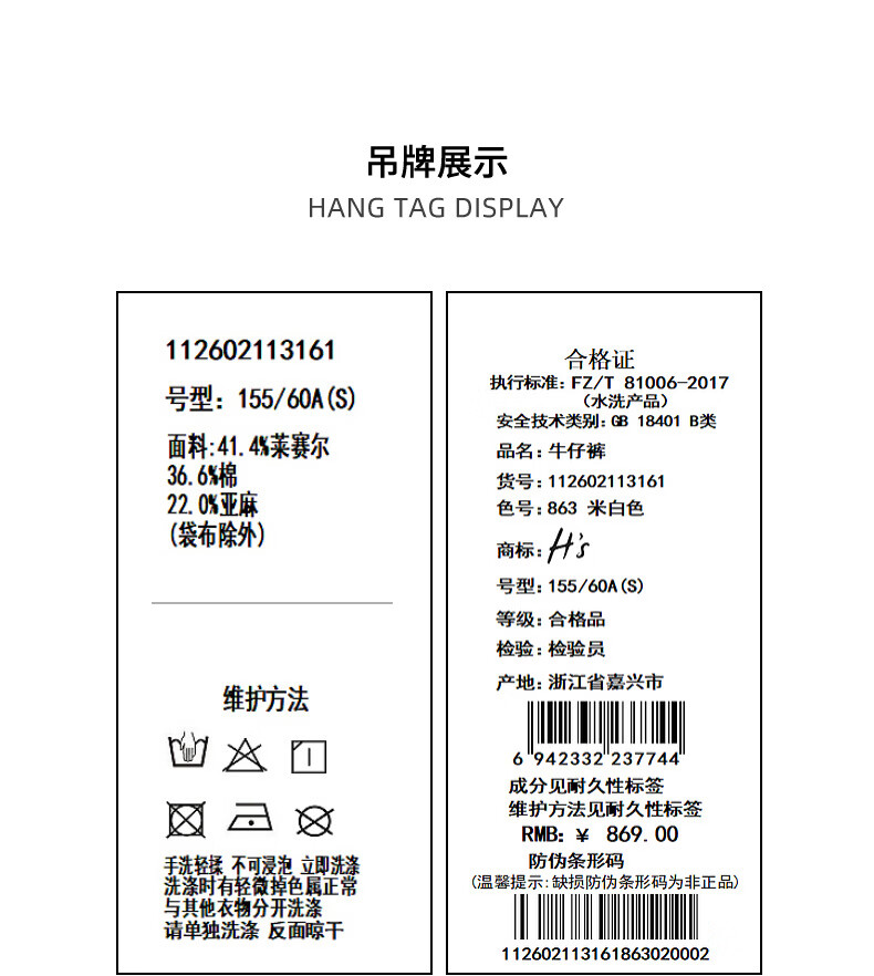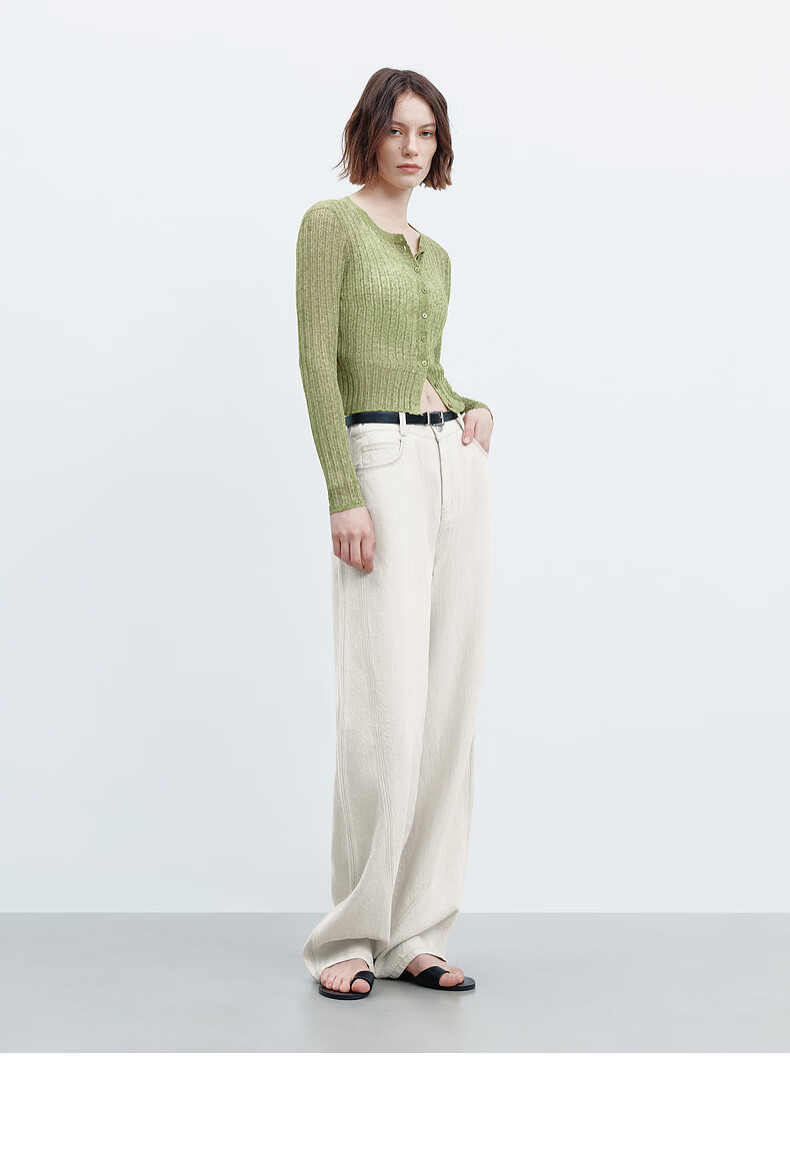 H's【莱赛尔】米白色牛仔裤女26年春季新款高级感含亚麻廓形弯刀裤 米白色 M