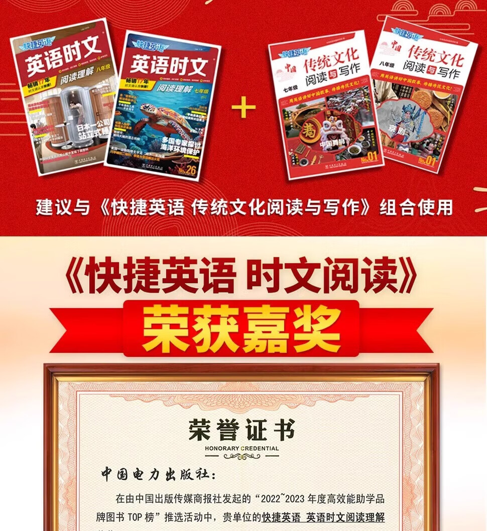 【全新30期】快捷英语时文阅读七八九年级中考小升初高一高二高考30期29期28期上册下册 初中英语传统文化阅读与写作七八九年级中考小升初 中考+高考考前预测 初一二三中考高考热点题型中国电力出版社 【