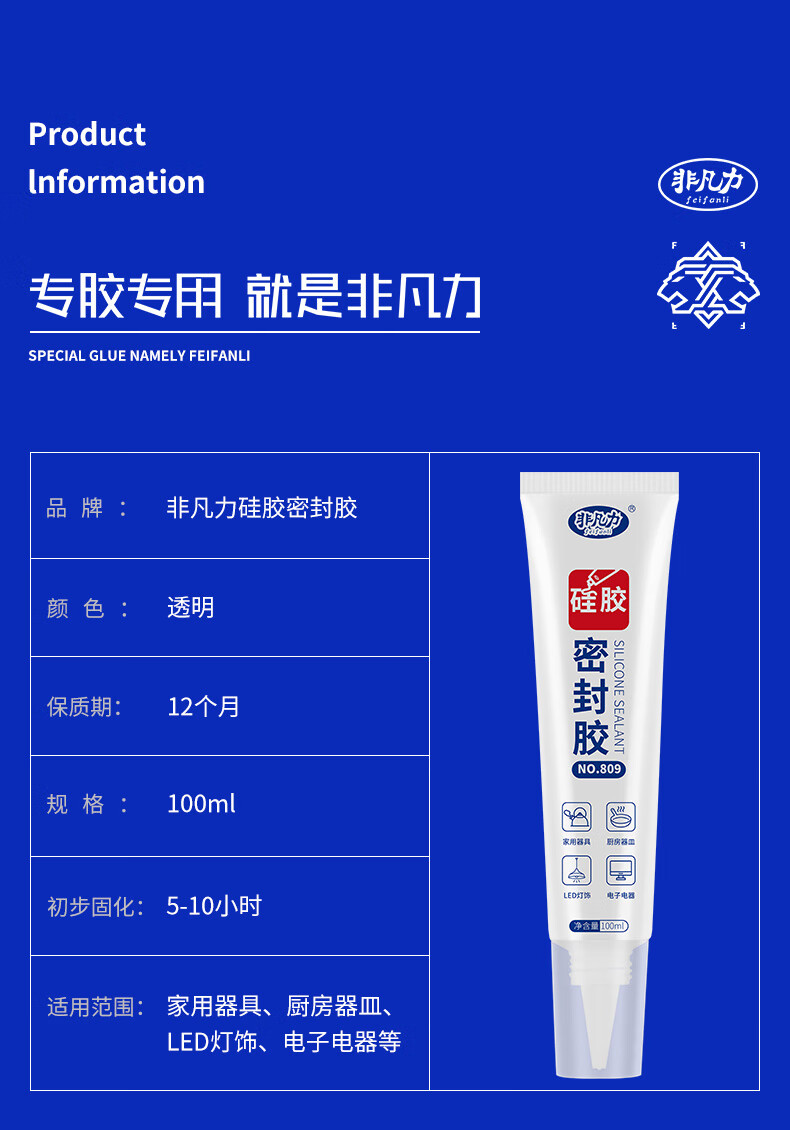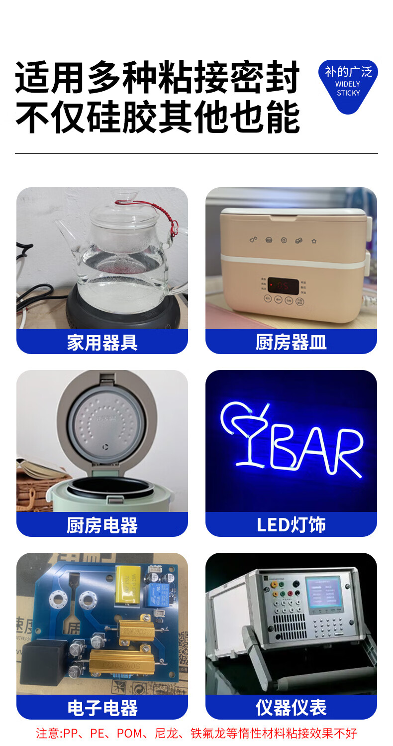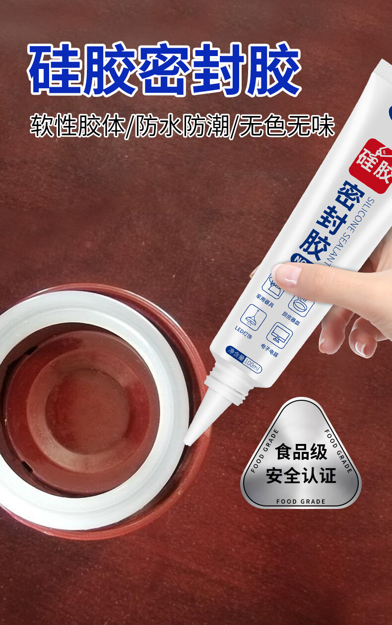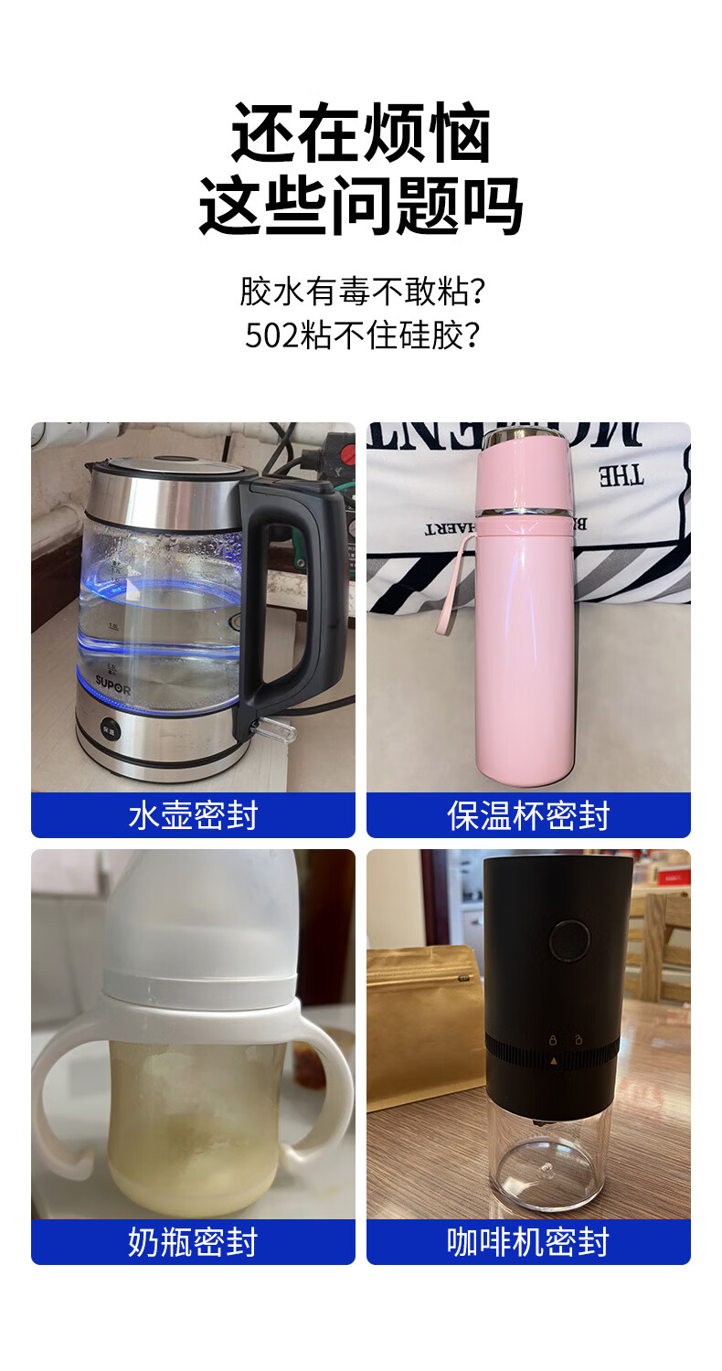 非凡力 硅胶胶水透明粘合剂胶粘洗衣机水壶食用快干防水耐高温密封胶 硅胶50ml(小包装)