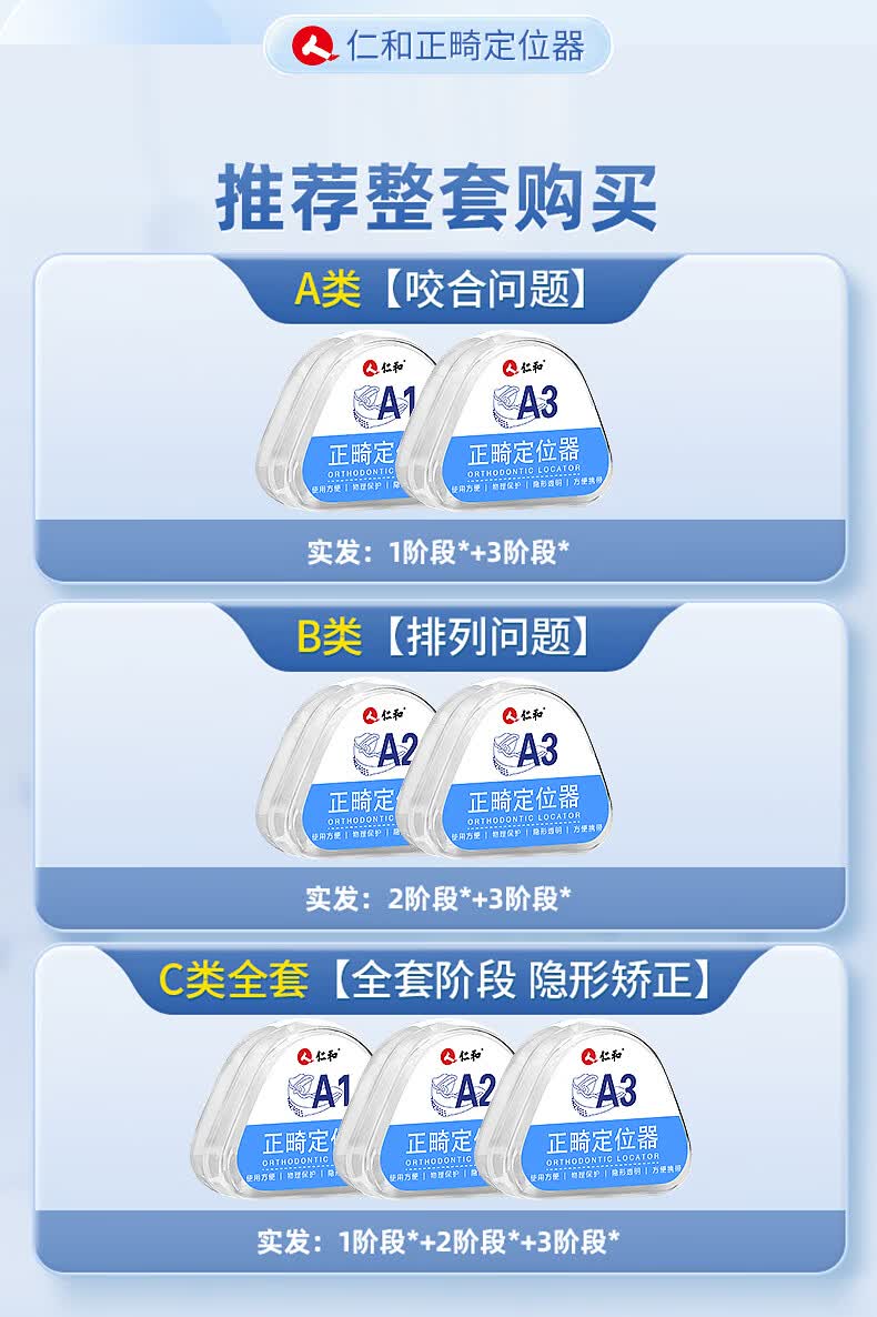 仁和【医用级】牙齿矫正器成人青少年隐形牙套正畸定位器牙缝大龅牙 【固定】第一阶段 【成人青少年儿童均适用】