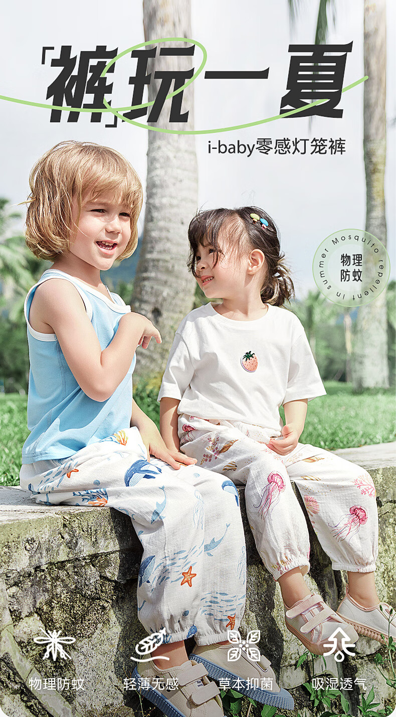 ibaby/英伦宝贝宝宝防蚊裤男女童夏季薄款灯笼裤儿童裤子宽松透气长裤 玉露香梨 80 cm