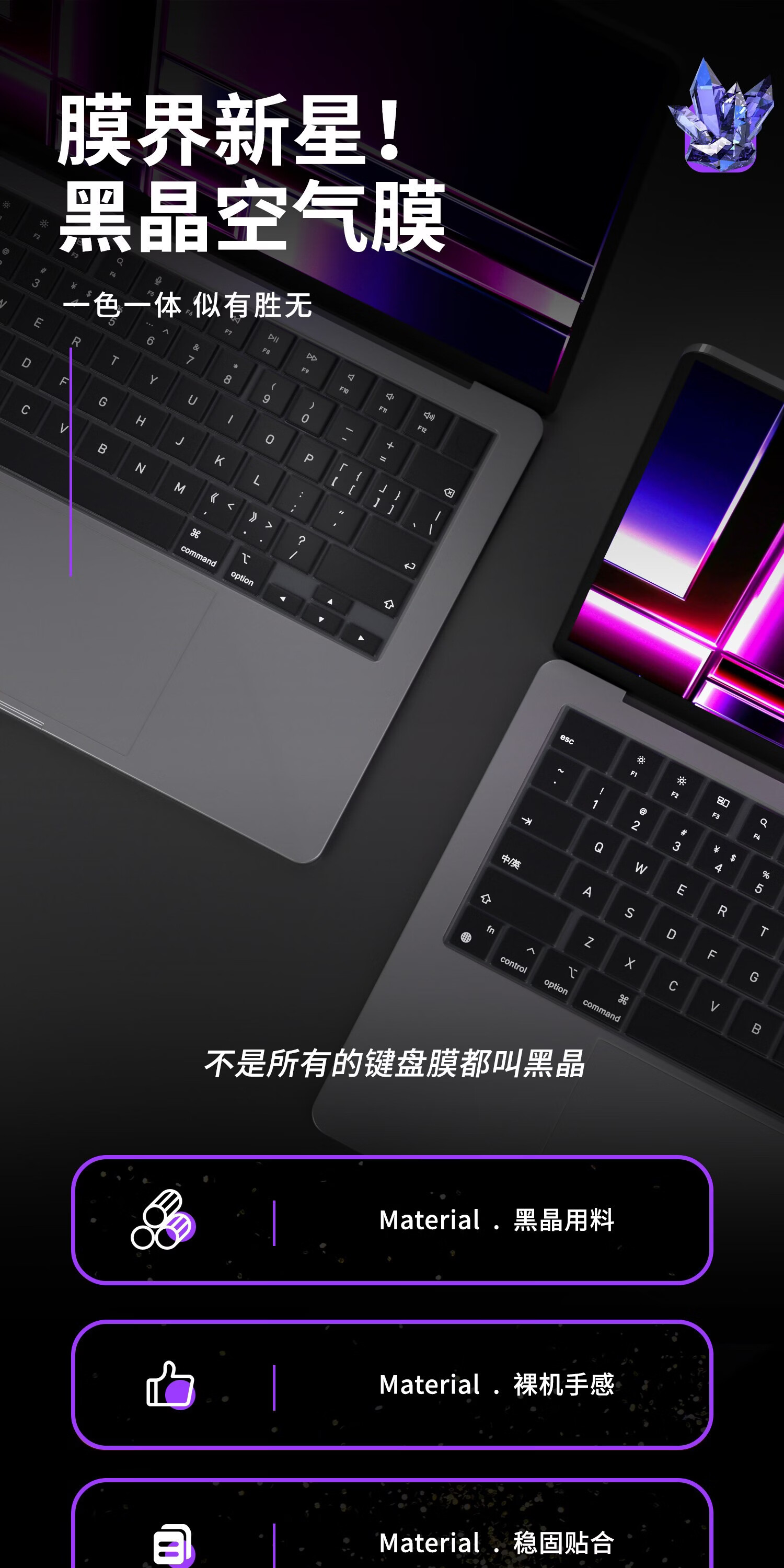 Smorss【黑晶纳米抗菌】苹果MacBook Pro16寸黑晶纳米键盘膜2026/25/24/23款键盘抗菌保护膜防尘