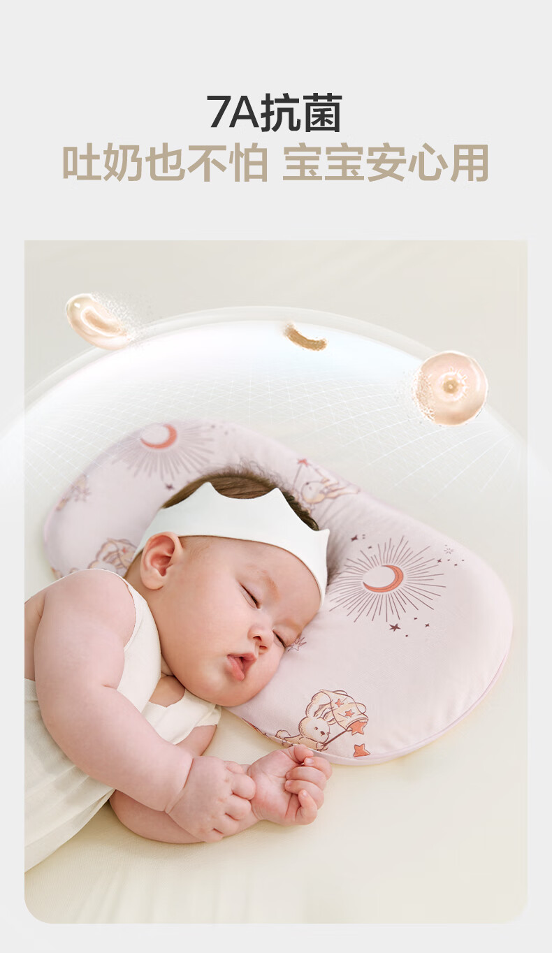 babycare新生儿枕头硅胶云片枕婴儿透气宝宝枕头0-6月可机洗43*21星月王国