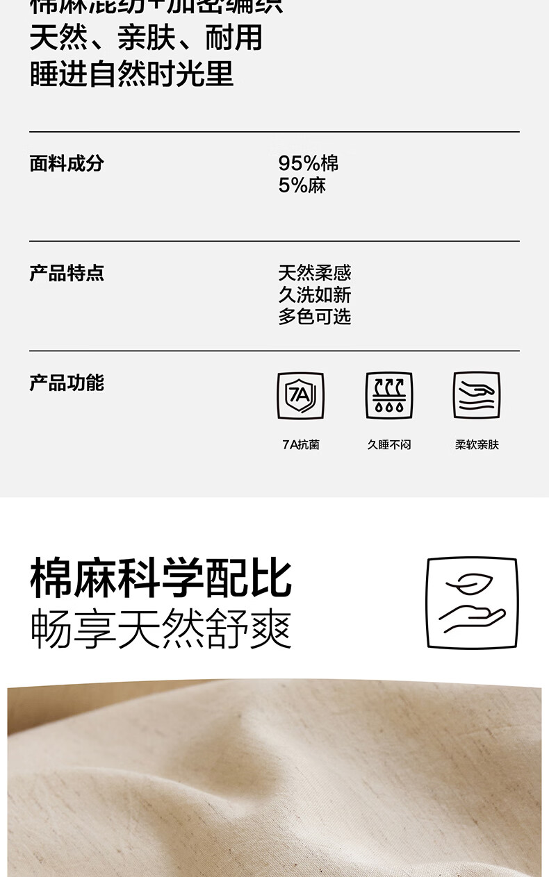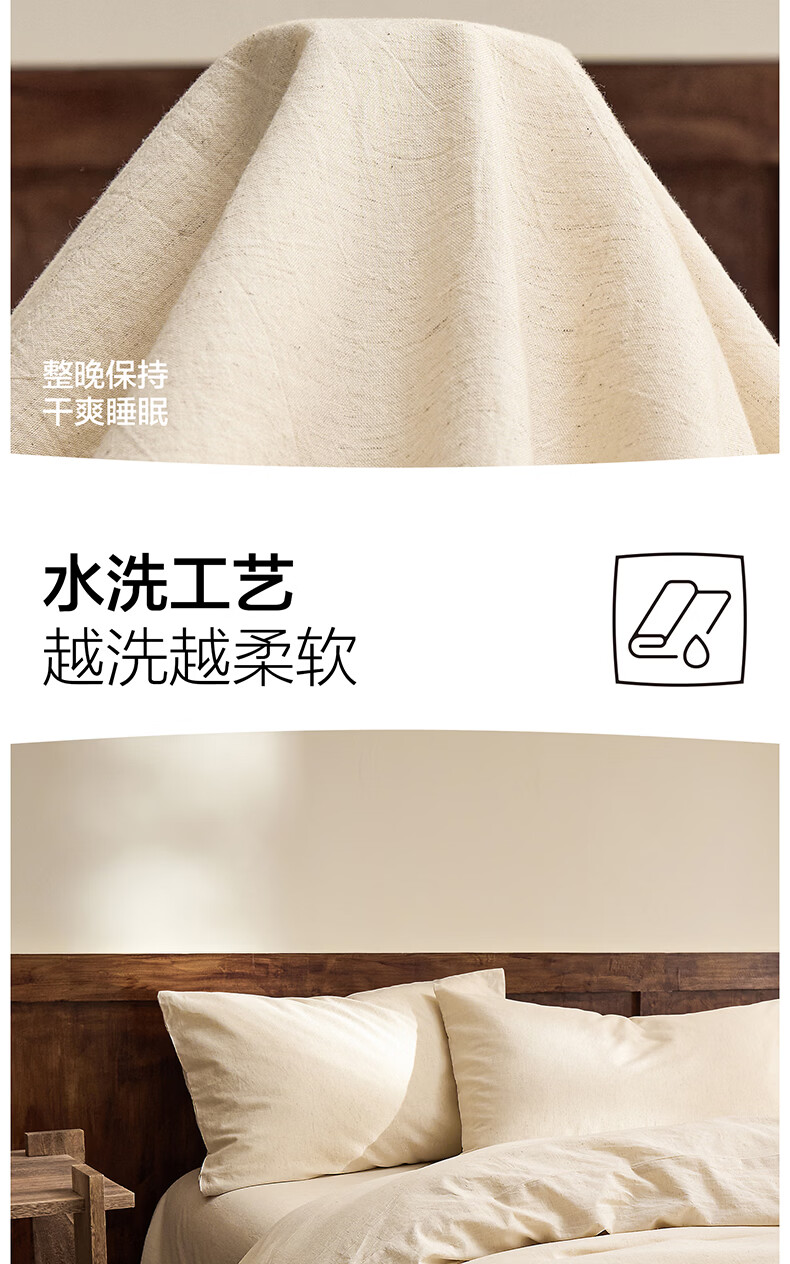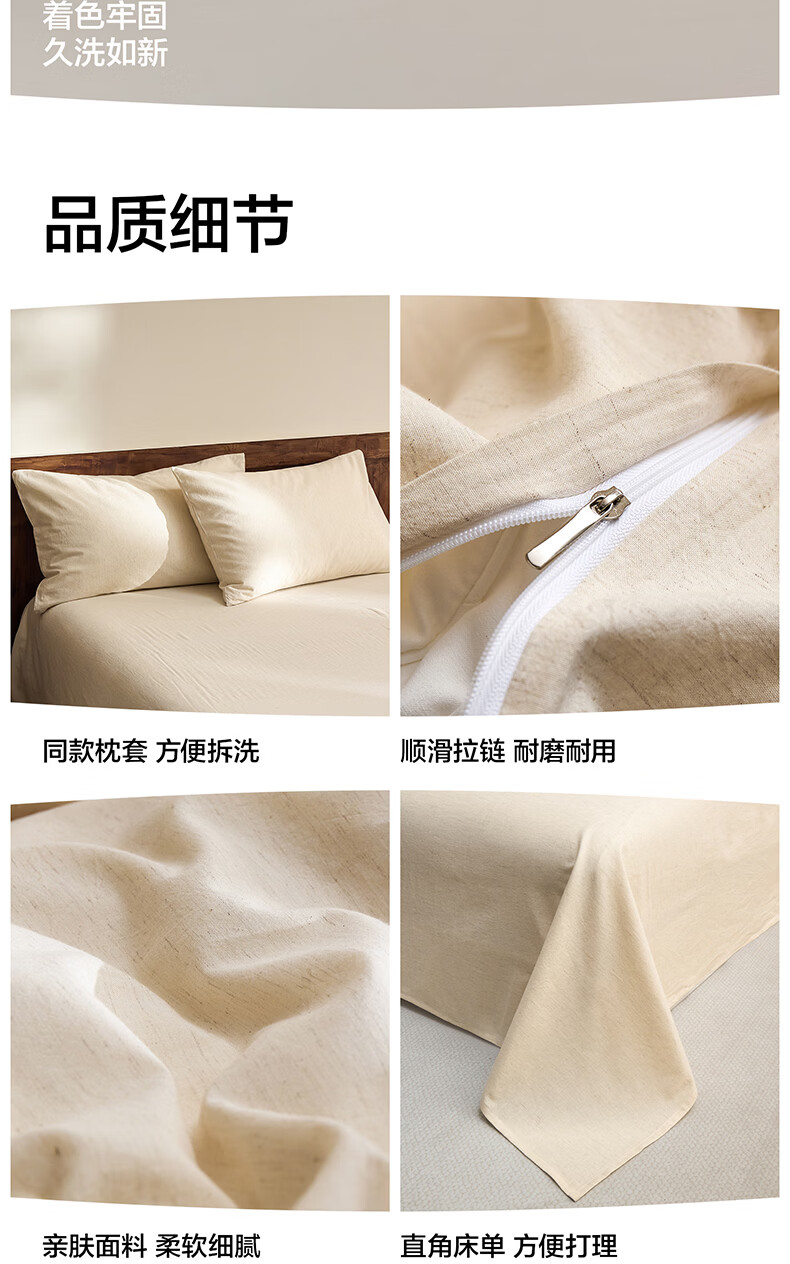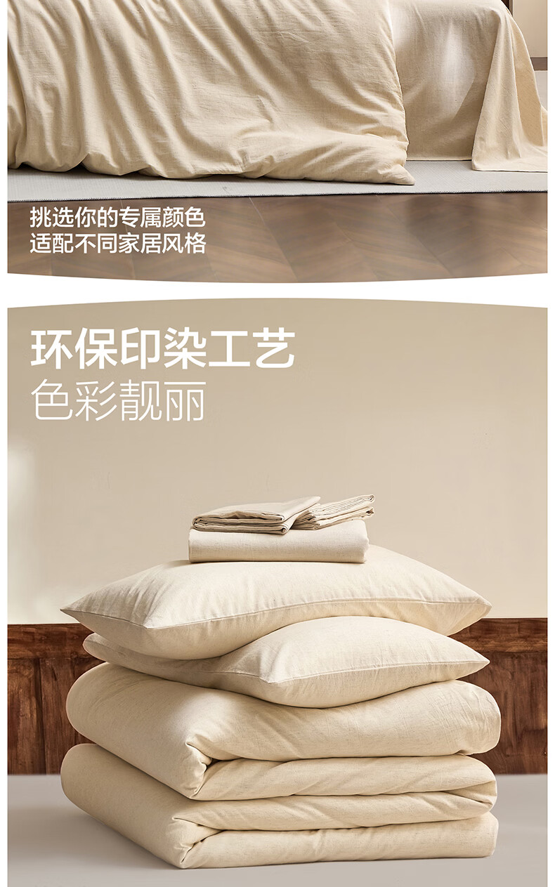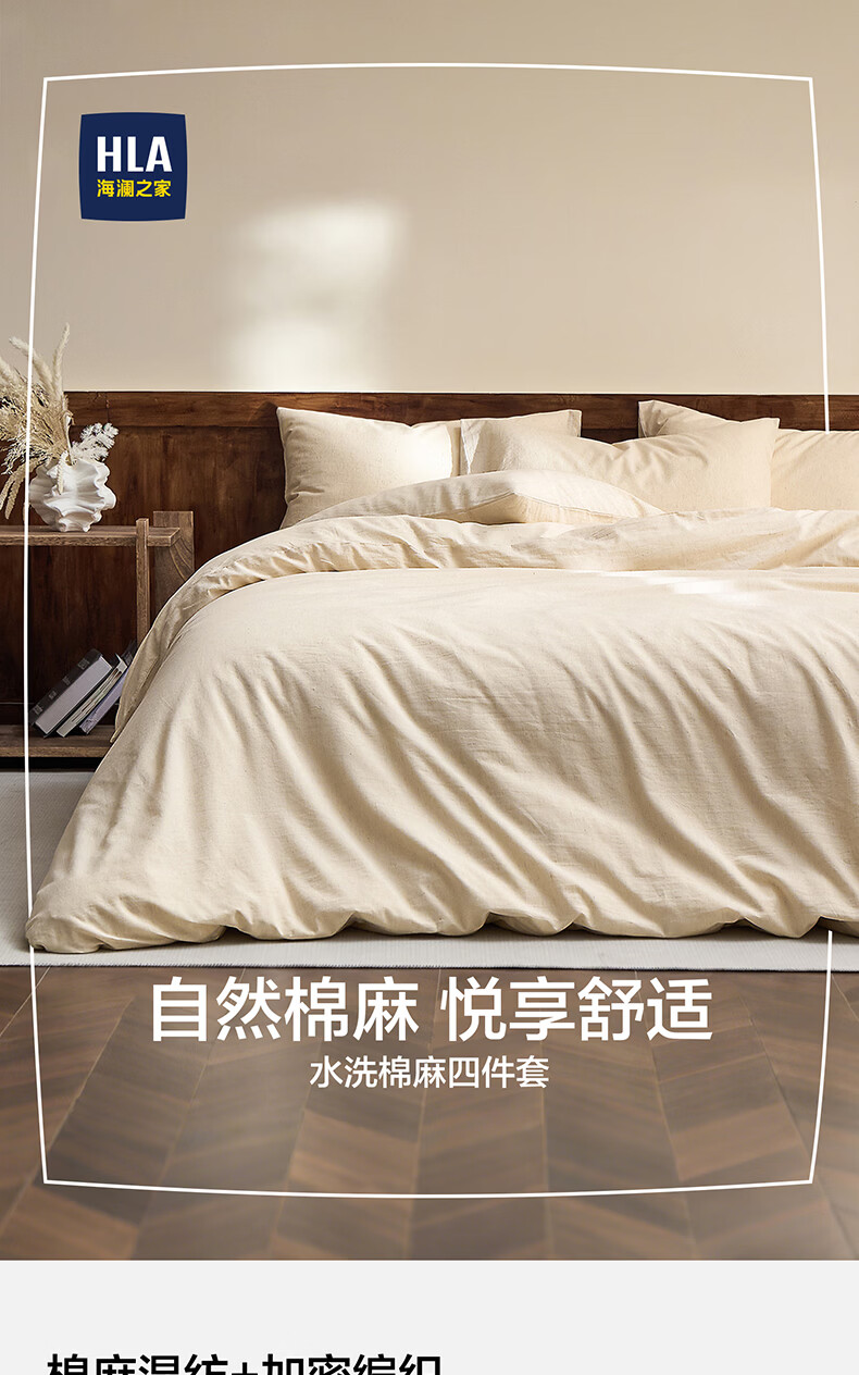 海澜之家(HLA)四件套7A抗菌棉麻混纺抗皱易打理舒适亲肤床单被套枕套床上用品 草山灰【棉麻混纺 抗皱易打理】 1.2-1.5m床 三件套 床单款 /被套150*200