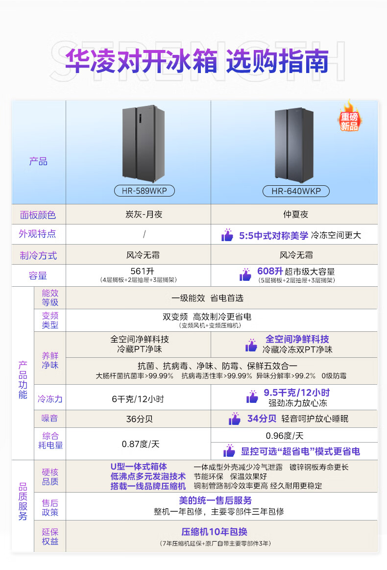 华凌美的出品561L对开门双开门冰箱一级能效双变频净味节能大容量风冷无霜京东自营HR-589WKP国家补贴