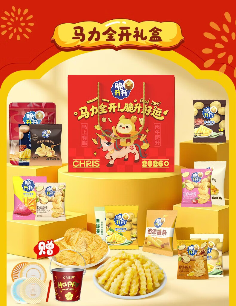 脆升升马力全开新年礼盒840g含新年周边薯片零食薯条脆生生零食大礼包
