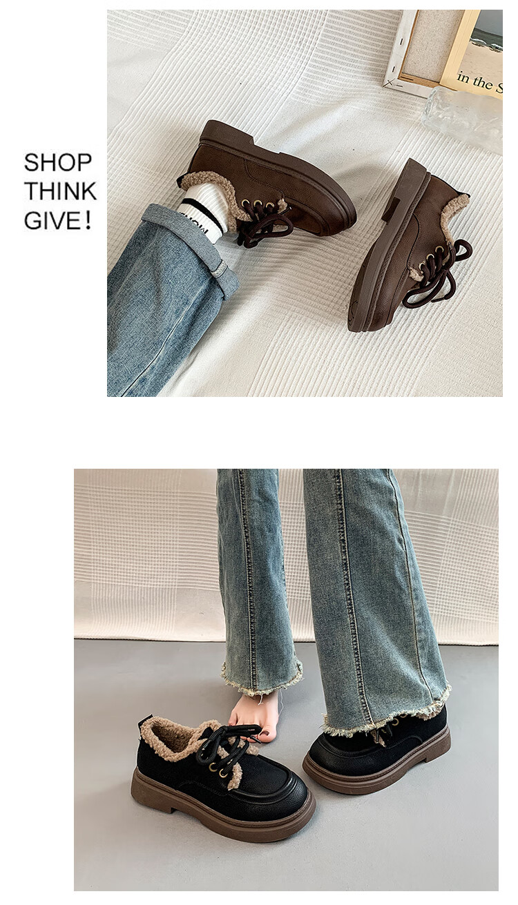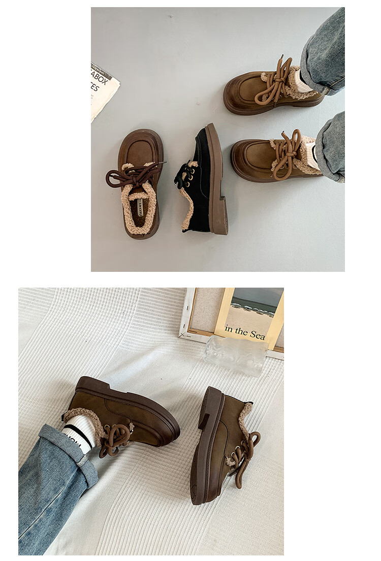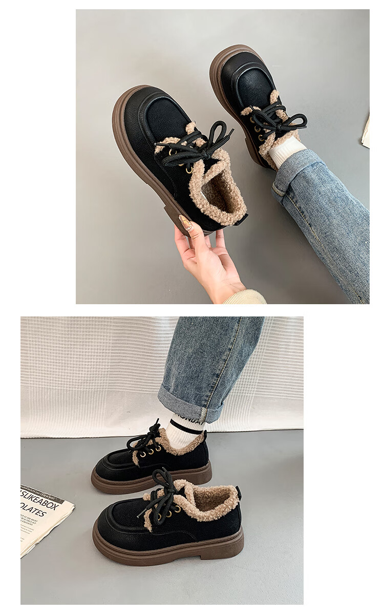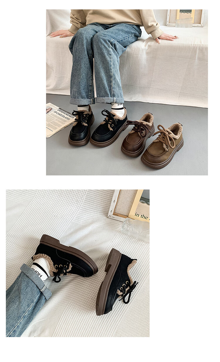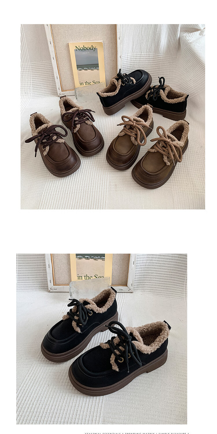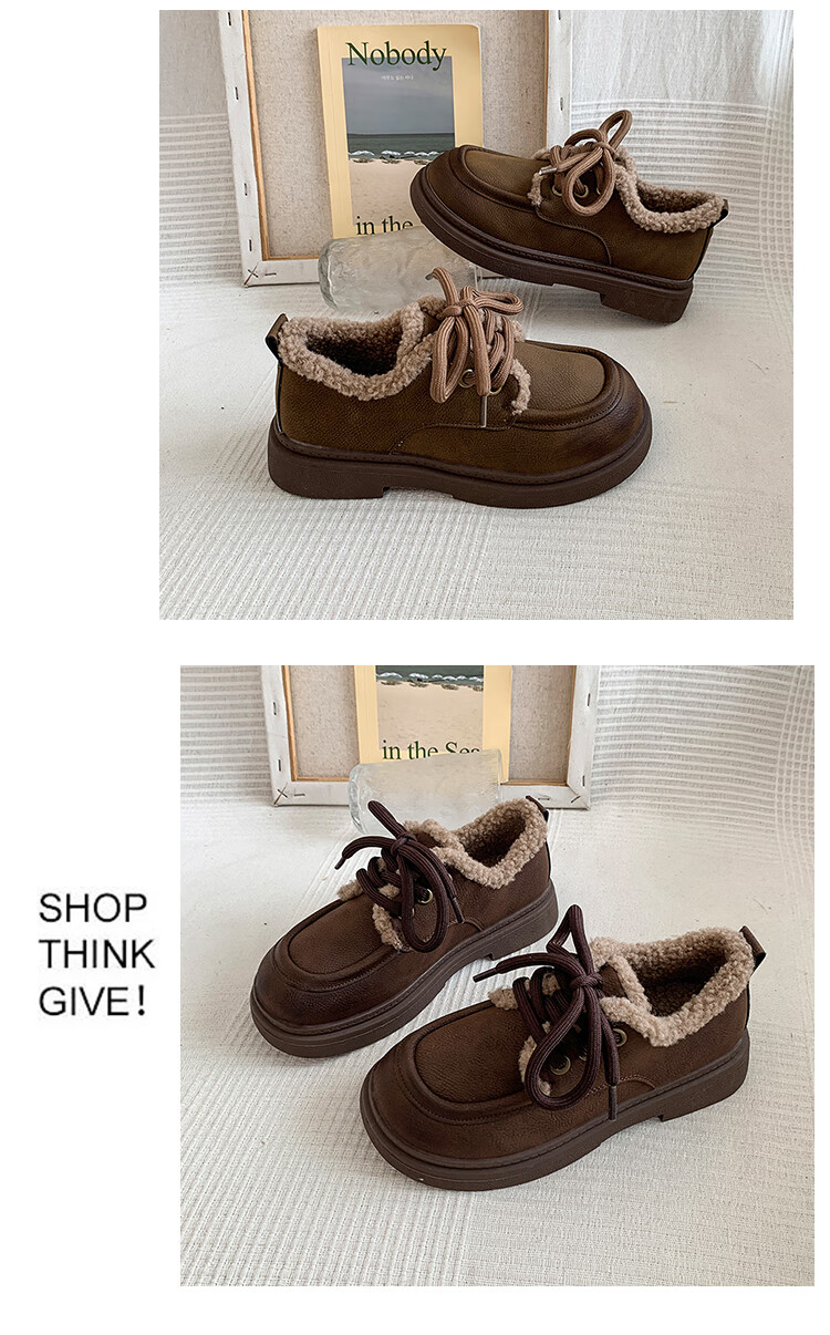 稻草人(MEXICAN)复古勃肯鞋女2026冬季新款厚底加绒加厚休闲保暖棉鞋羊羔毛小皮鞋 棕色 35