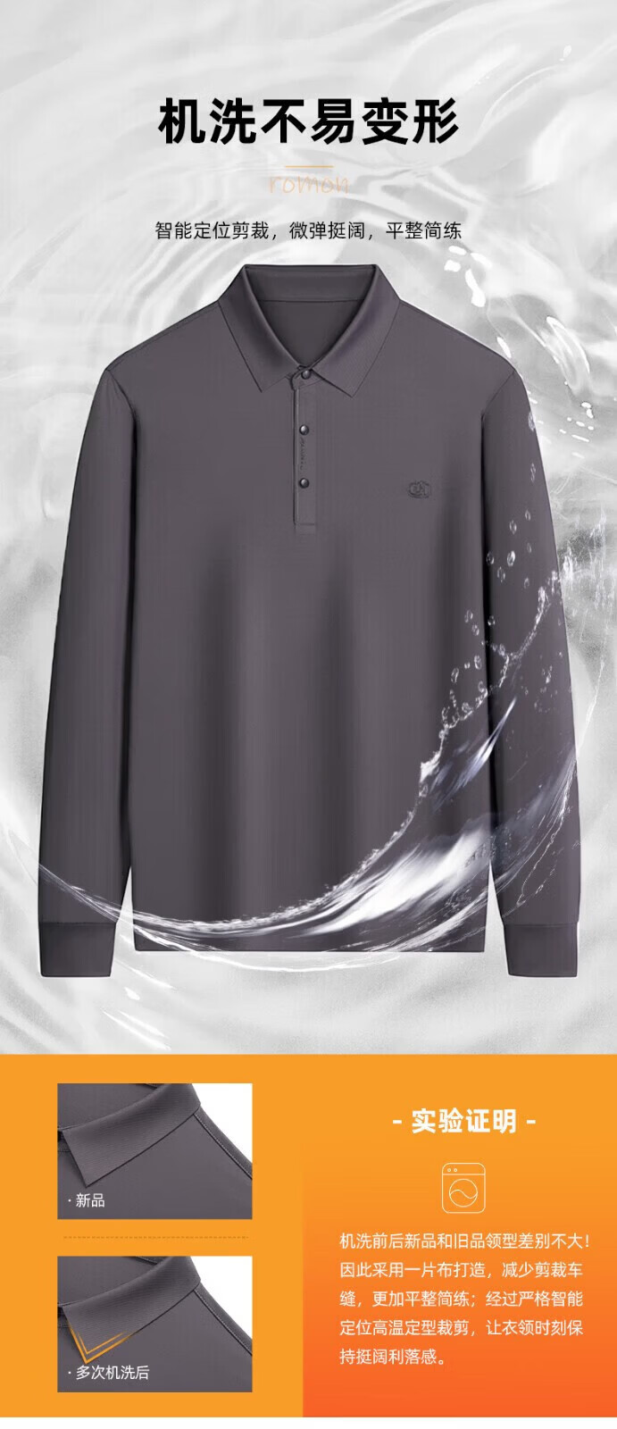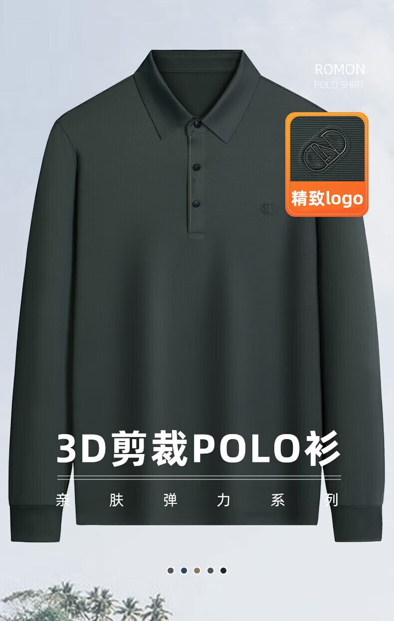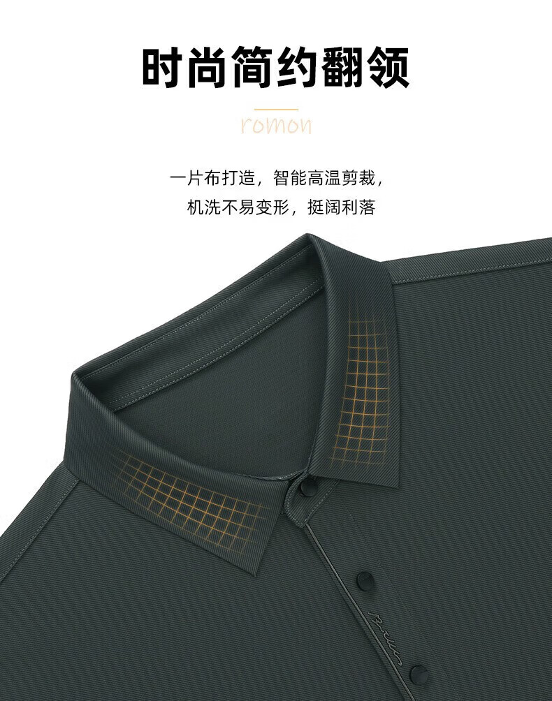 罗蒙(ROMON)长袖t恤男秋季新款中青年时尚男士翻领打底T恤衫 黑色 L 175【建议体重120-130斤左右】