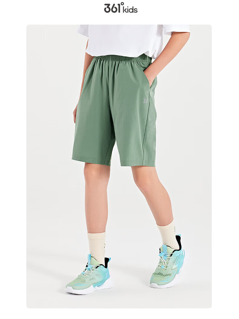 361°童装男女童梭织五分裤夏季新款小中大童运动裤男童短裤 蒙雾绿1702 130