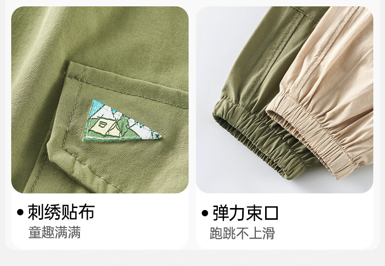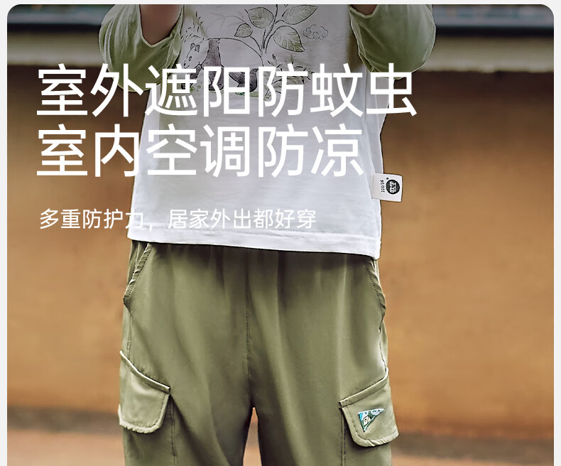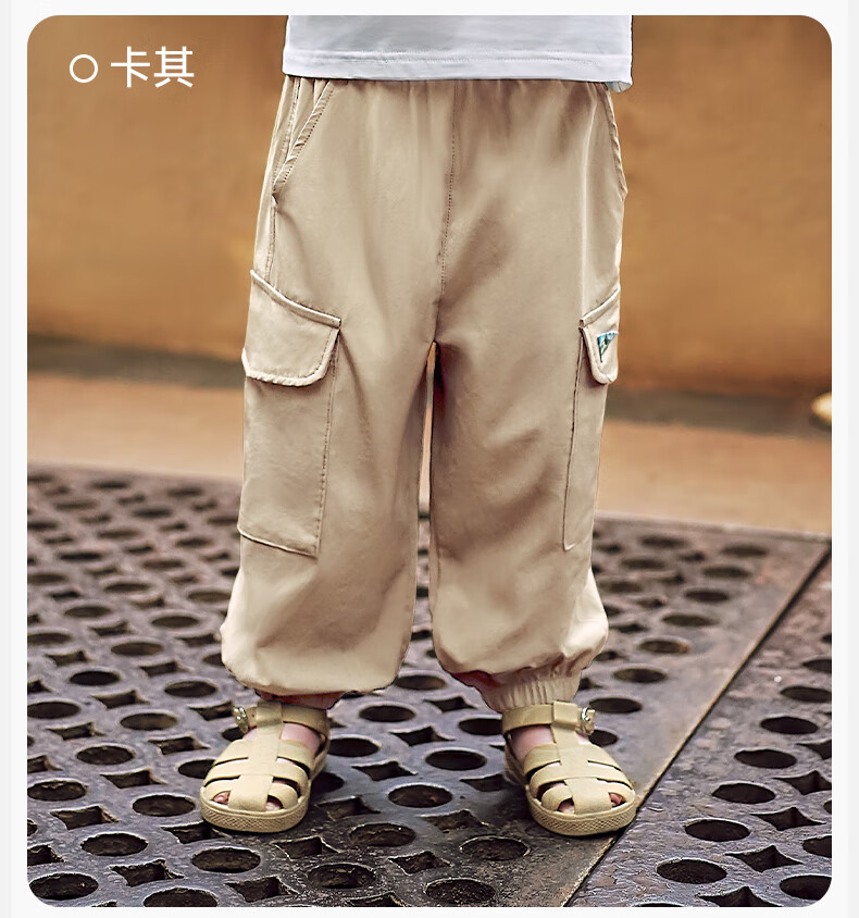 欧孕(OUYUN)儿童裤子夏季薄款男女童工装裤运动防蚊休闲2025新款宝宝长裤 卡其【酷潮工装-凉感透气】 100 cm